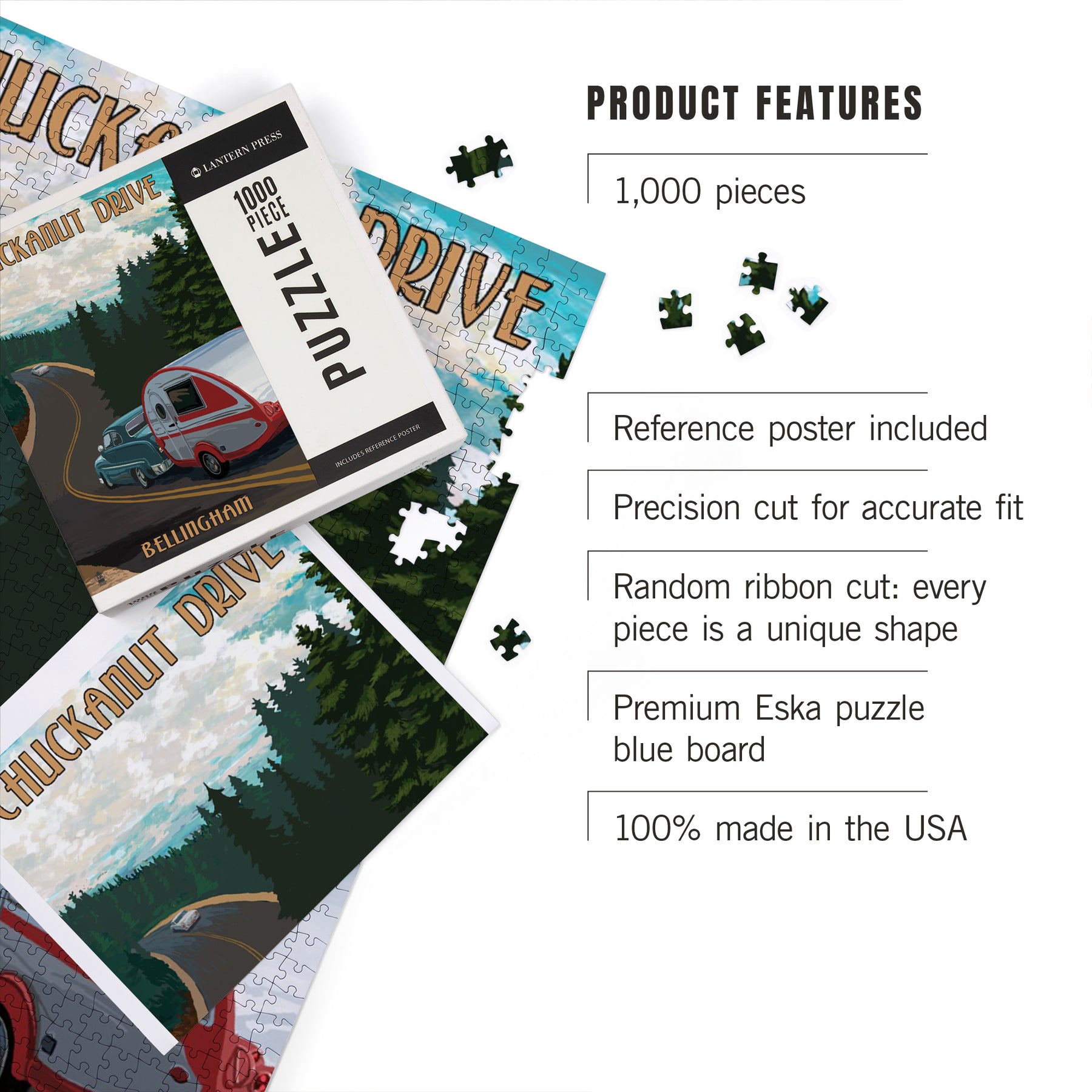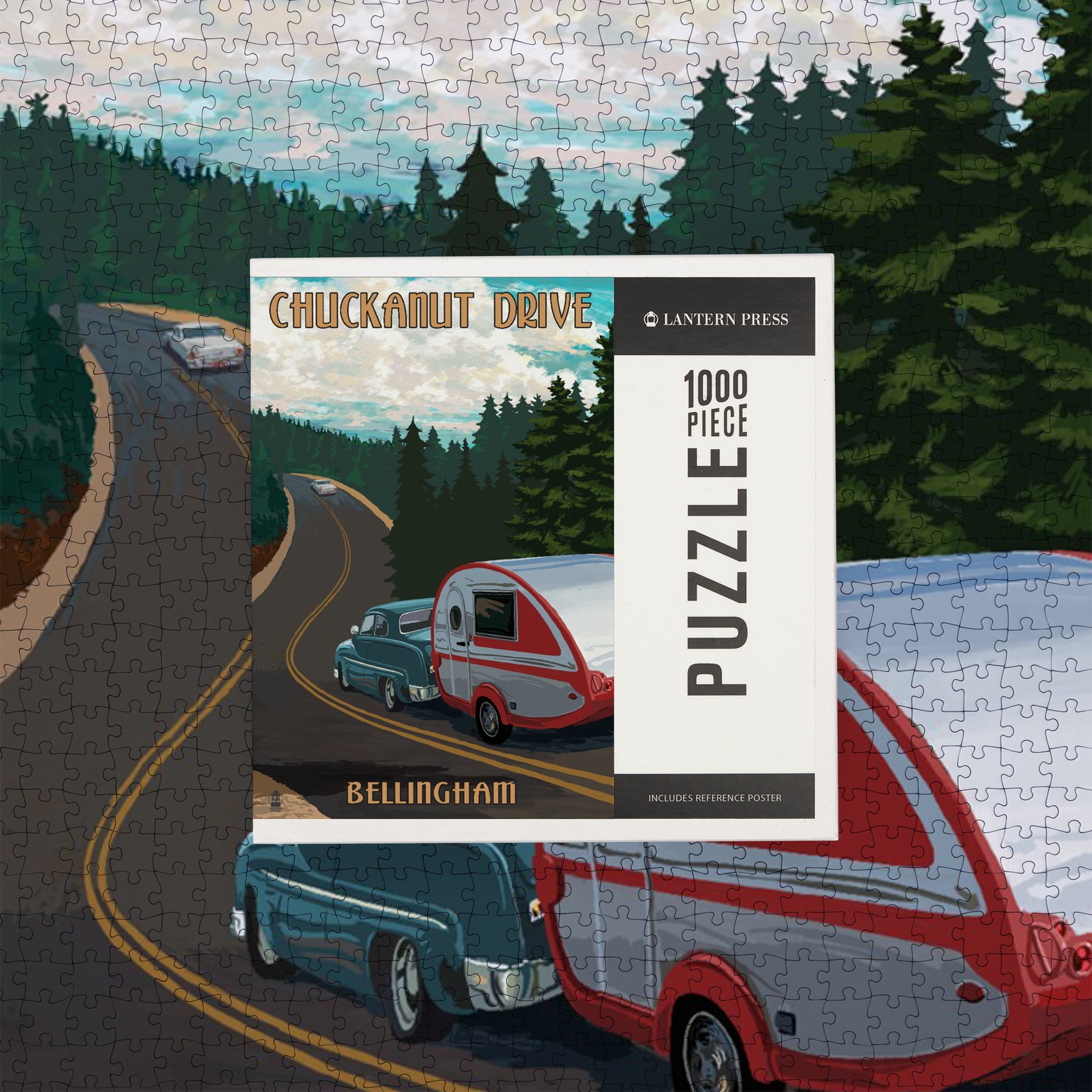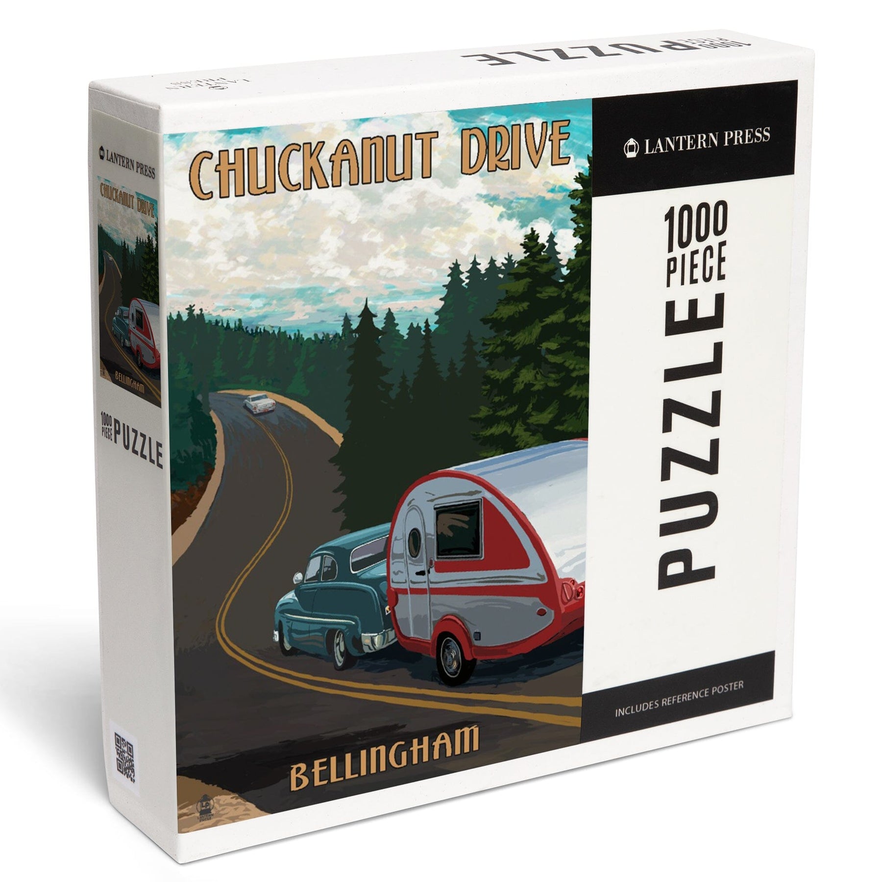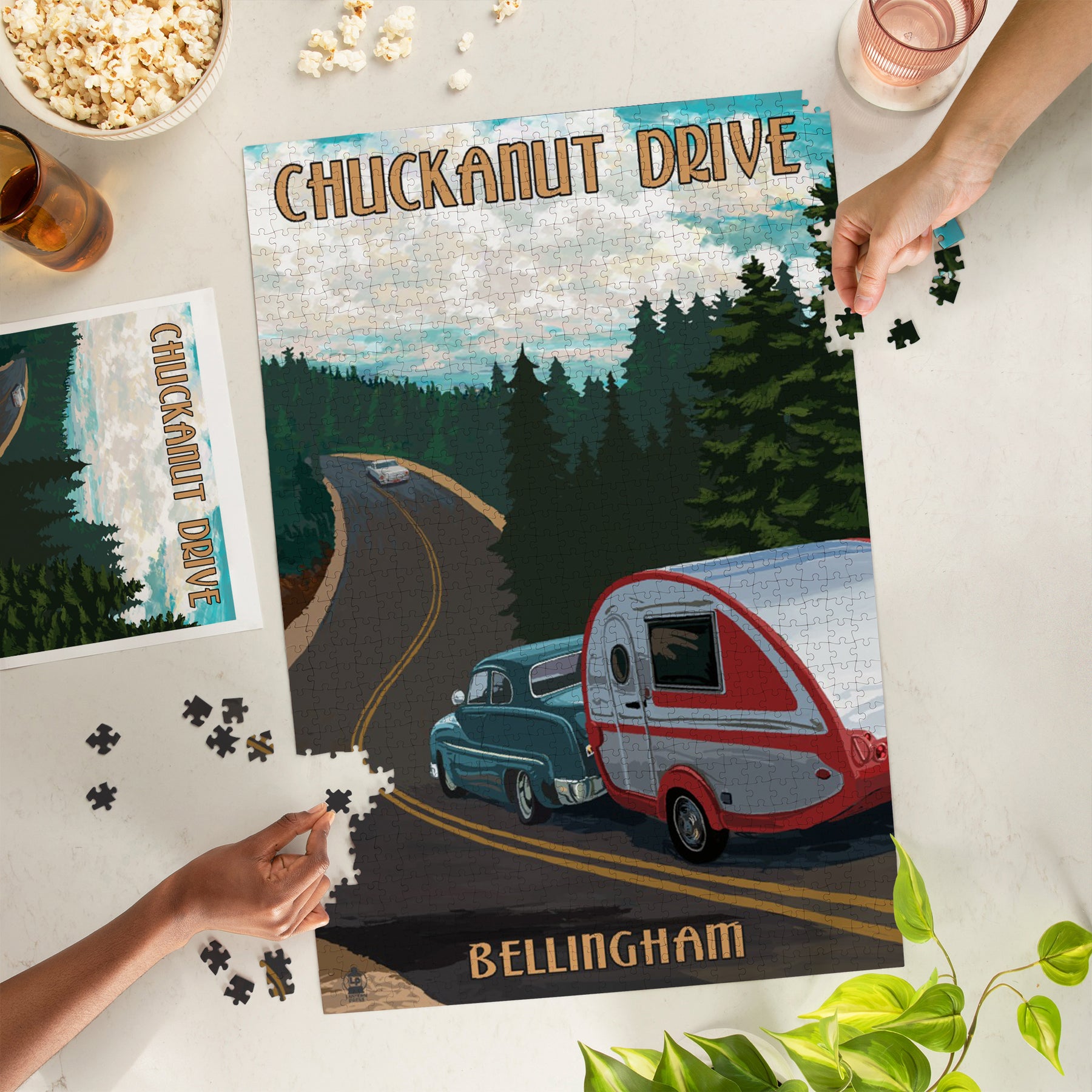 Chuckanut Drive, Bellingham, WA, Retro Camper, Jigsaw Puzzle Puzzle Lantern Press