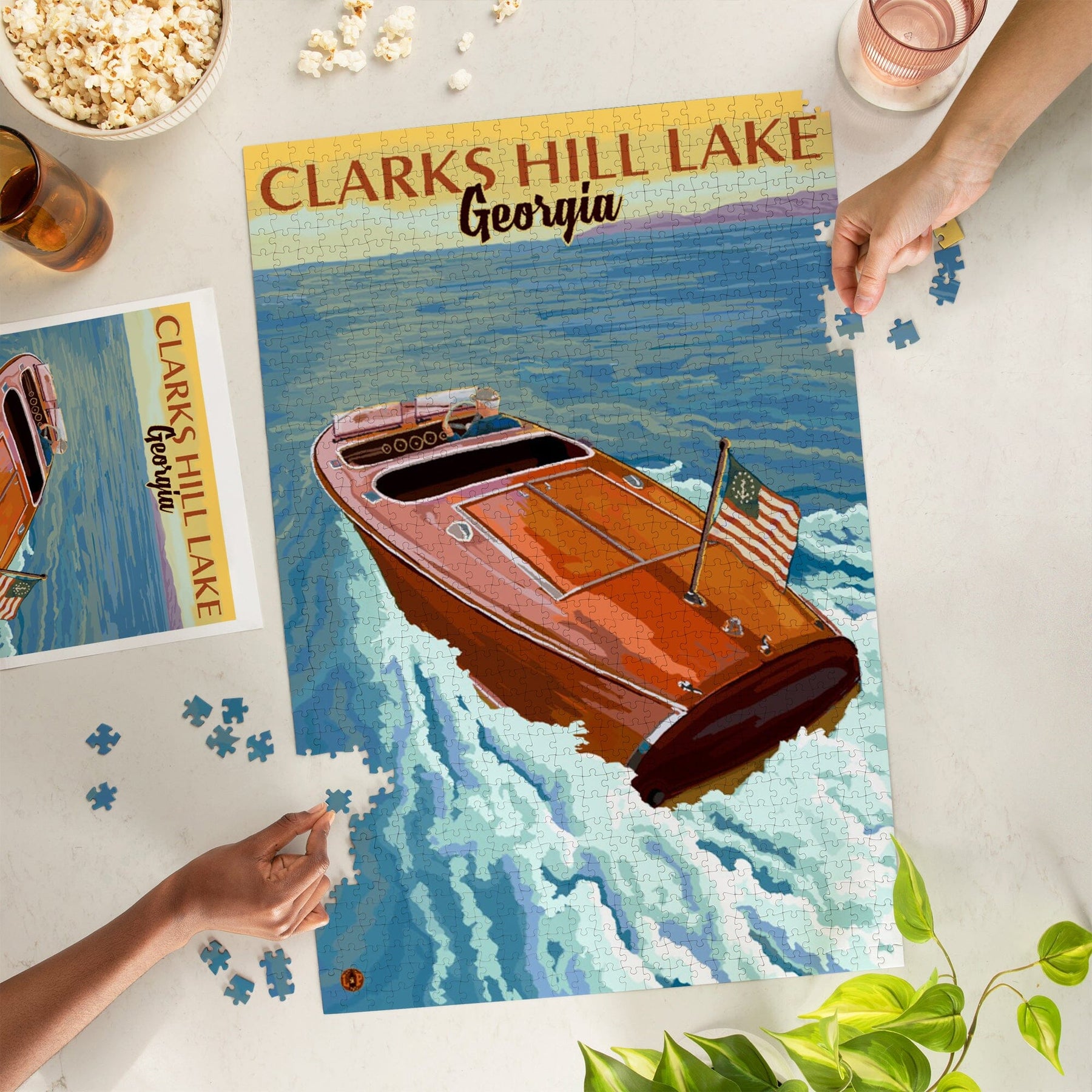 Clarks Hill Lake, Georgia, Wooden Boat Scene, Jigsaw Puzzle Puzzle Lantern Press