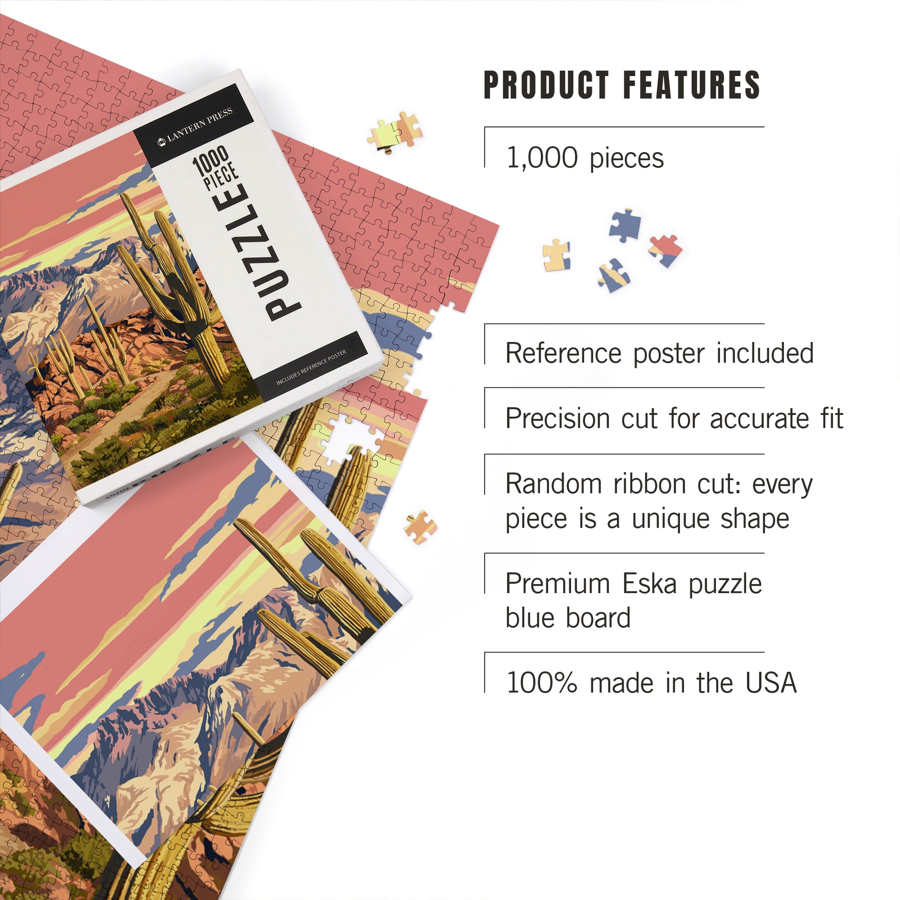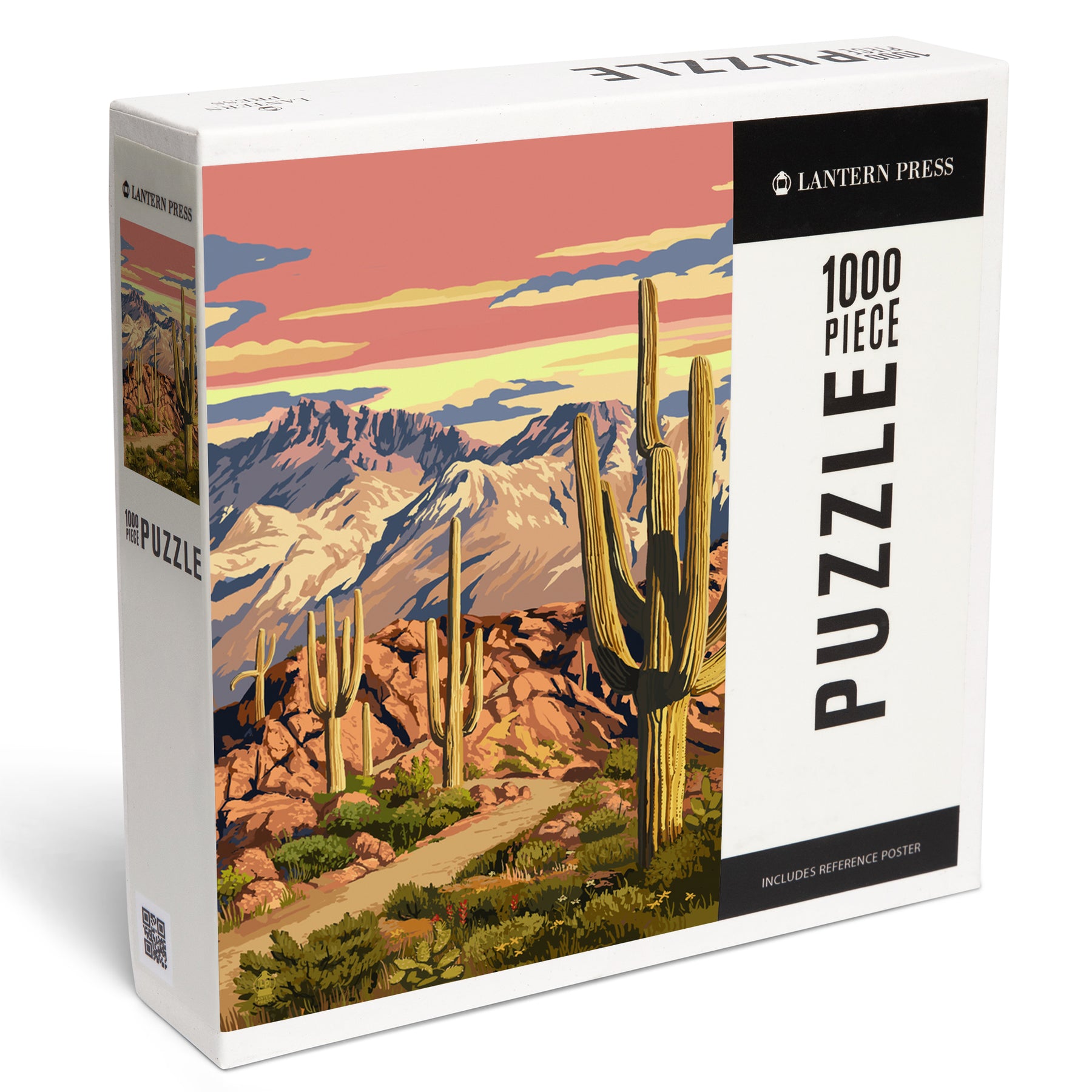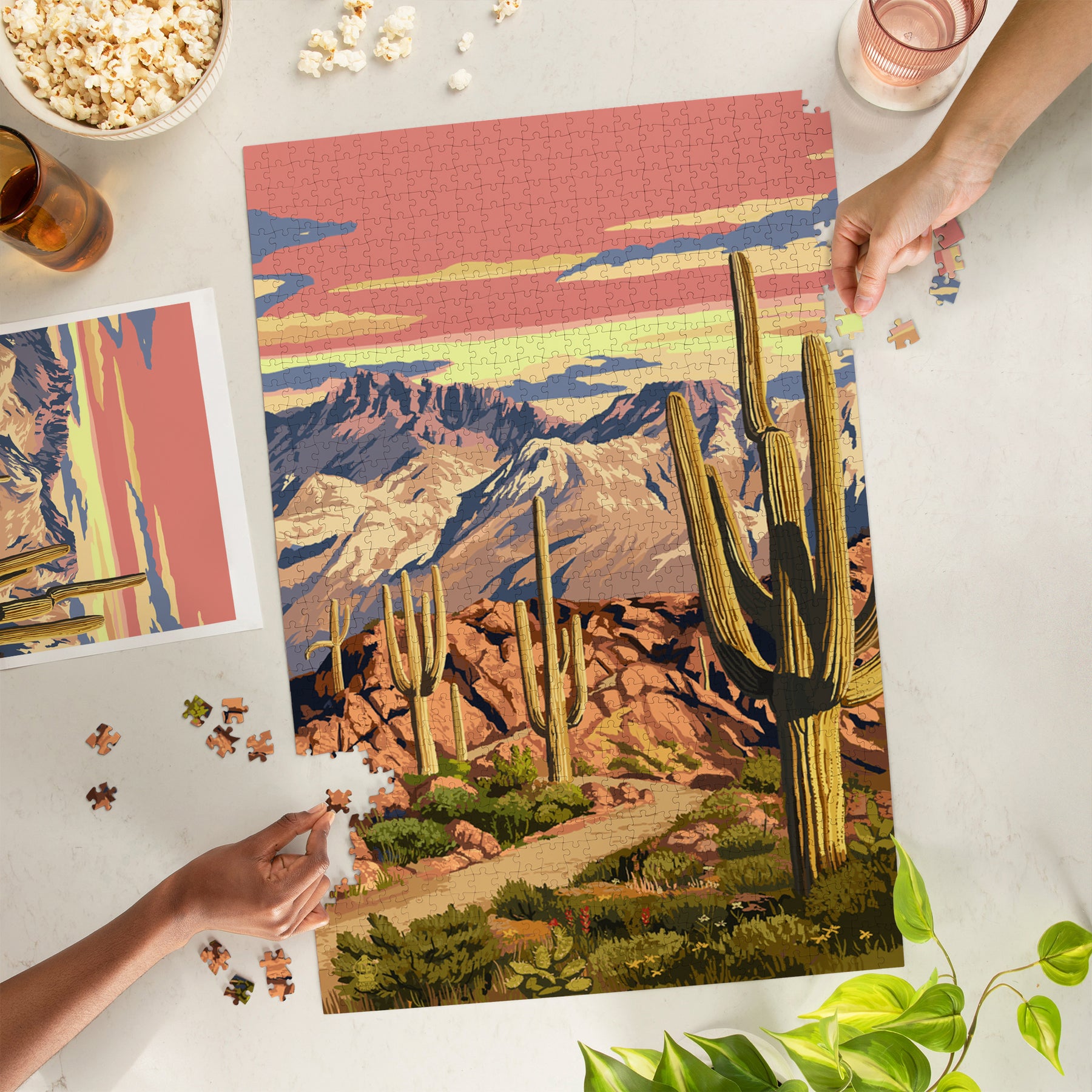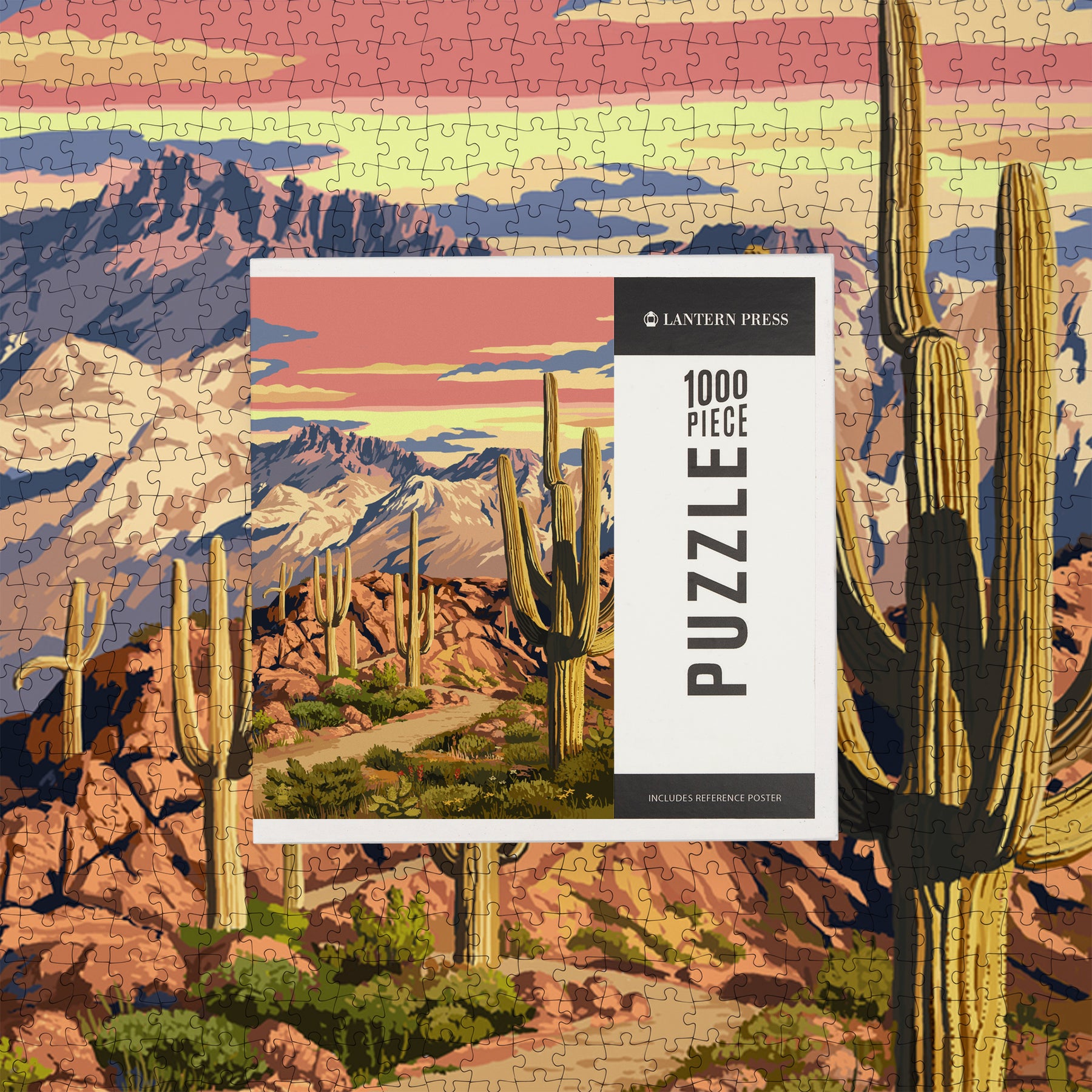 Desert Cactus Trail Scene at Sunset, Jigsaw Puzzle Puzzle Lantern Press
