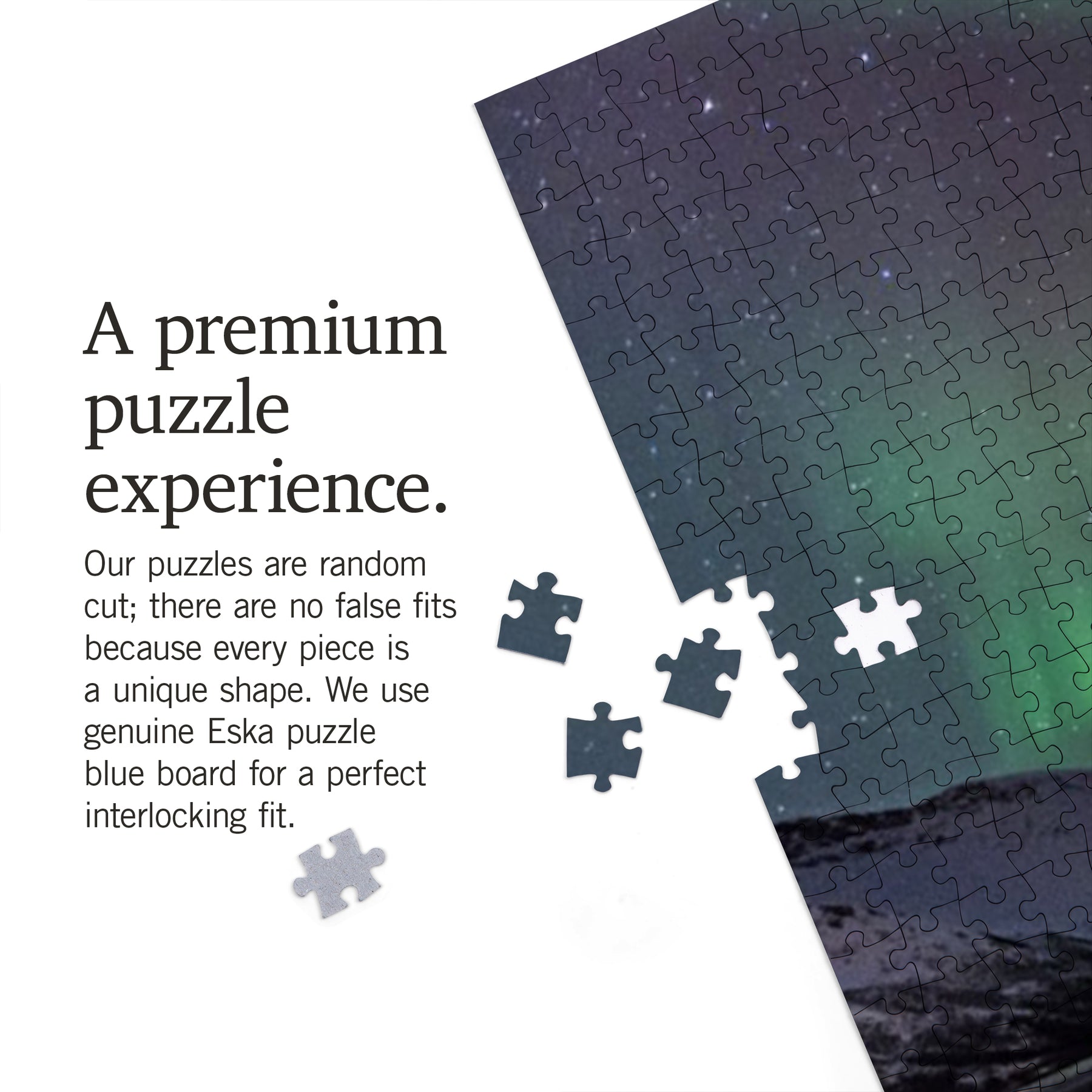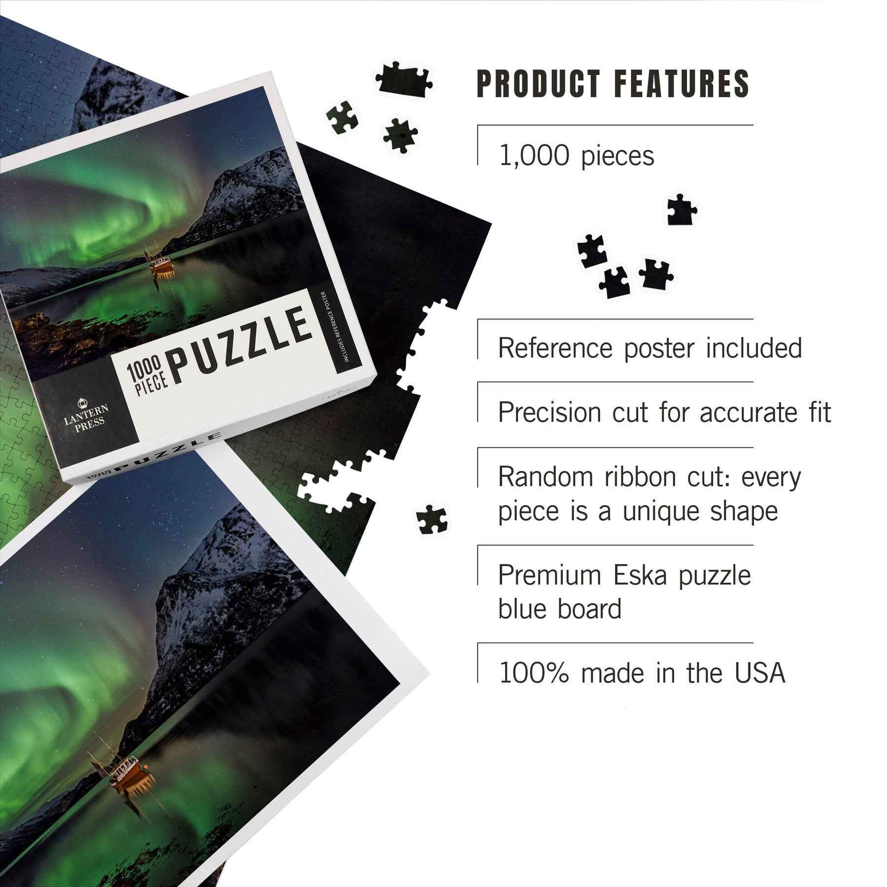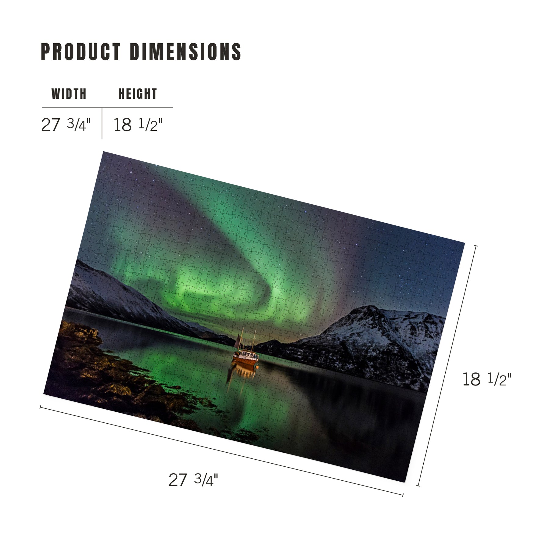 Fishing Boat on Lake and Northern Lights, Jigsaw Puzzle Puzzle Lantern Press