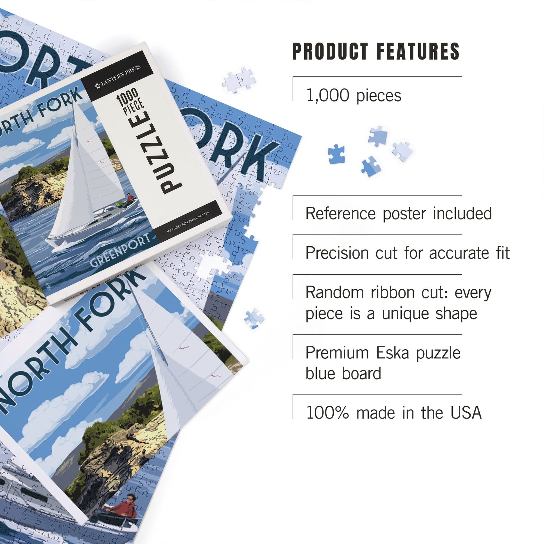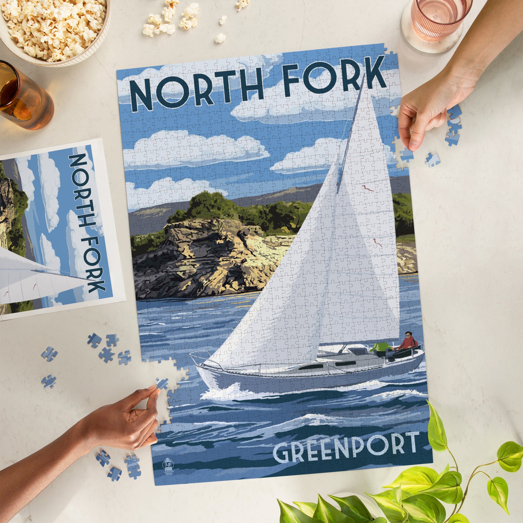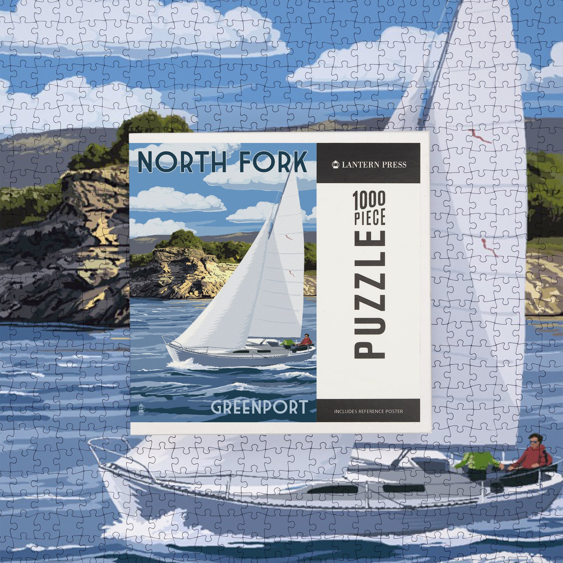 Greenport, New York, Sloop Sailboat and Lake, Jigsaw Puzzle Puzzle Lantern Press