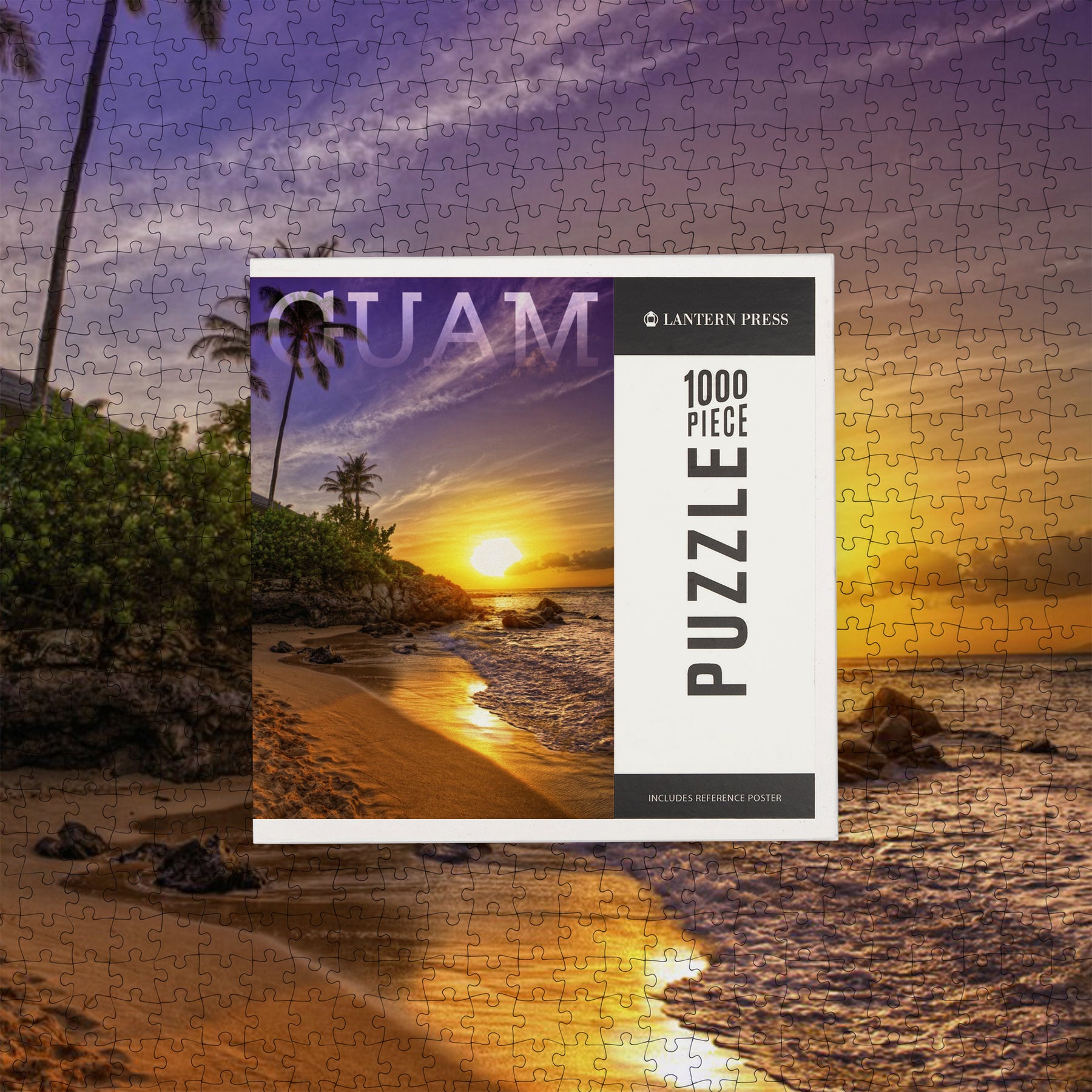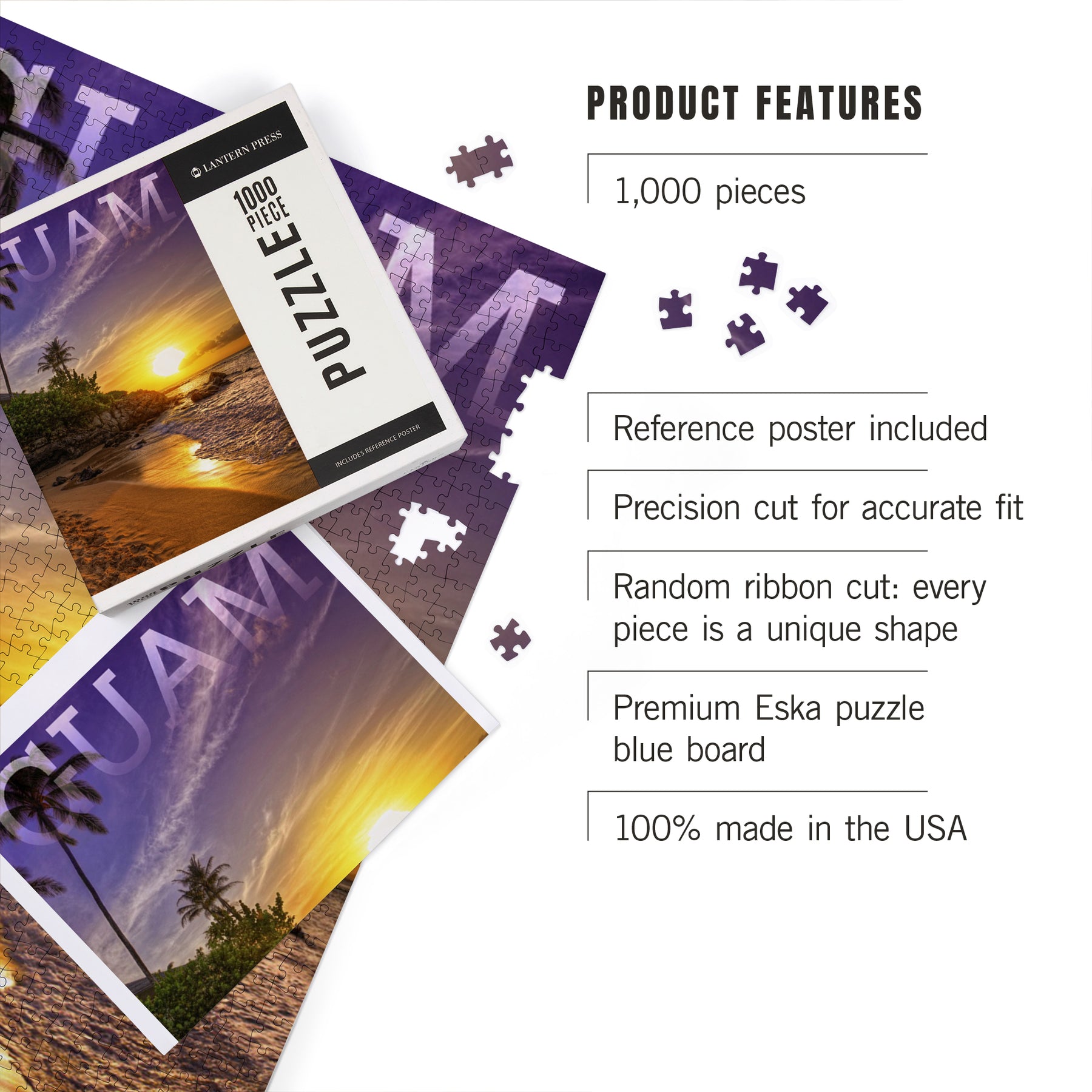 Guam, Sunset and Palm, Jigsaw Puzzle Puzzle Lantern Press
