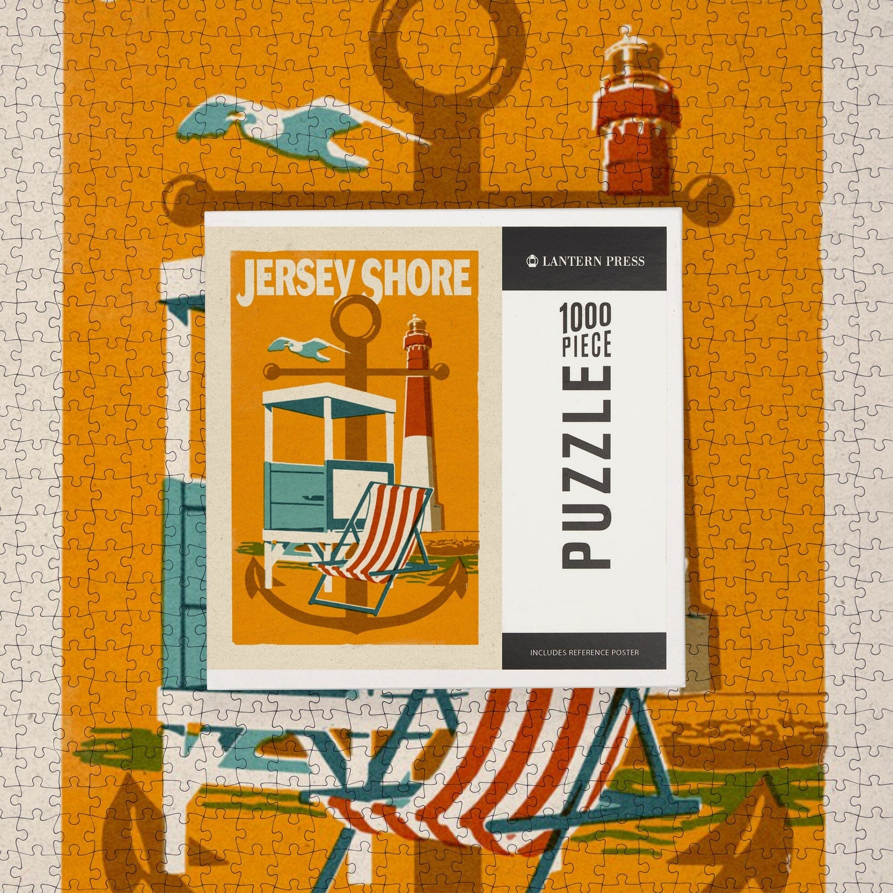 Jersey Shore, Woodblock, Jigsaw Puzzle Puzzle Lantern Press