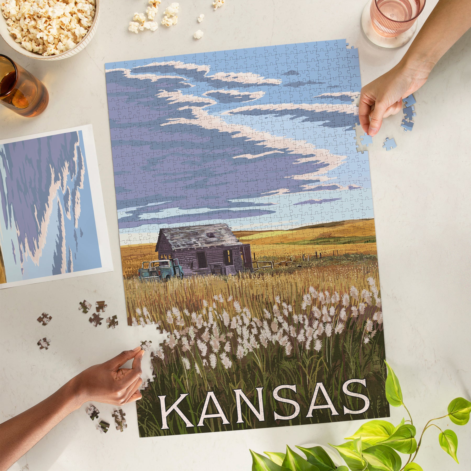 Kansas, Wheat Fields and Homestead, Jigsaw Puzzle Puzzle Lantern Press