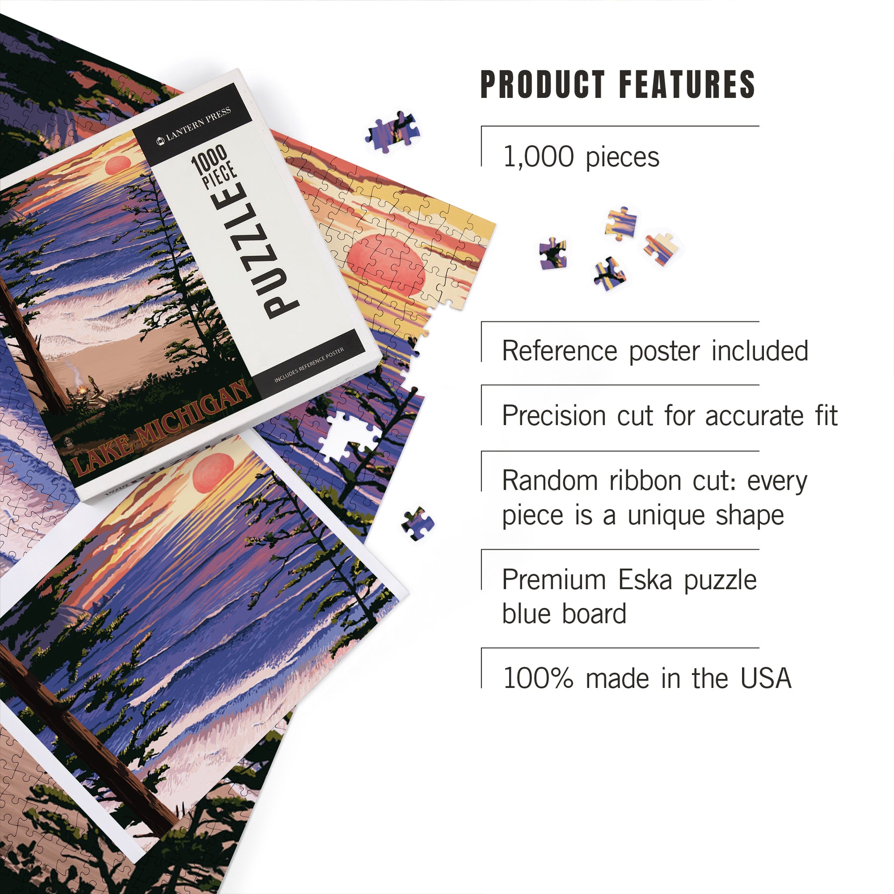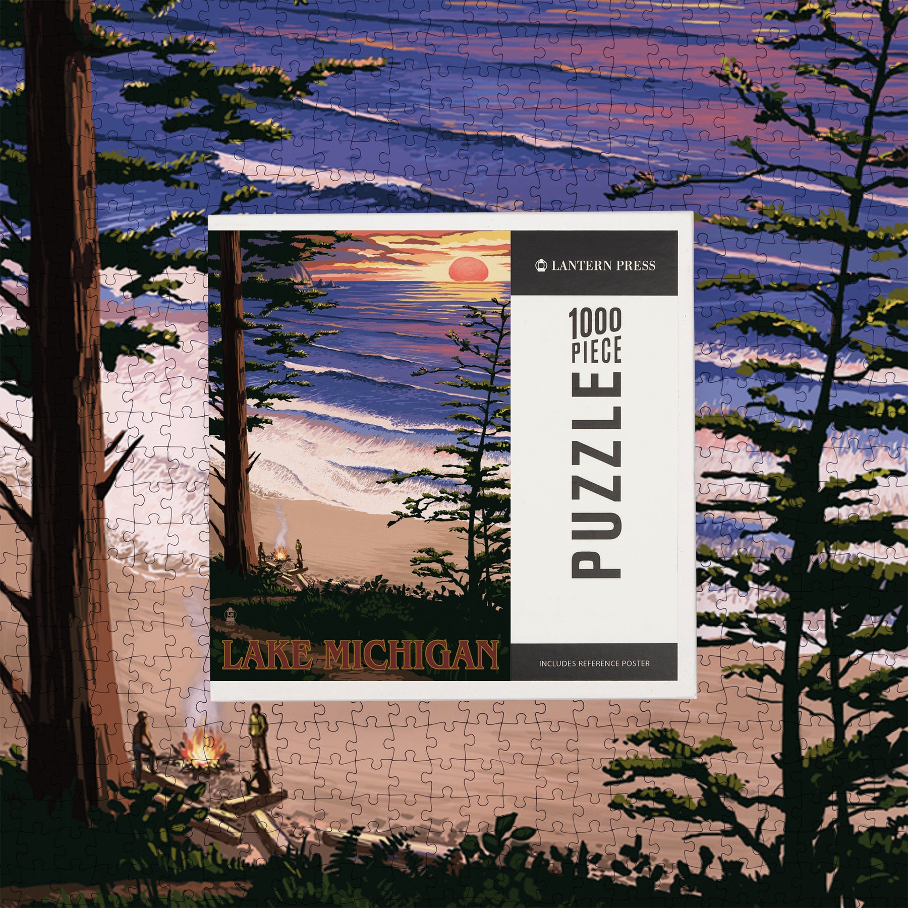 Lake Michigan, Sunset on Beach, Jigsaw Puzzle Puzzle Lantern Press