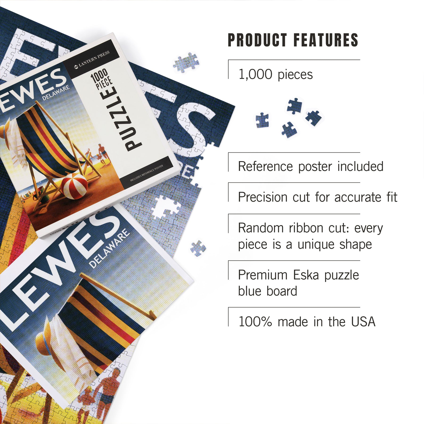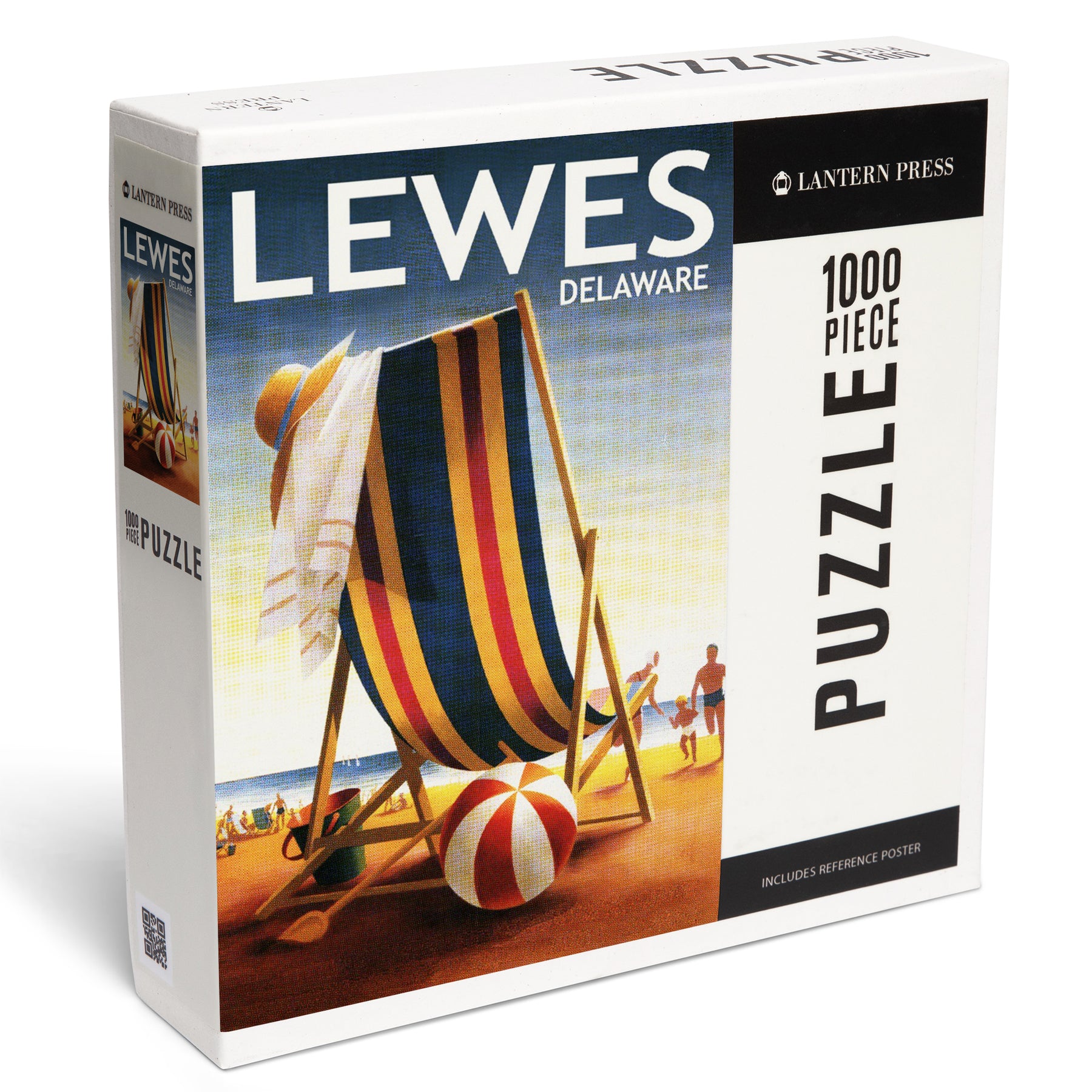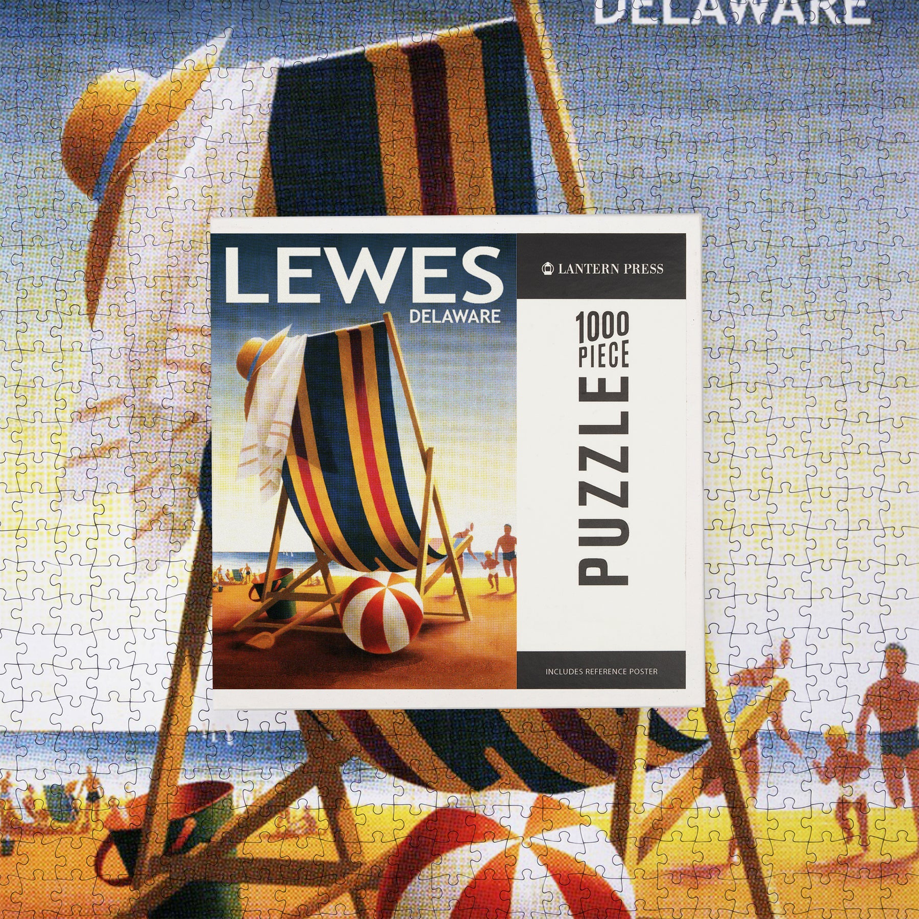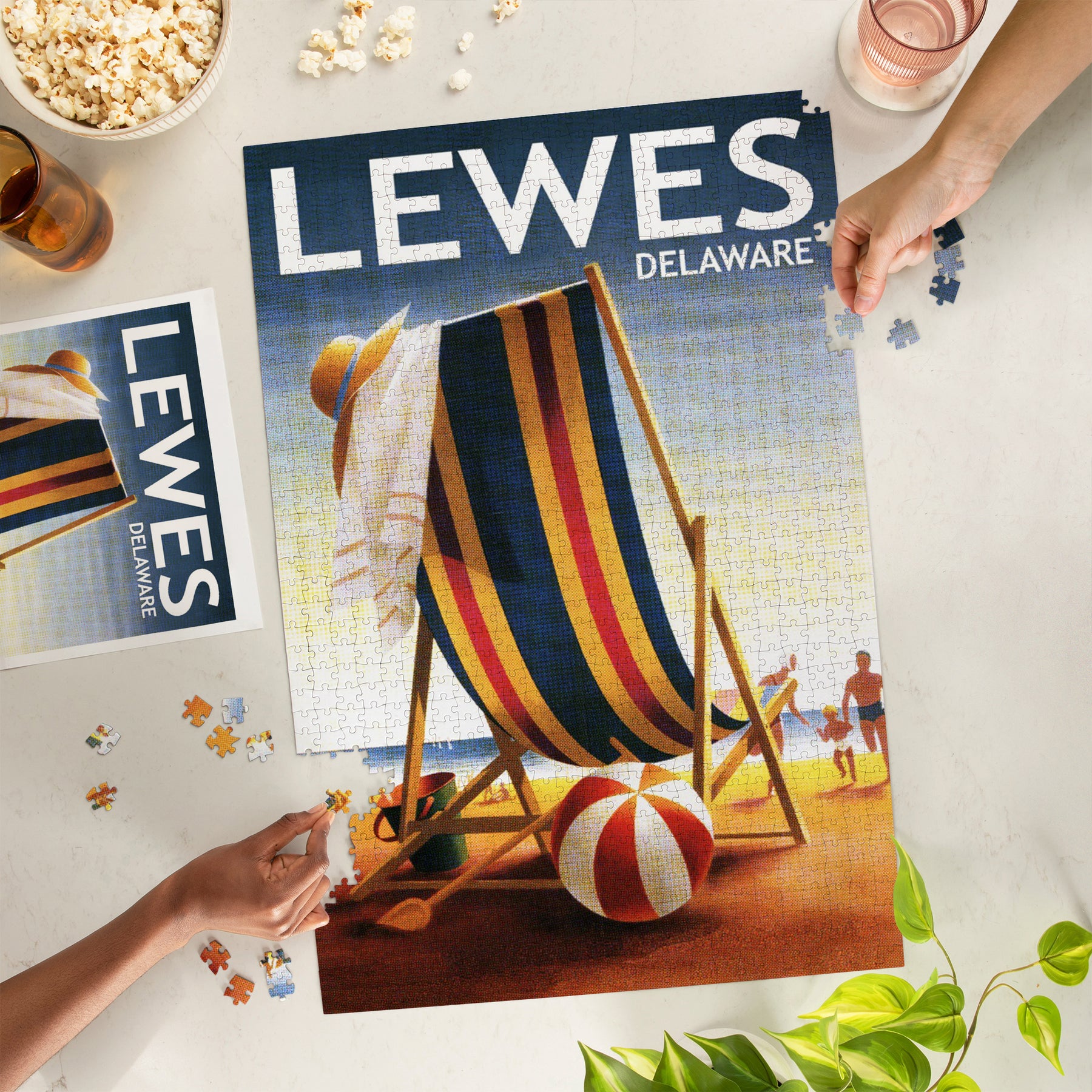 Lewes, Delaware, Beach Chair and Ball, Jigsaw Puzzle Puzzle Lantern Press