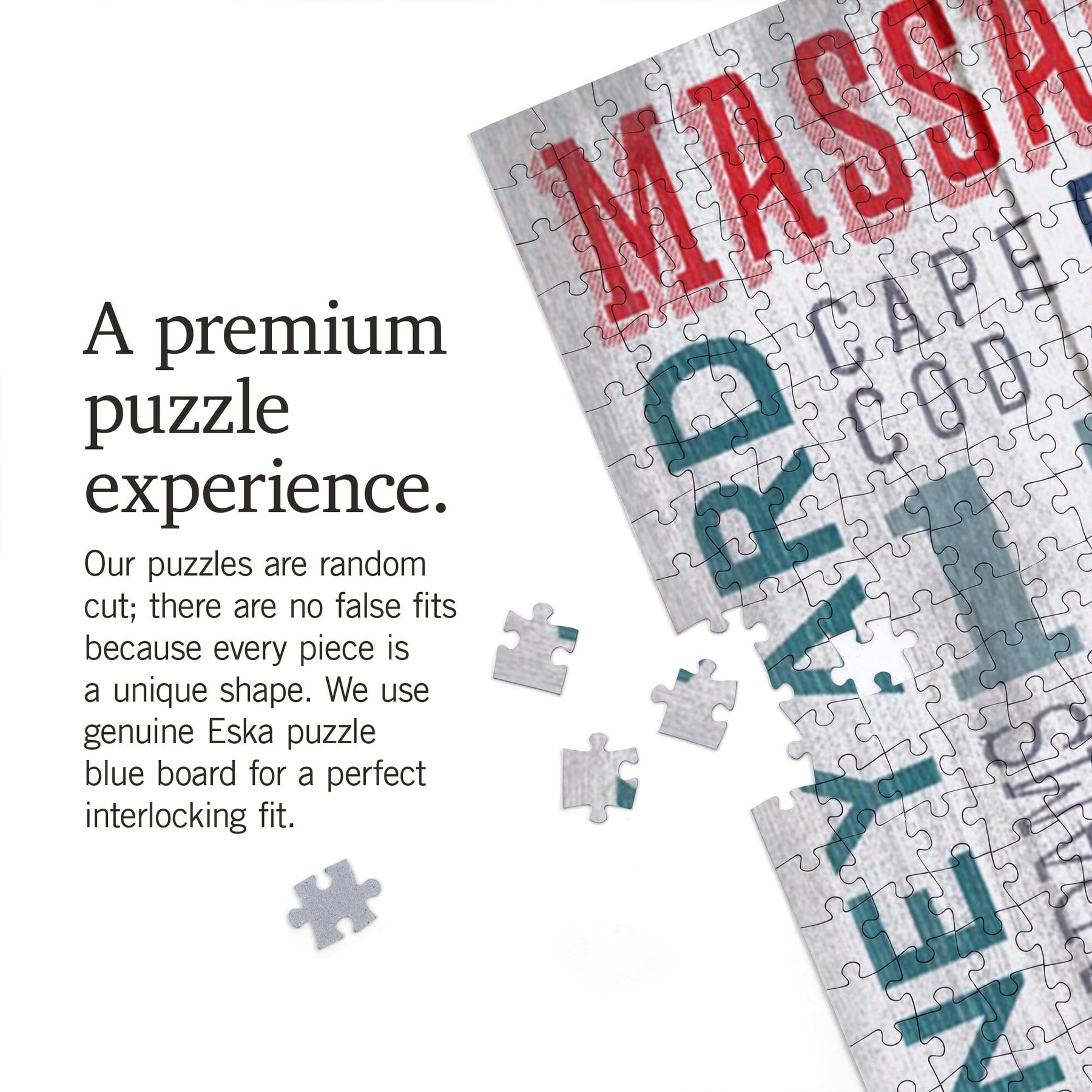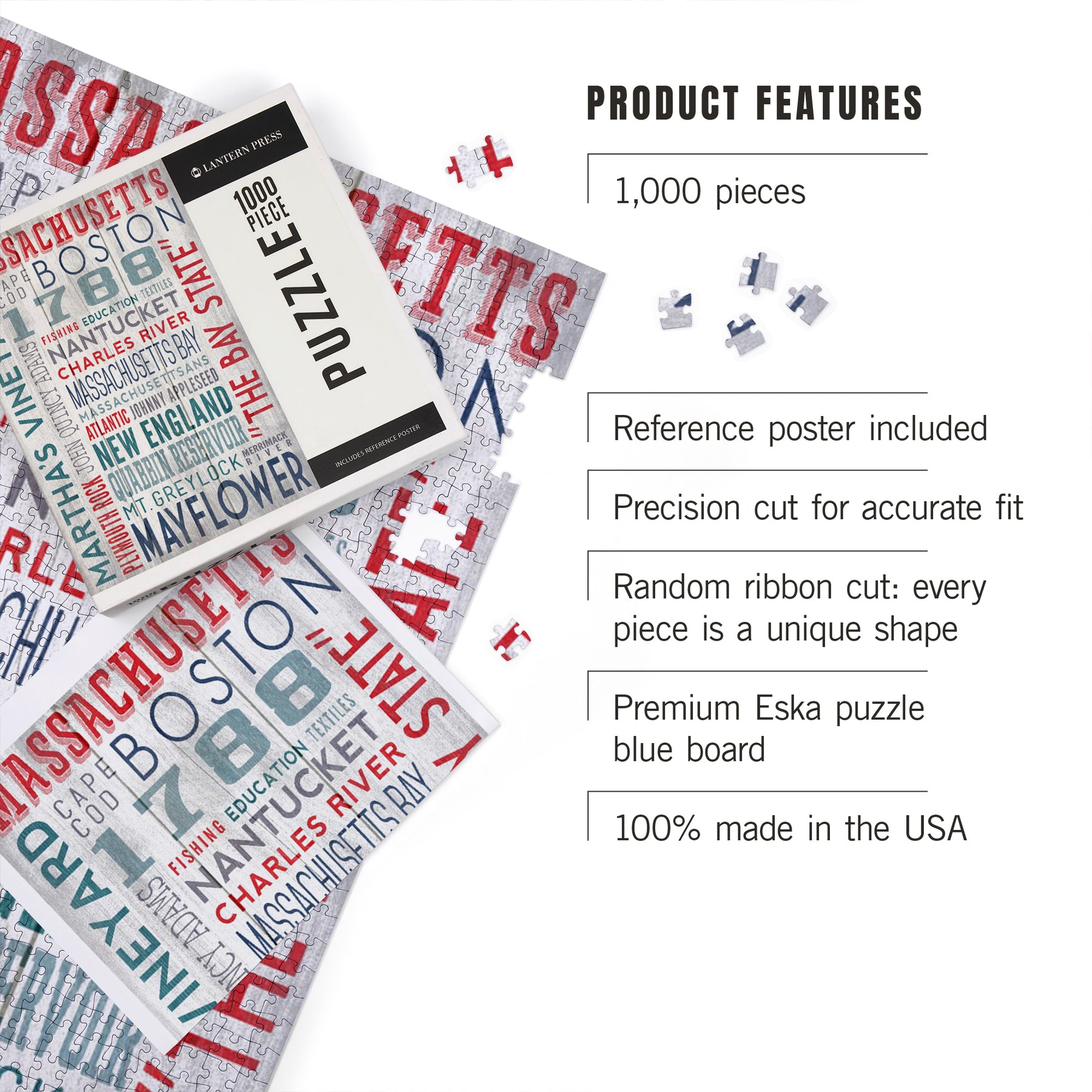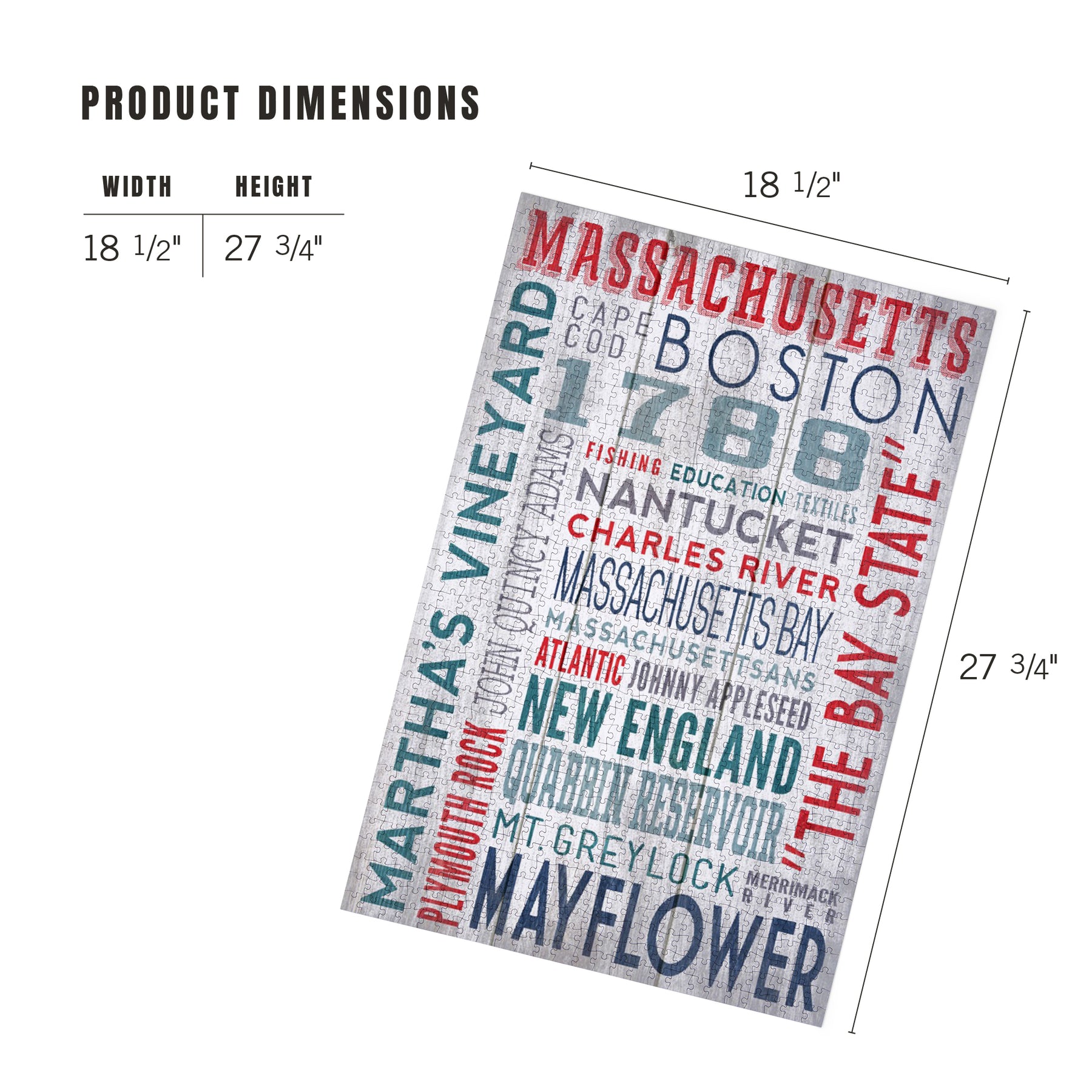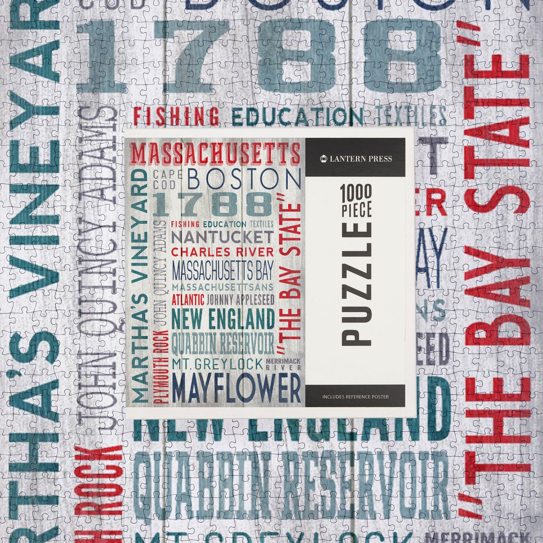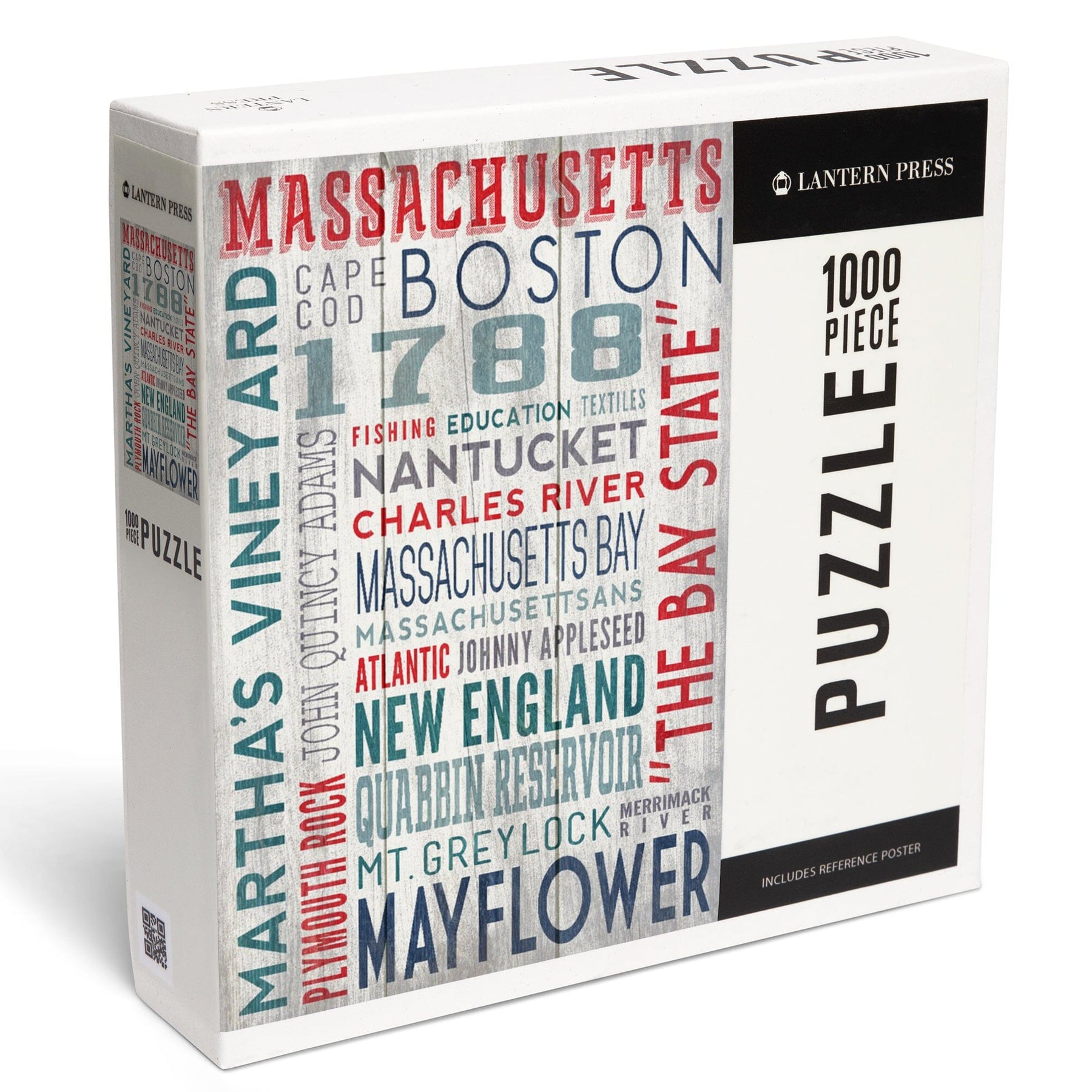 Massachusetts, Rustic Typography, Jigsaw Puzzle Puzzle Lantern Press