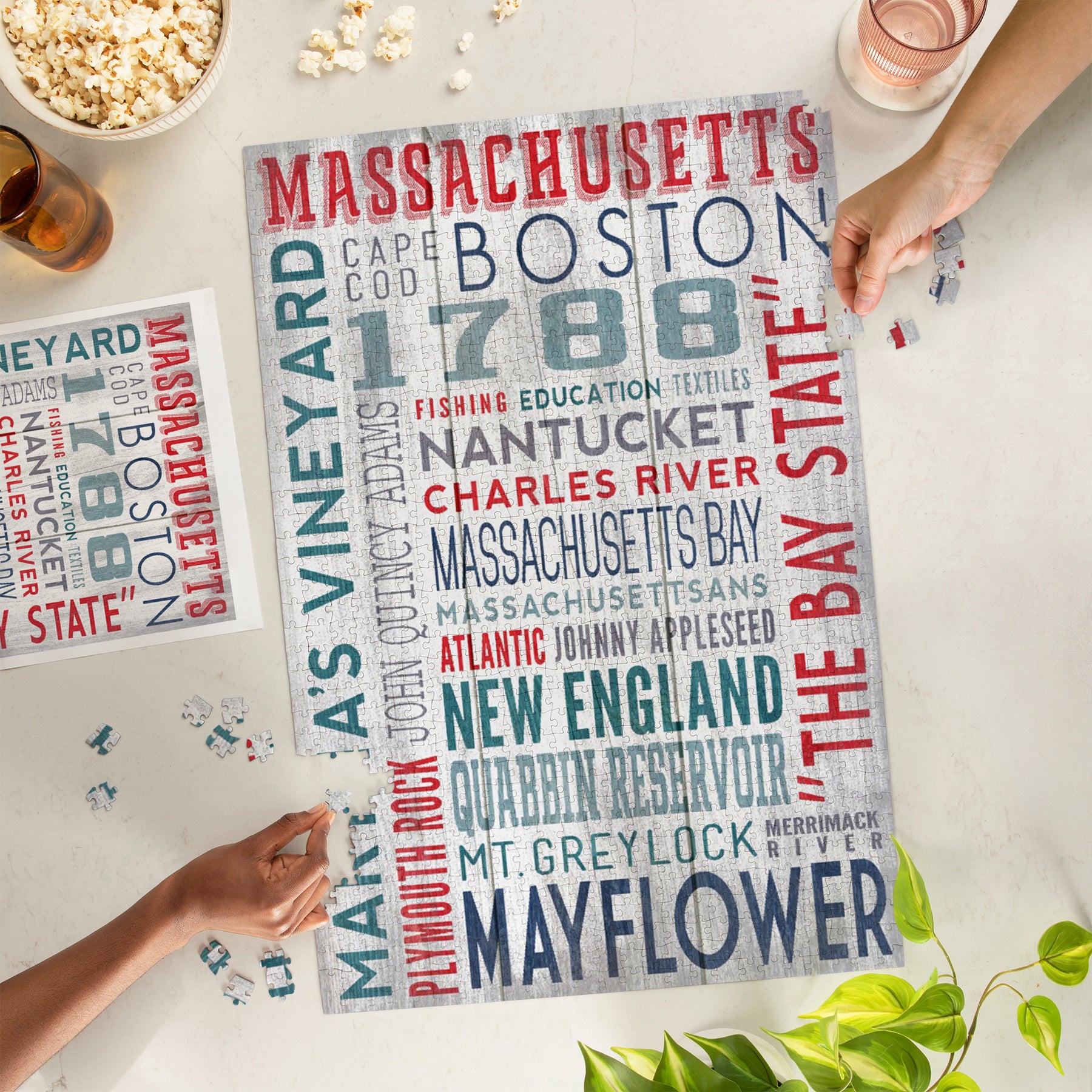 Massachusetts, Rustic Typography, Jigsaw Puzzle