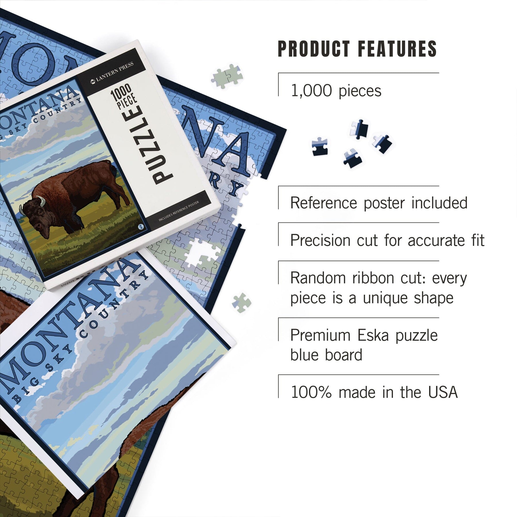 Montana, Big Sky Country, Bison, Jigsaw Puzzle Puzzle Lantern Press