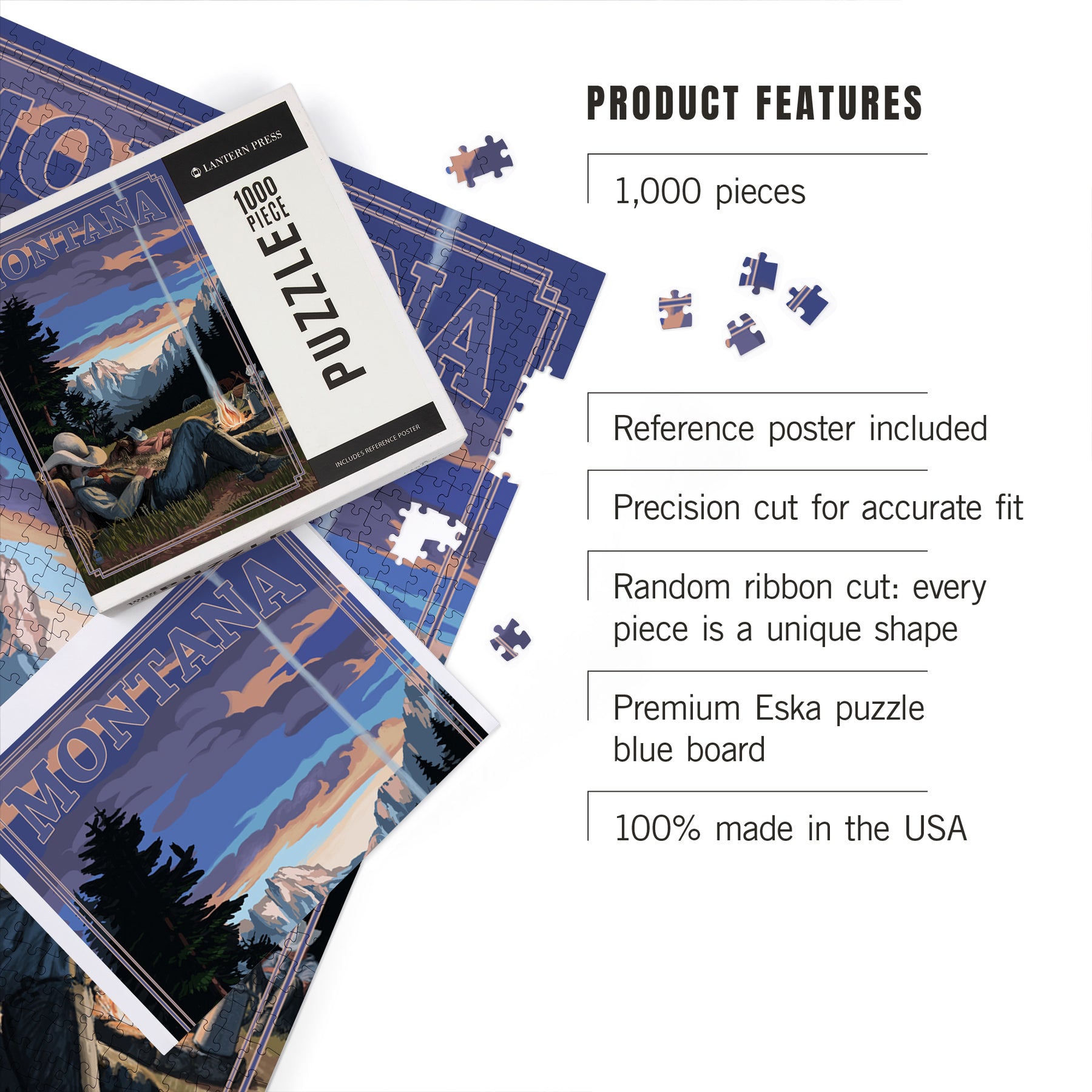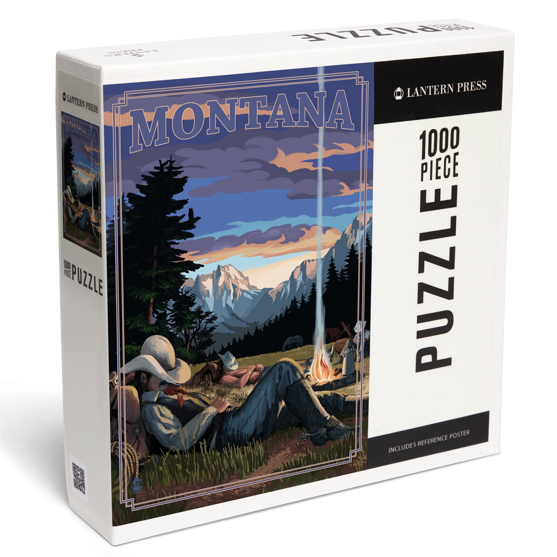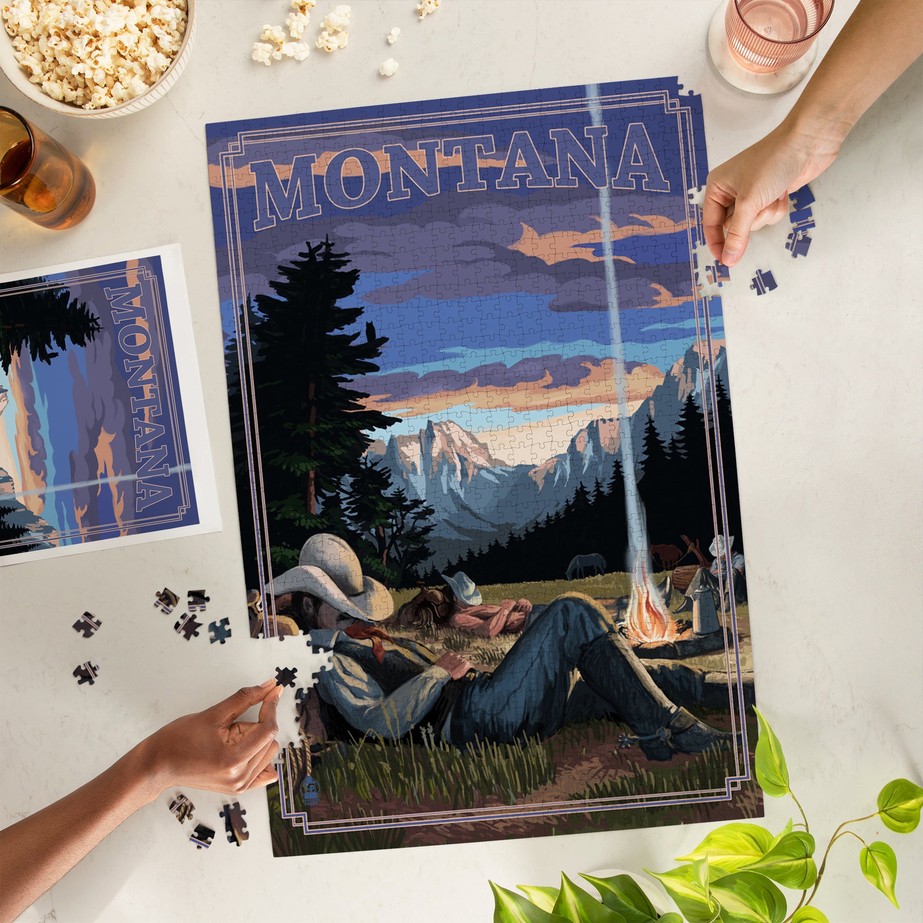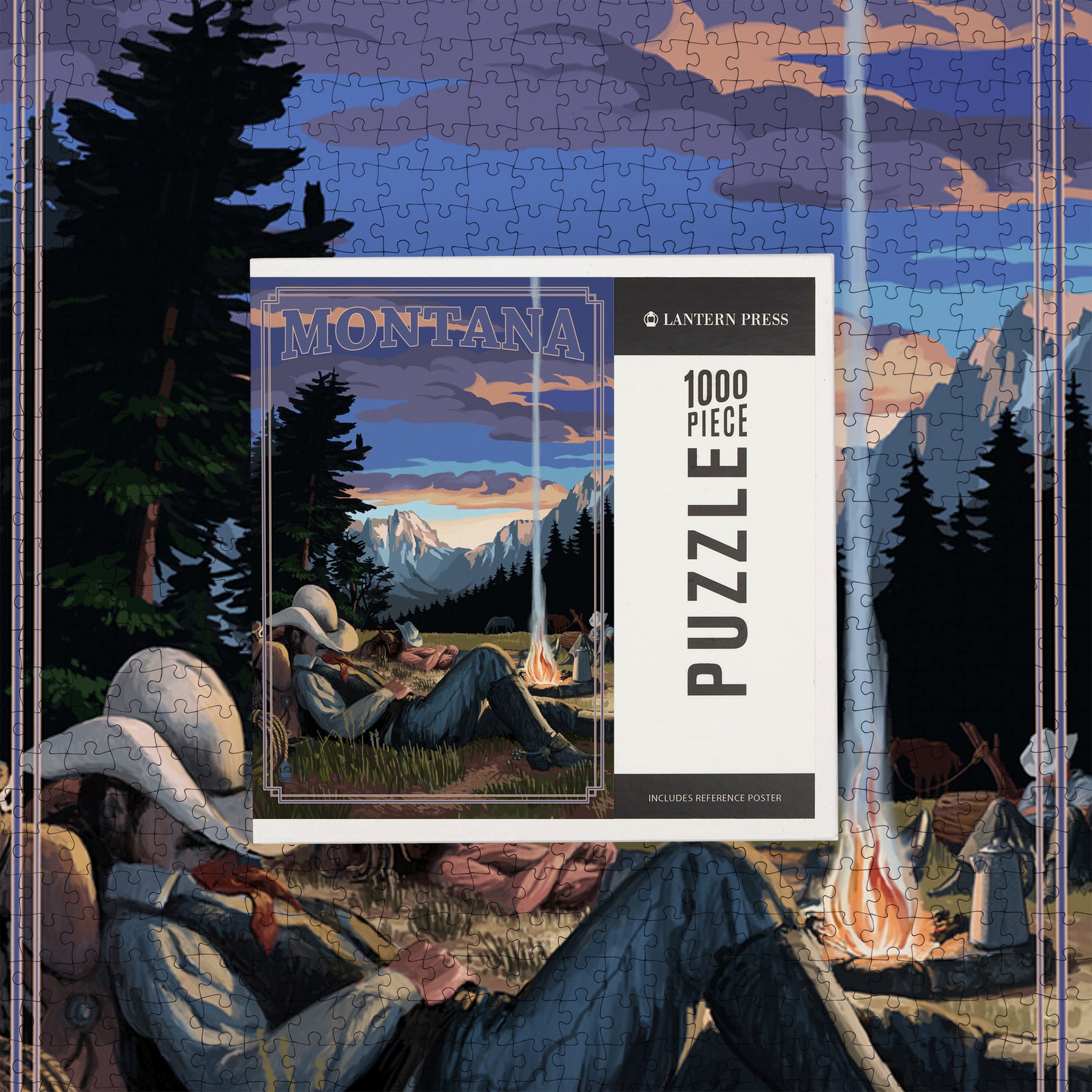 Montana, Cowboy Camping Night Scene, Jigsaw Puzzle Puzzle Lantern Press