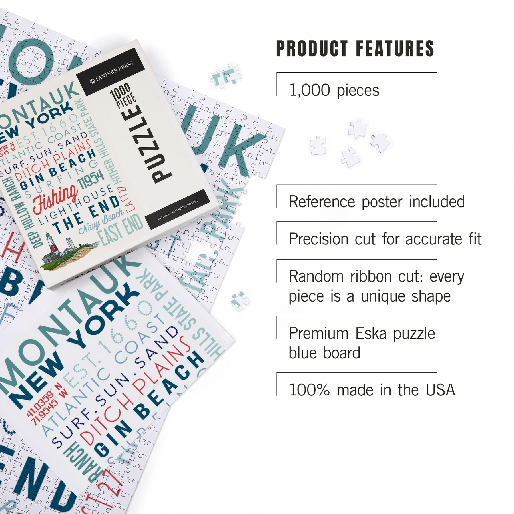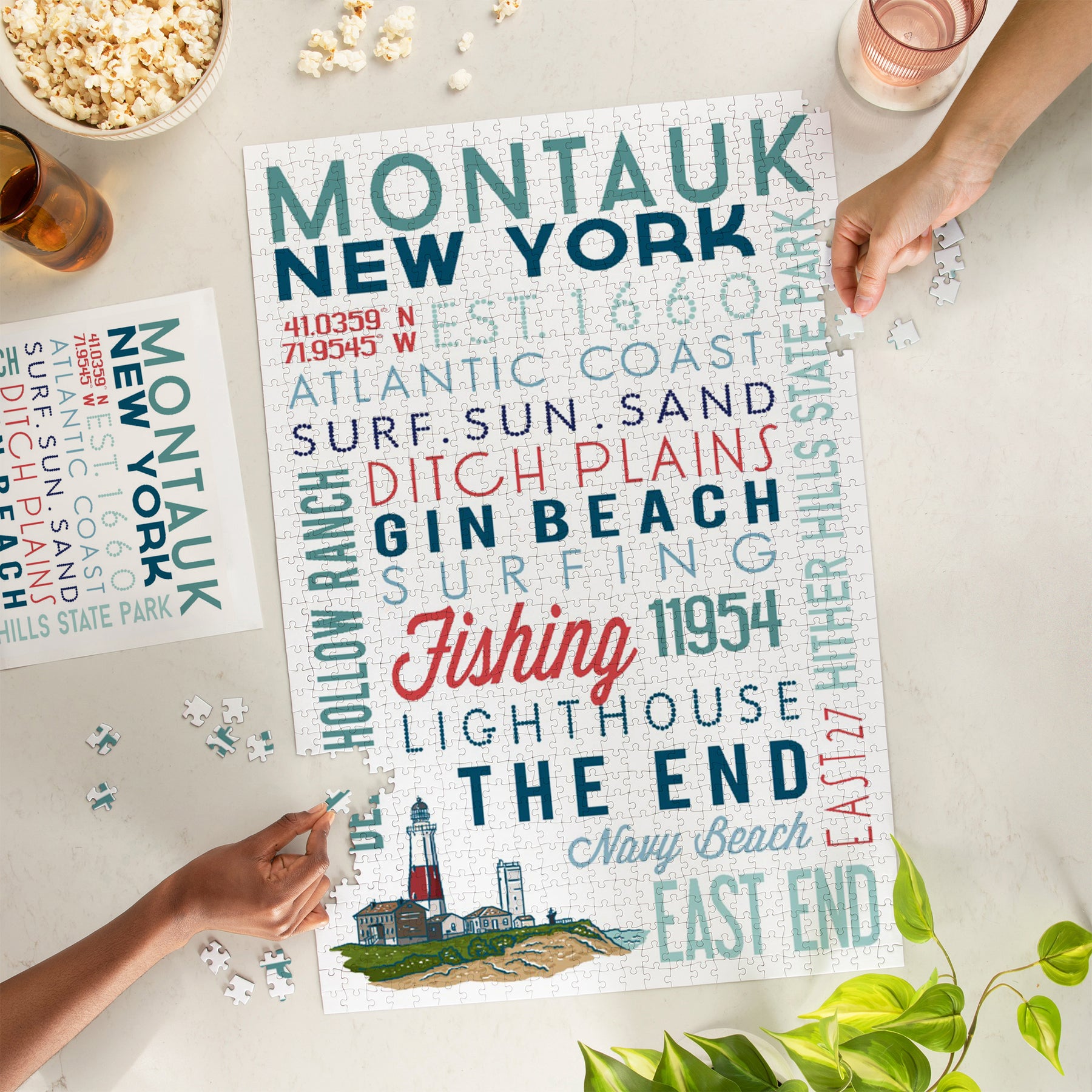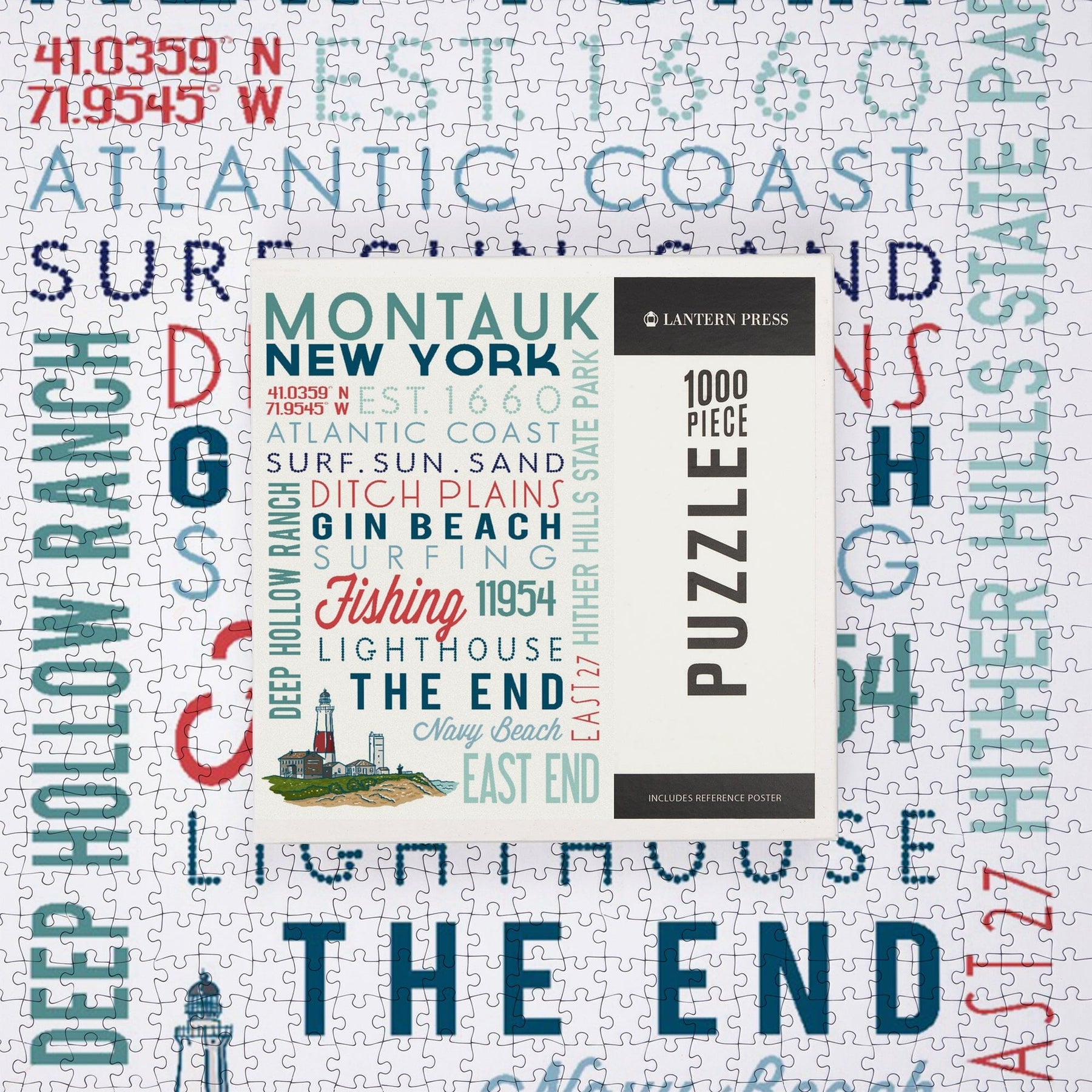 Montauk, New York, Typography, Jigsaw Puzzle Puzzle Lantern Press