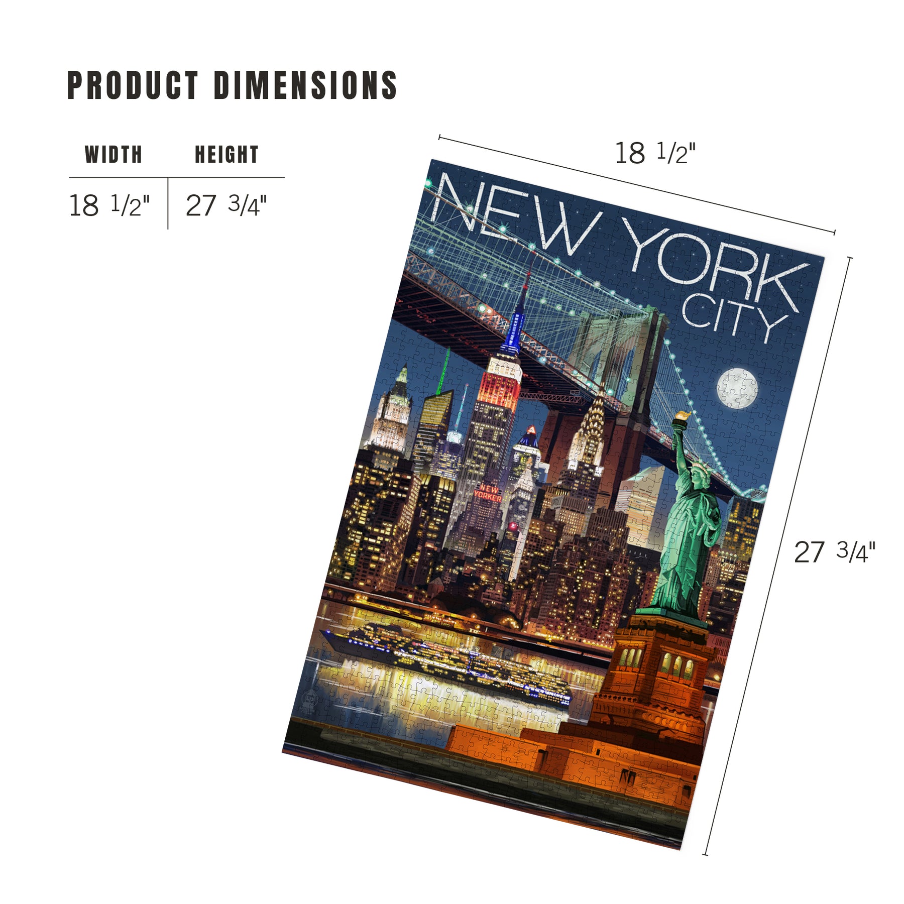 • Puzzle measures 18.5 by 27.75 inches