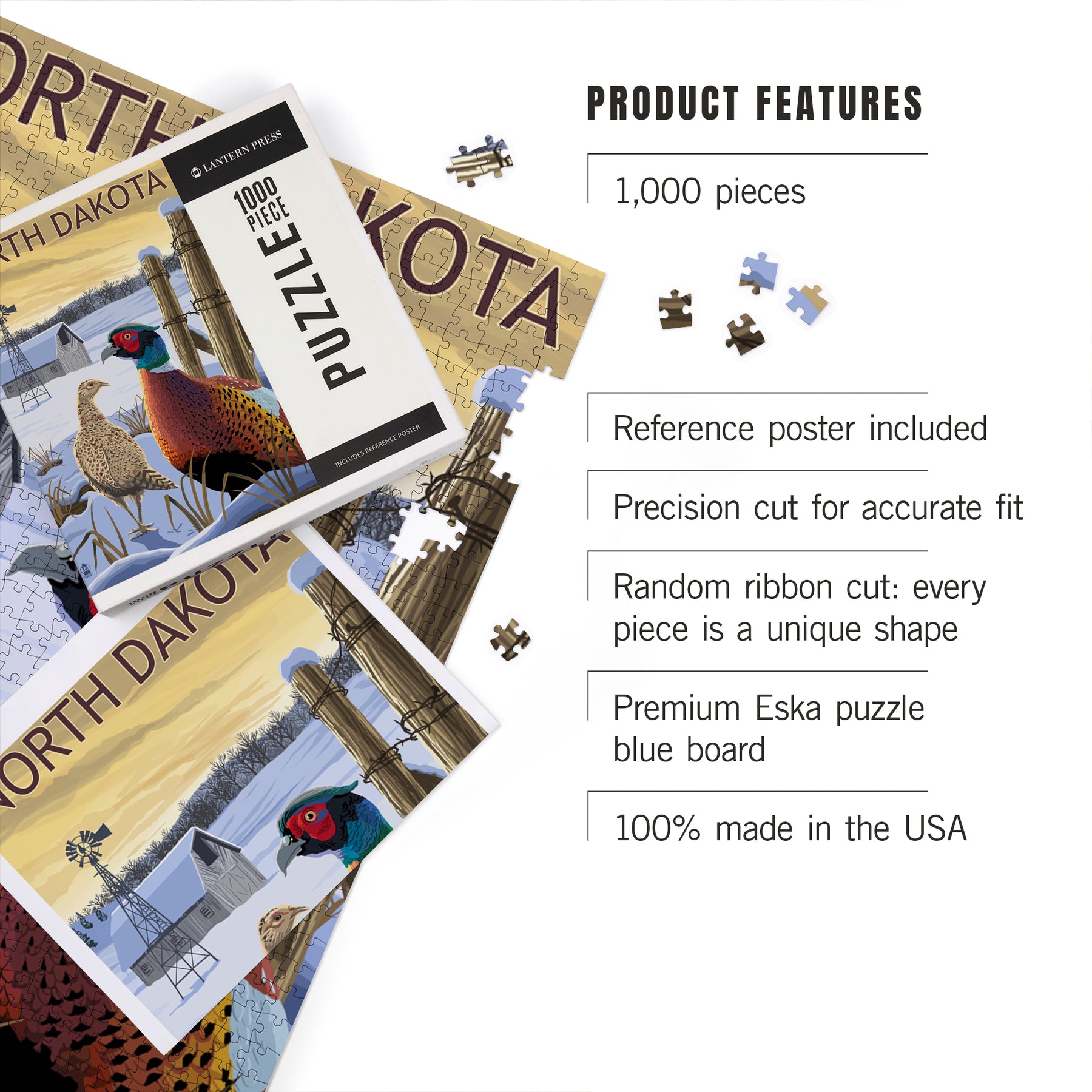 North Dakota, Pheasants, Jigsaw Puzzle Puzzle Lantern Press