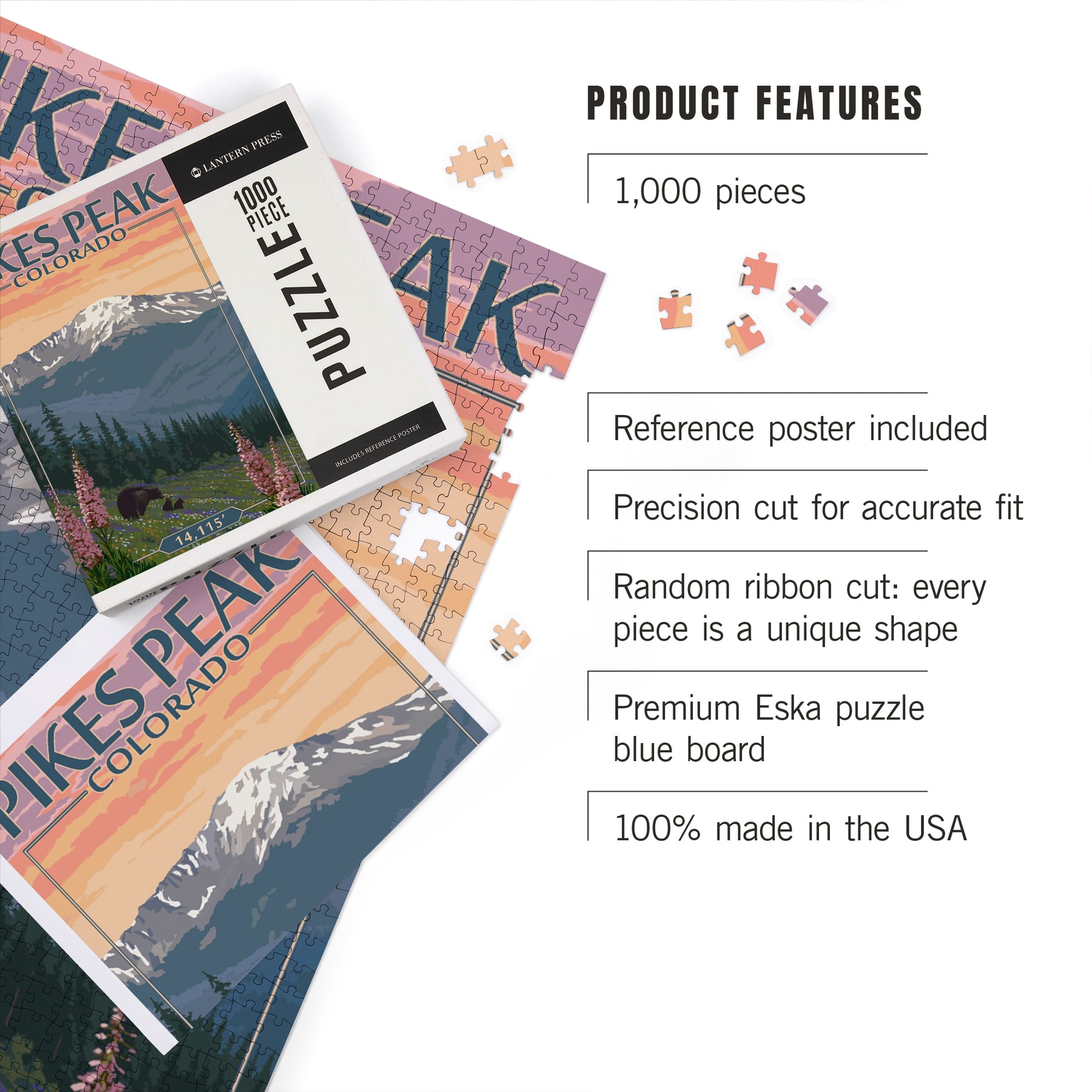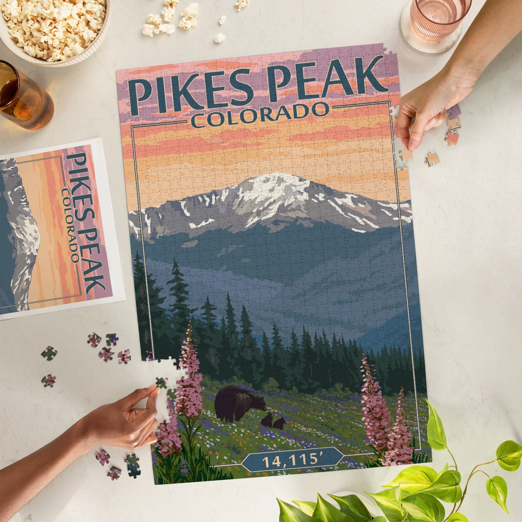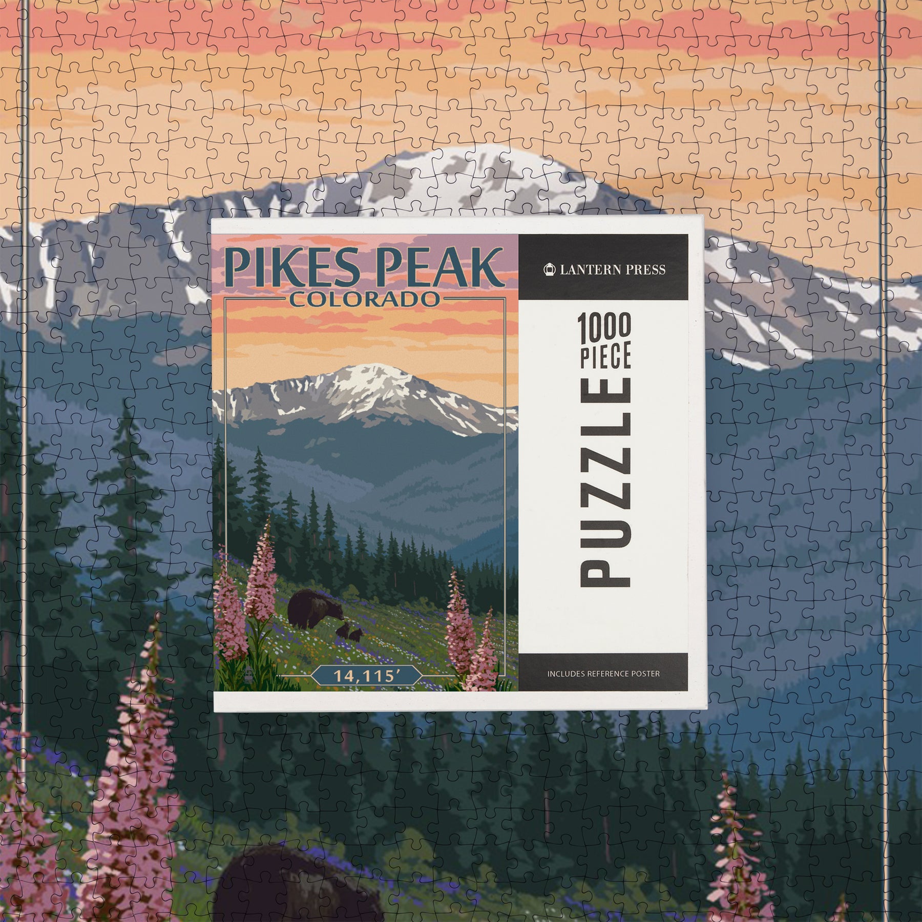 Pikes Peak, Colorado, Bear and Spring Flowers, Jigsaw Puzzle Puzzle Lantern Press