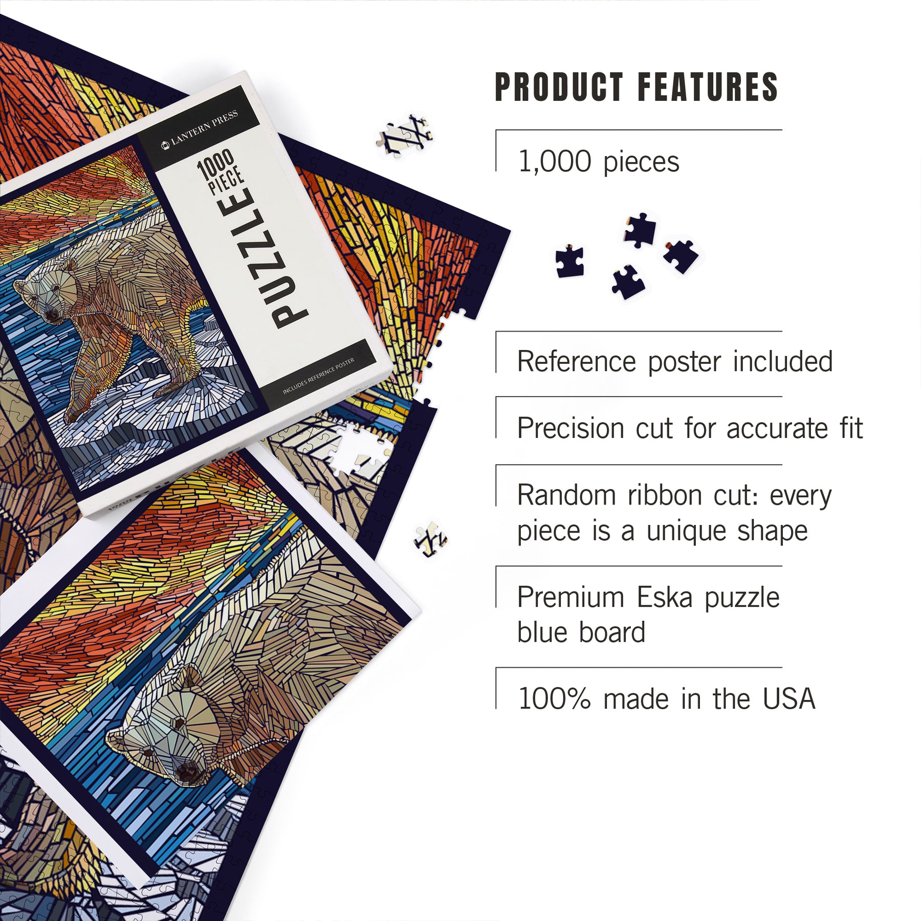 Polar Bear, Paper Mosaic, Jigsaw Puzzle Puzzle Lantern Press