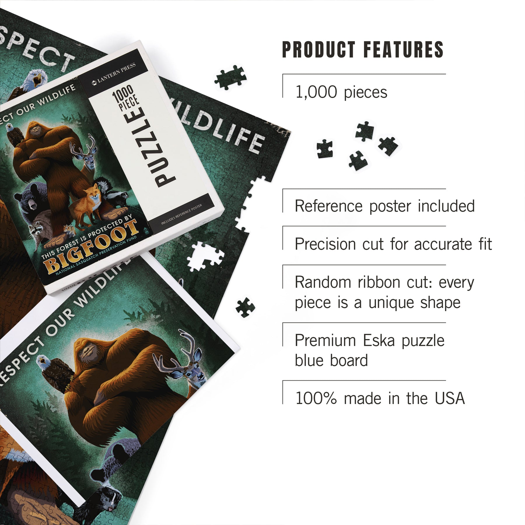 Respect Our Wildlife, Bigfoot, Jigsaw Puzzle Puzzle Lantern Press