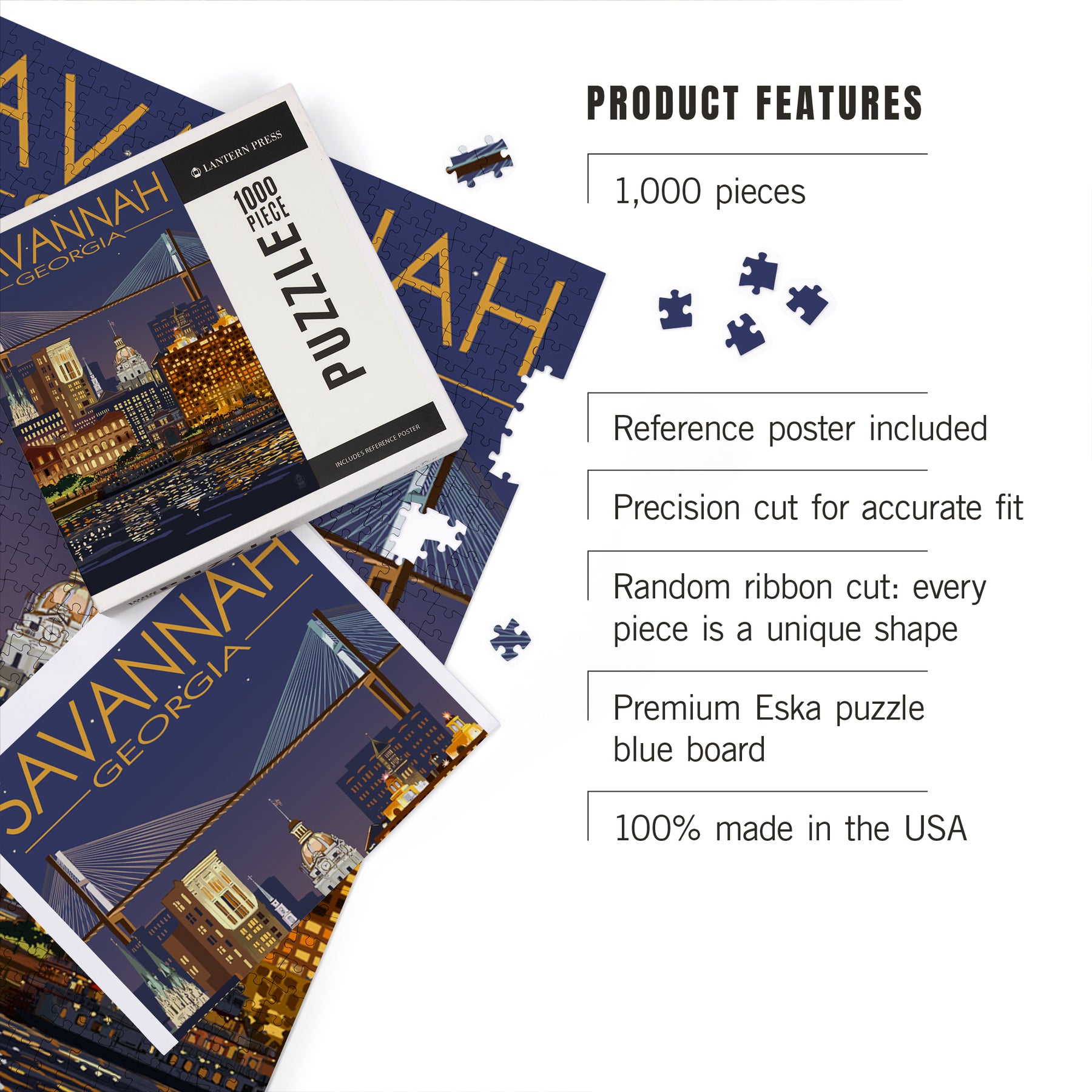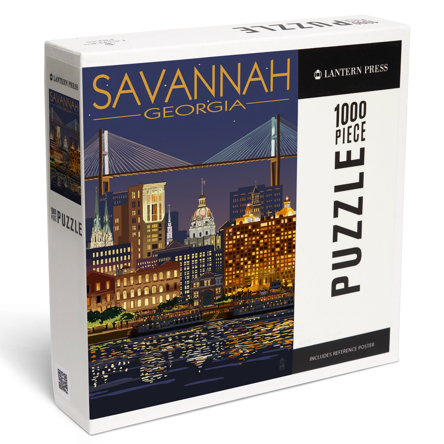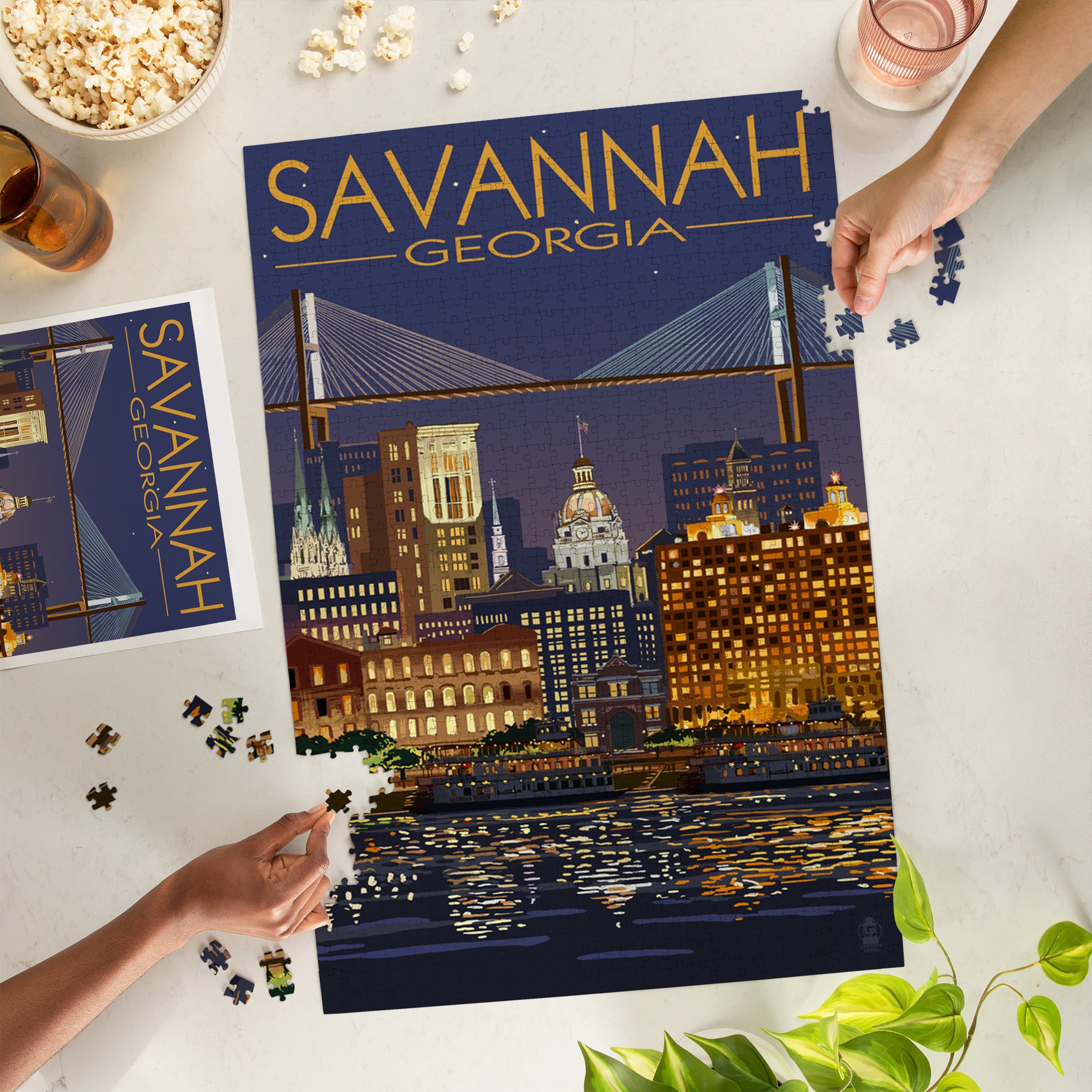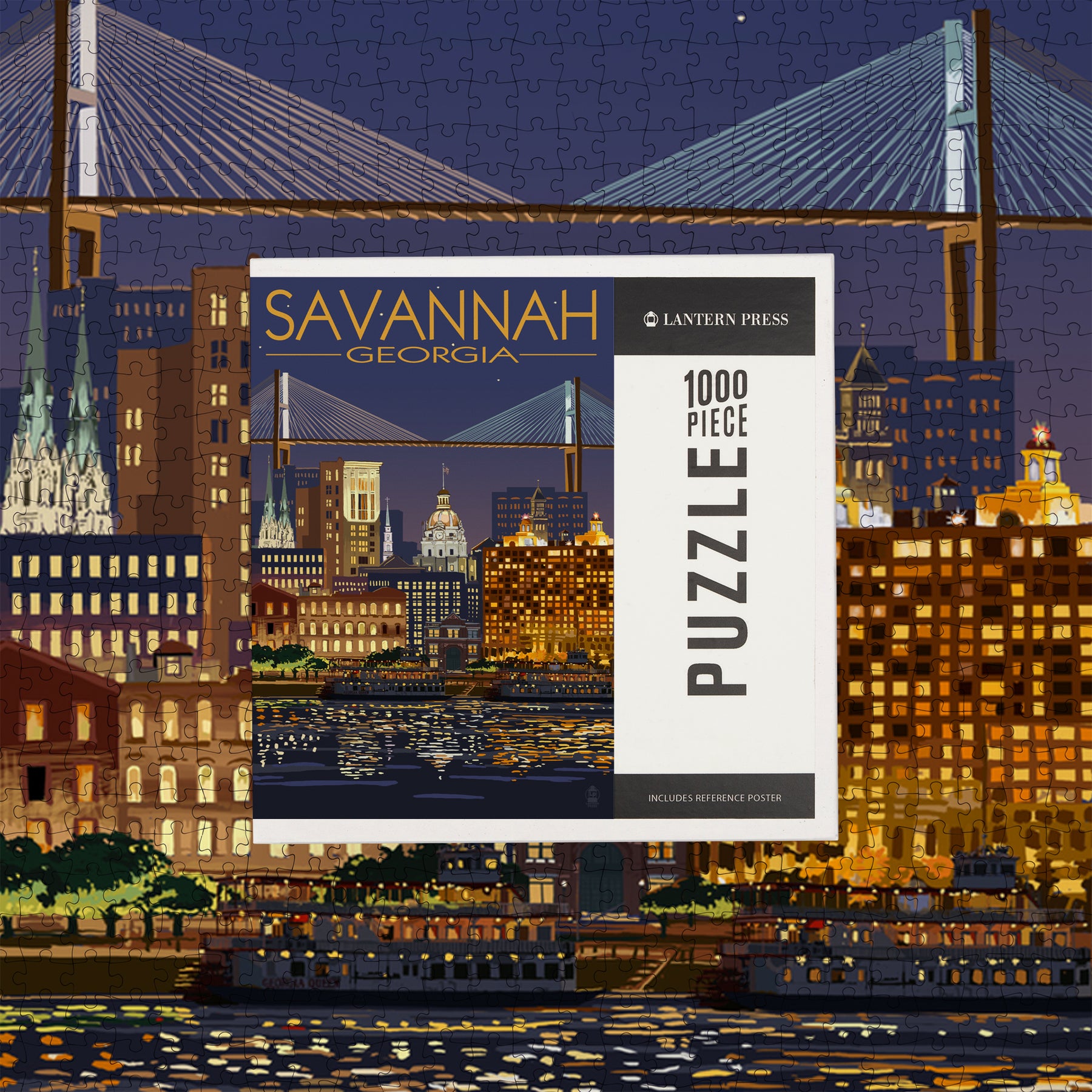 Savannah, Georgia at Night, Jigsaw Puzzle Puzzle Lantern Press