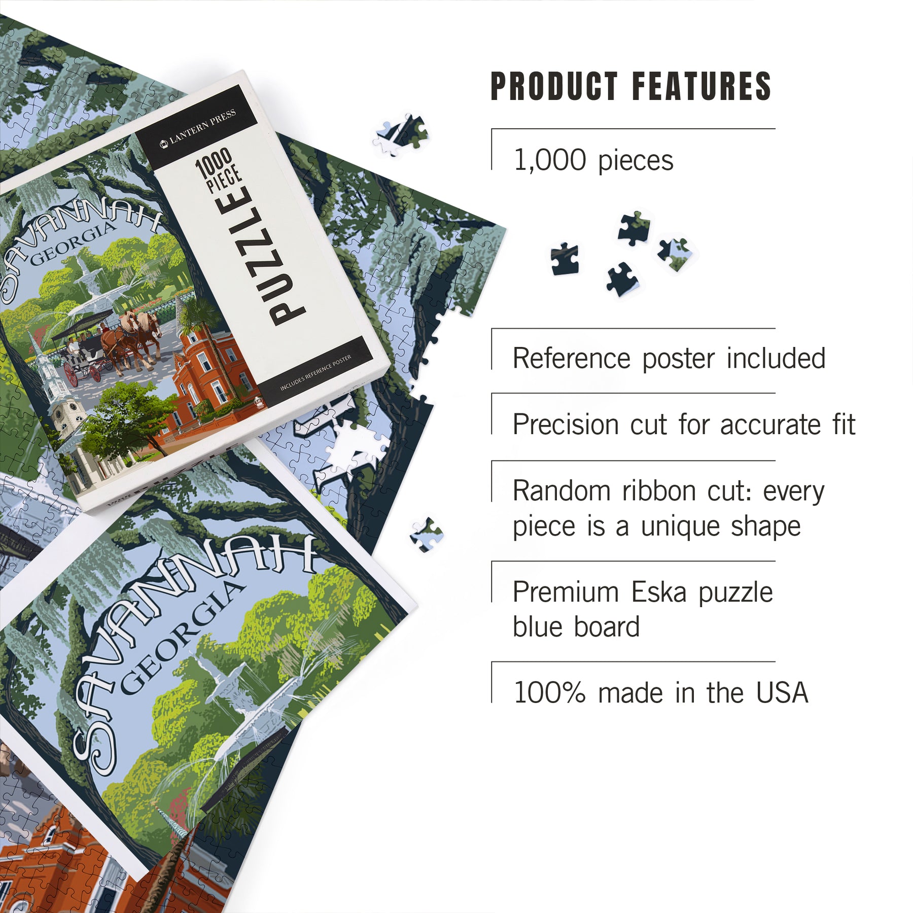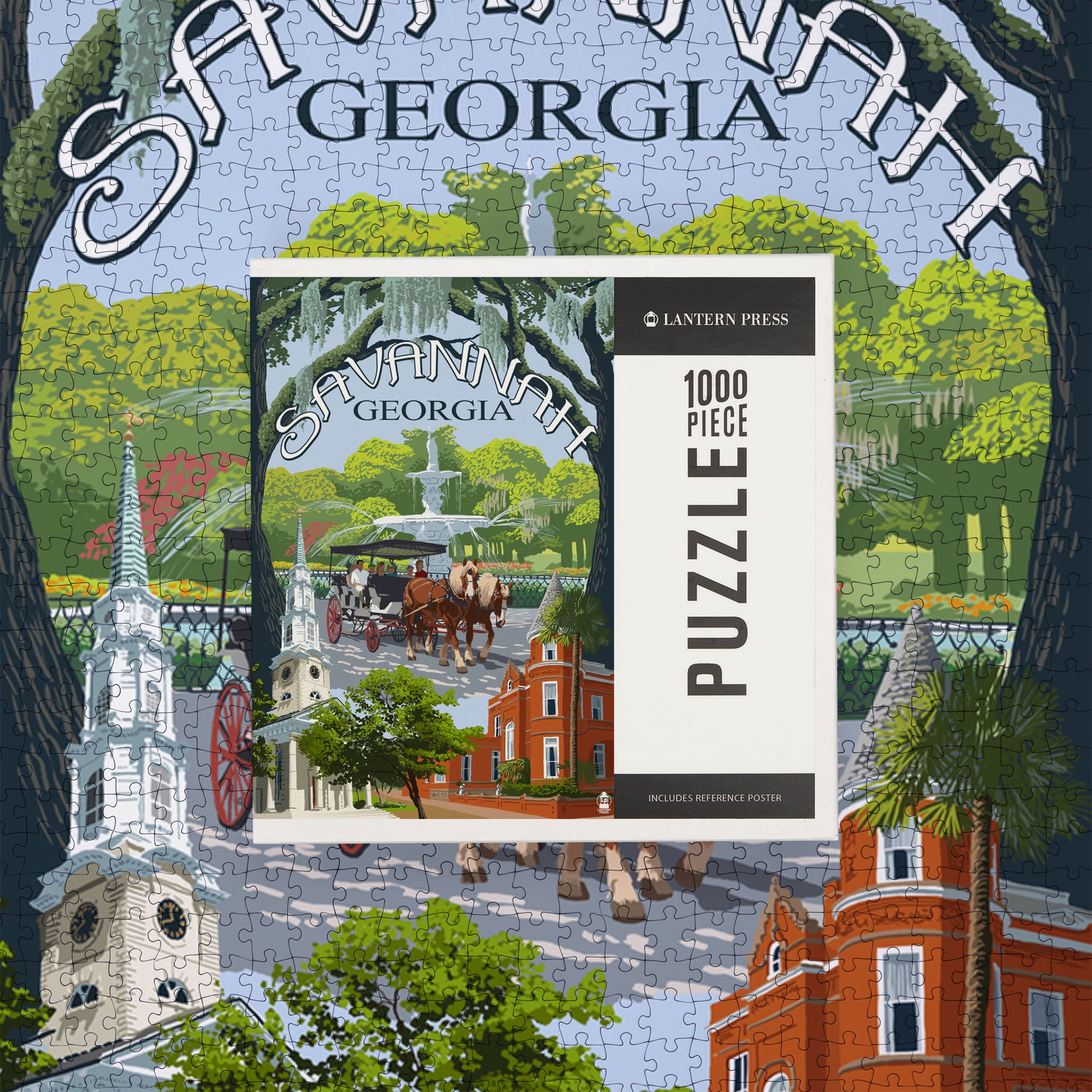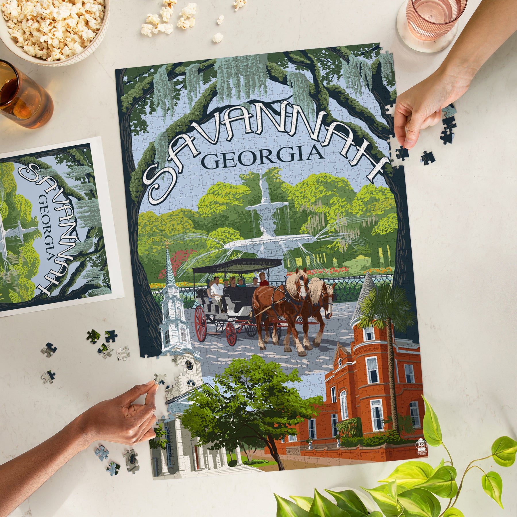 Savannah, Georgia, Town Views, Jigsaw Puzzle Puzzle Lantern Press