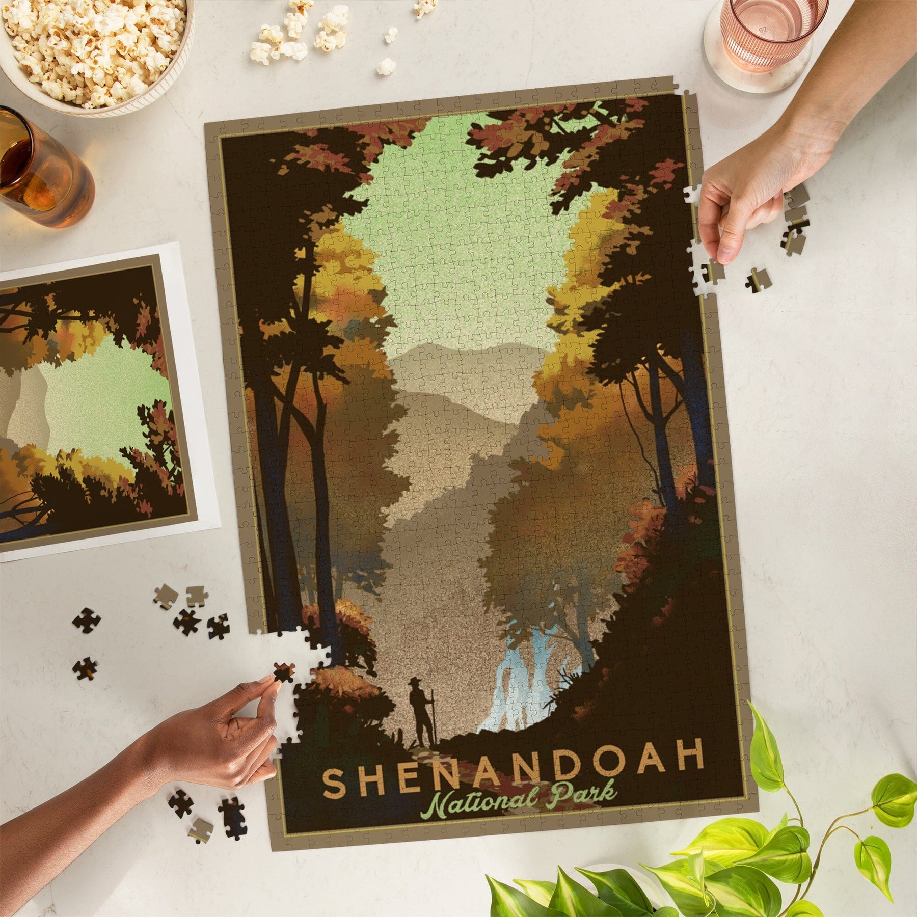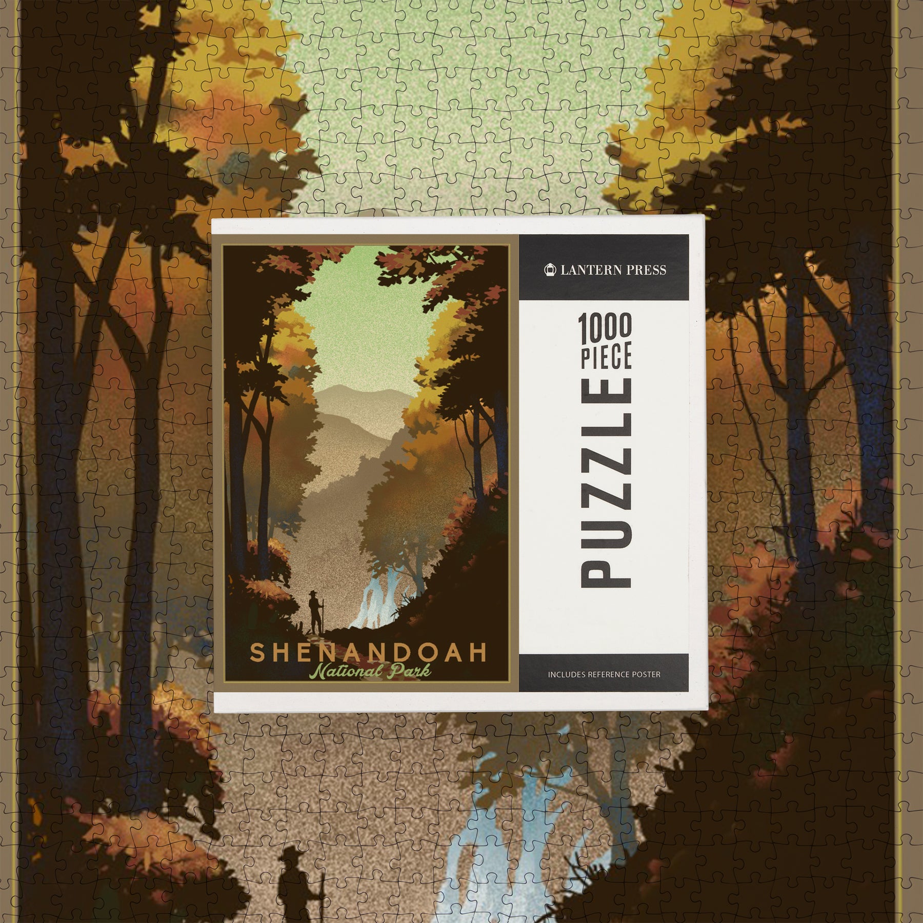 Shenandoah National Park, Falls, Lithograph, Jigsaw Puzzle Puzzle Lantern Press