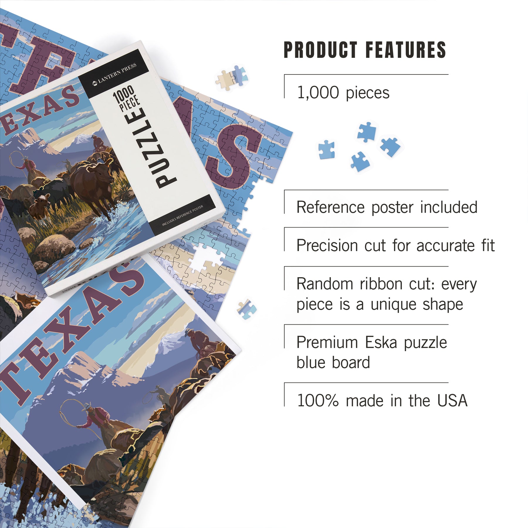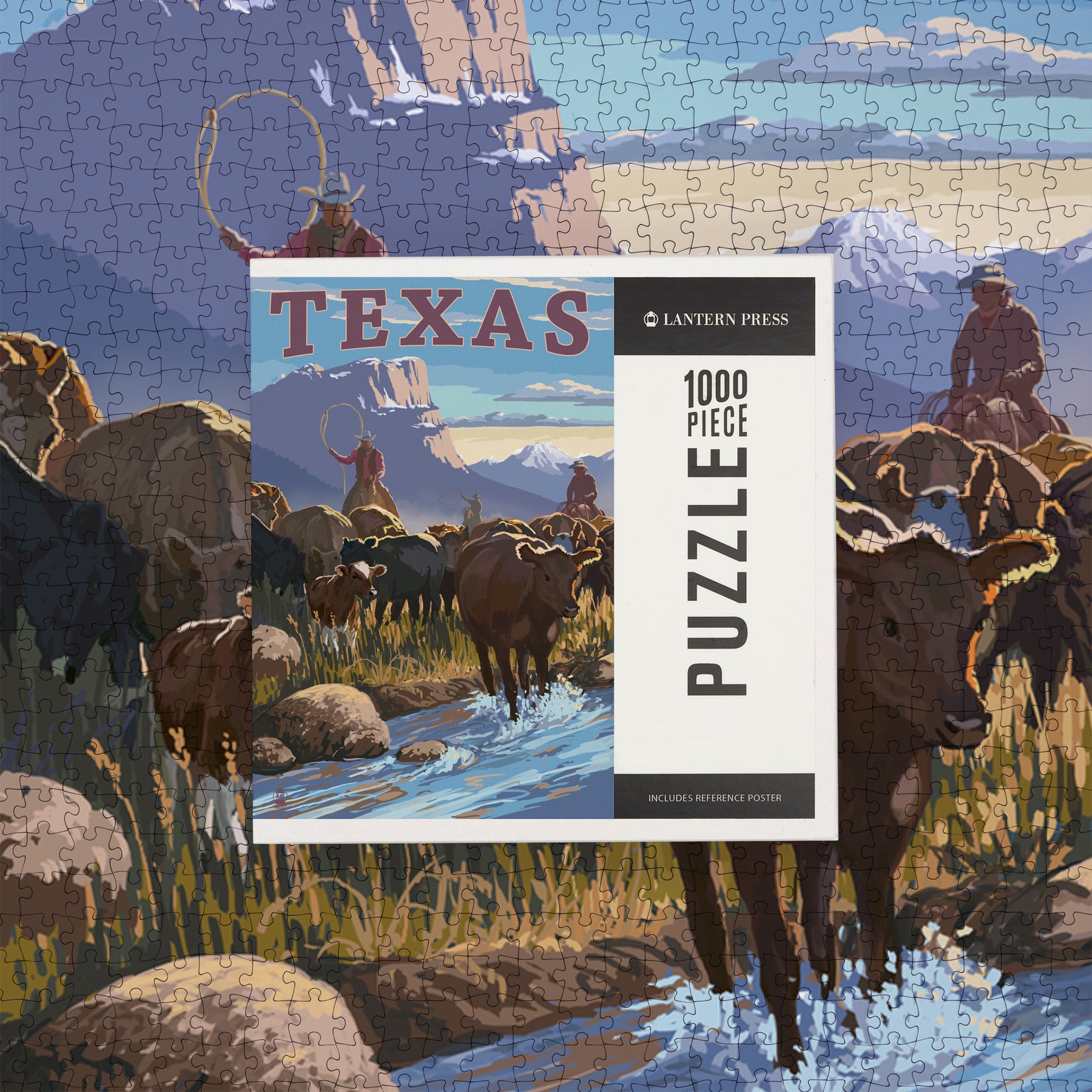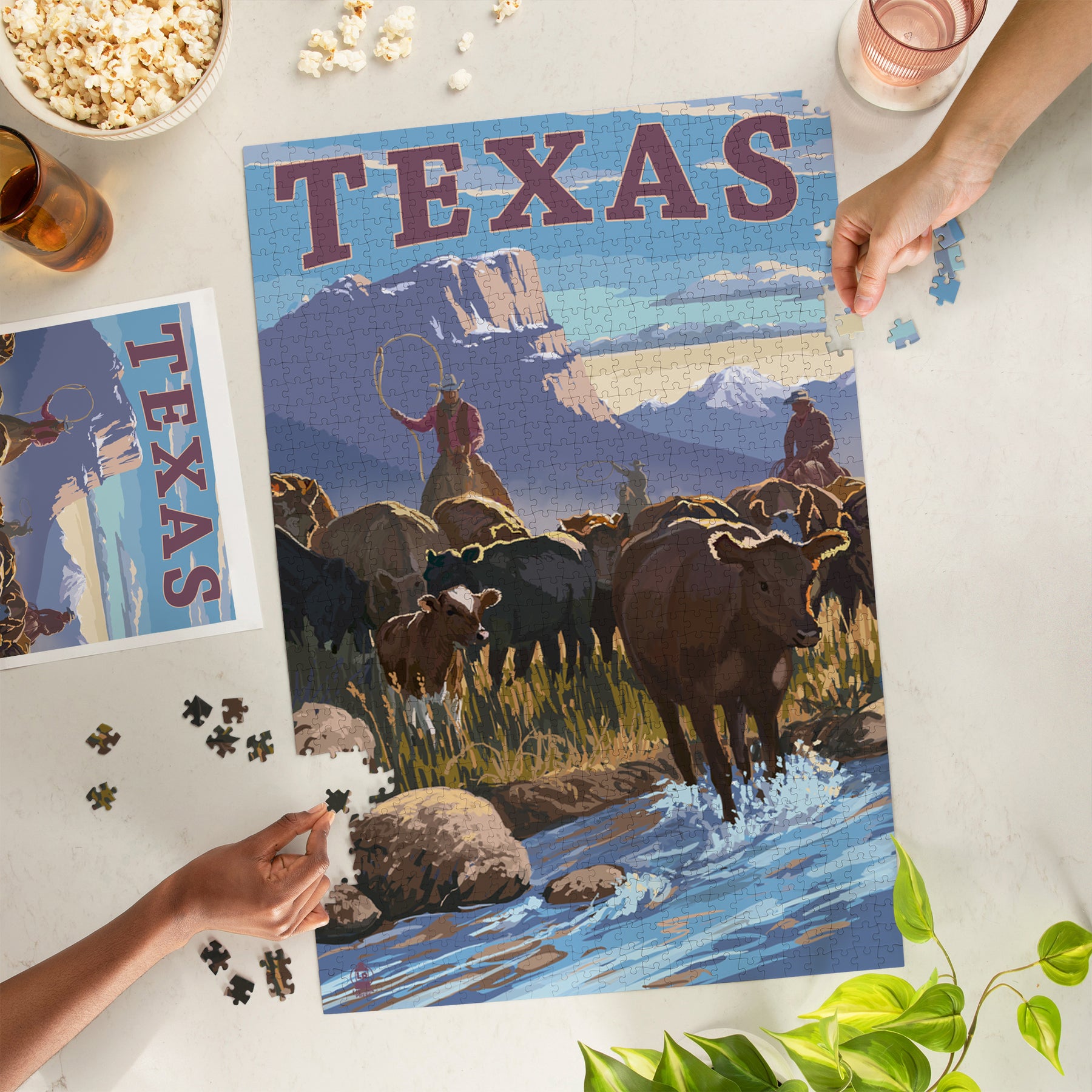 Texas, Cowboy Cattle Drive Scene, Jigsaw Puzzle Puzzle Lantern Press