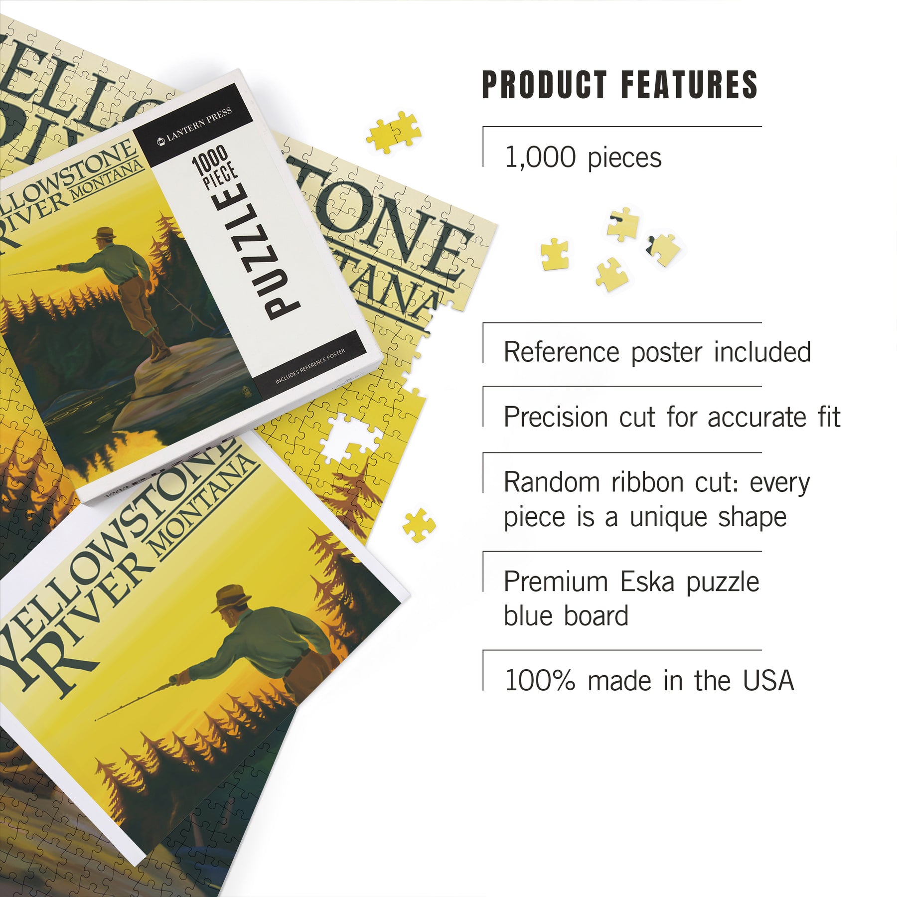Yellowstone River, Montana, Fly Fishing Scene, Jigsaw Puzzle Puzzle Lantern Press