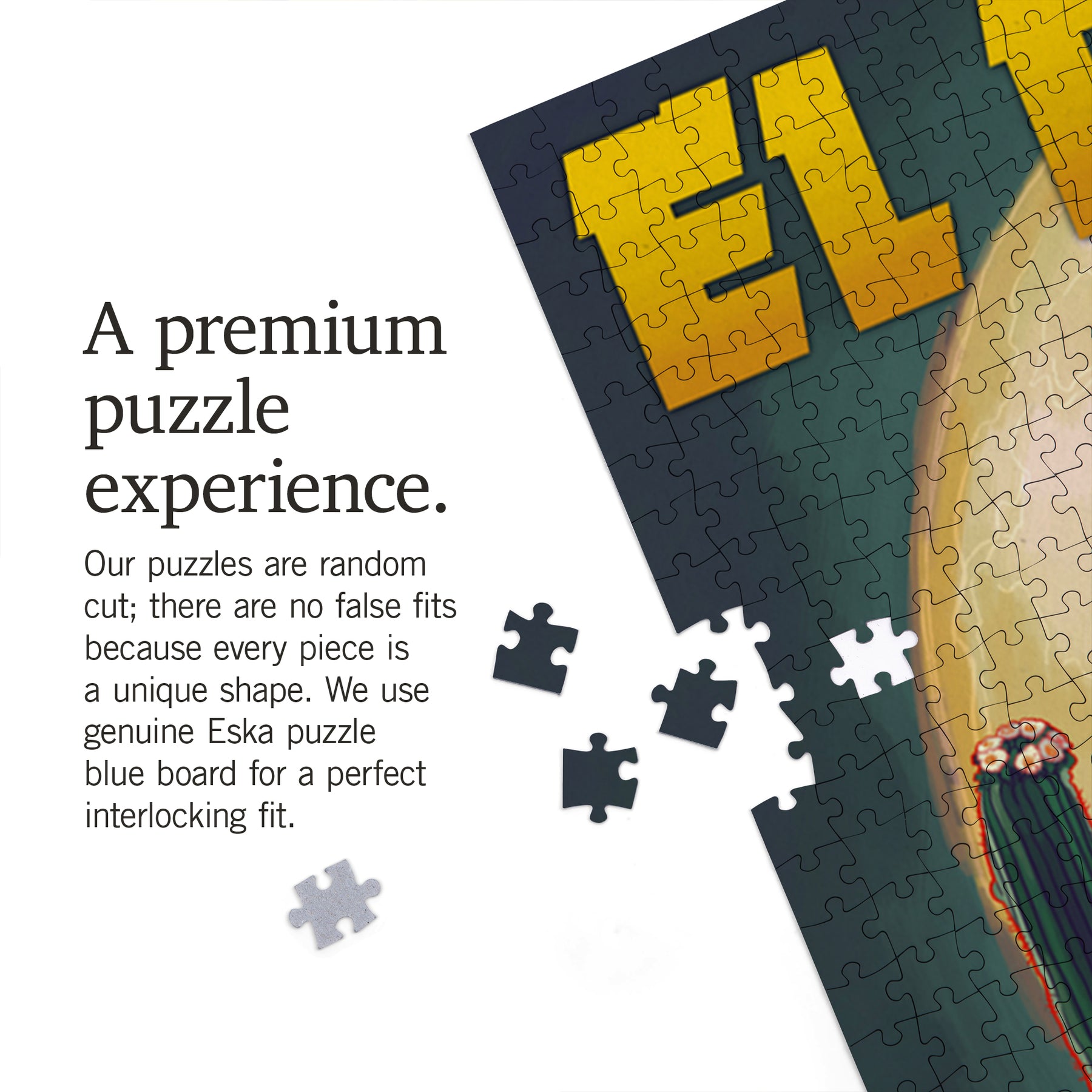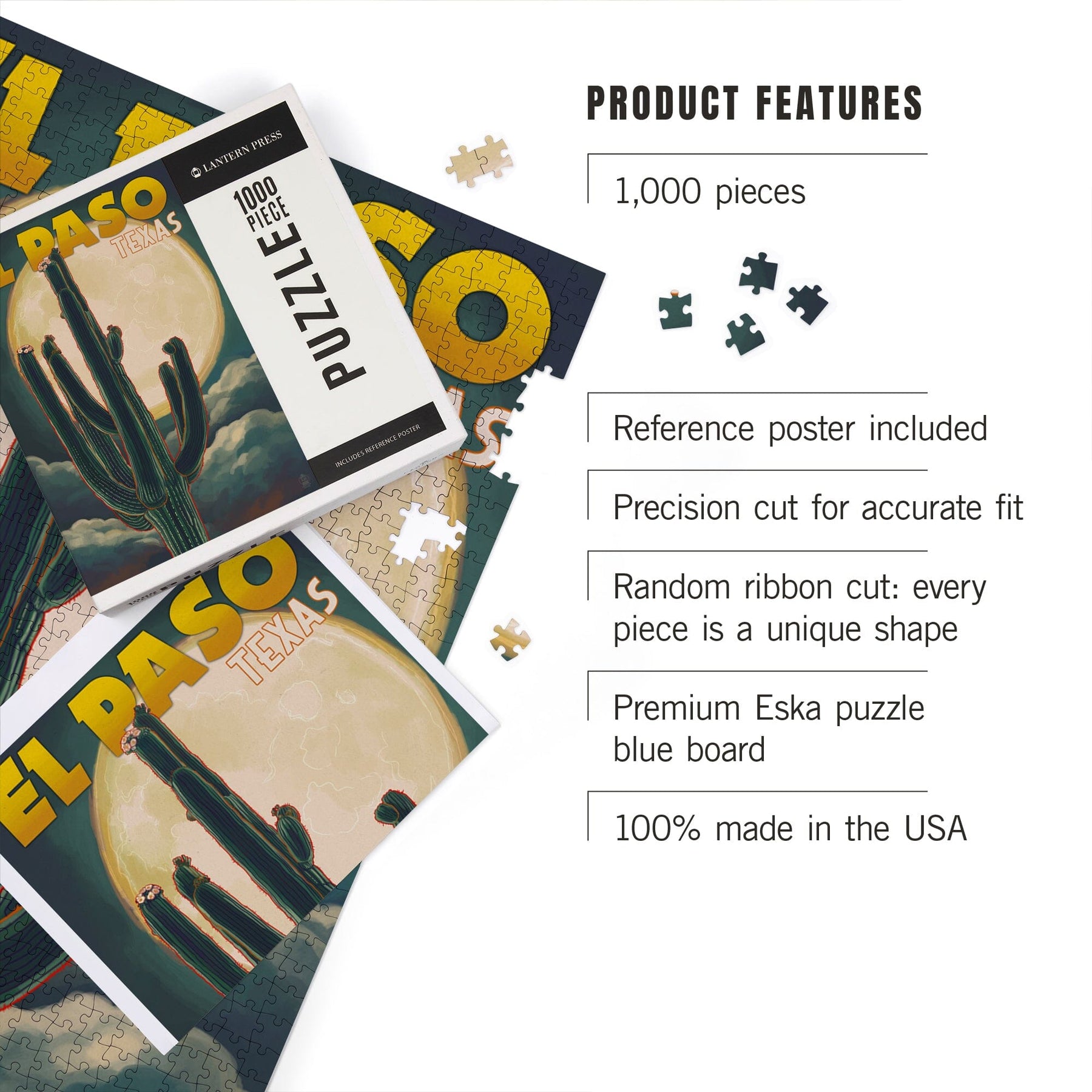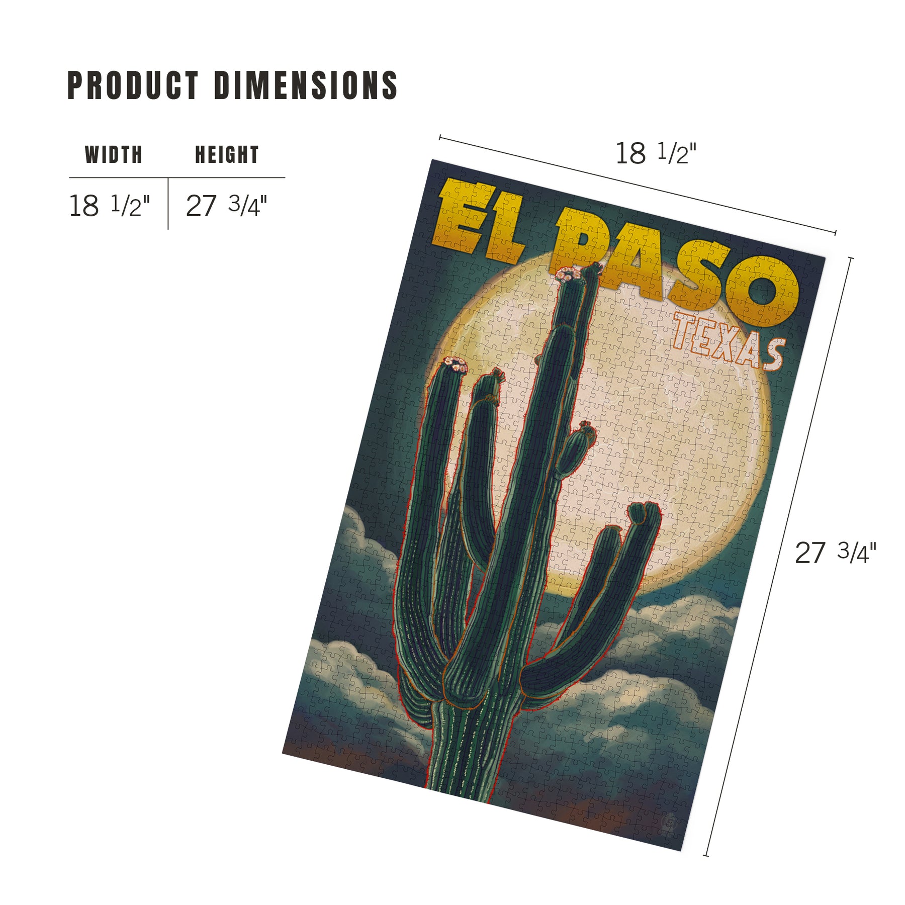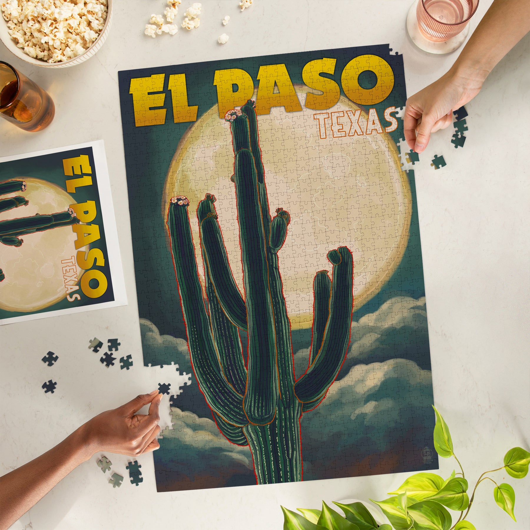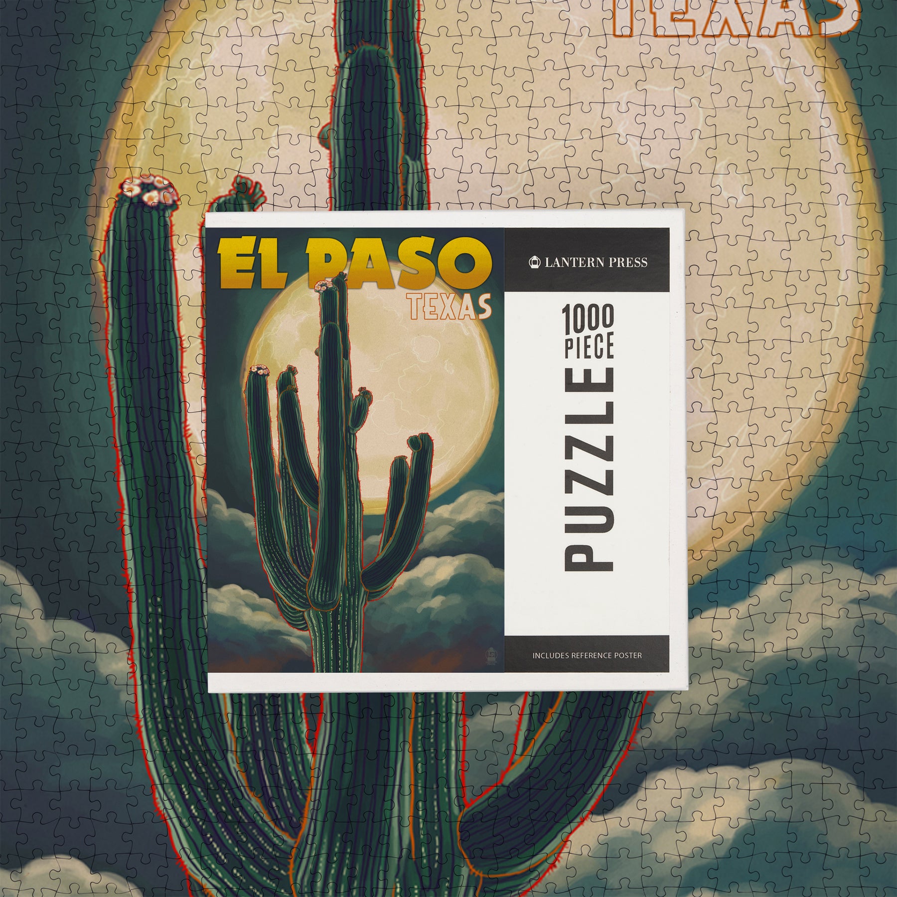 El Paso, Texas, Cactus and Full Moon, Jigsaw Puzzle Puzzle Lantern Press