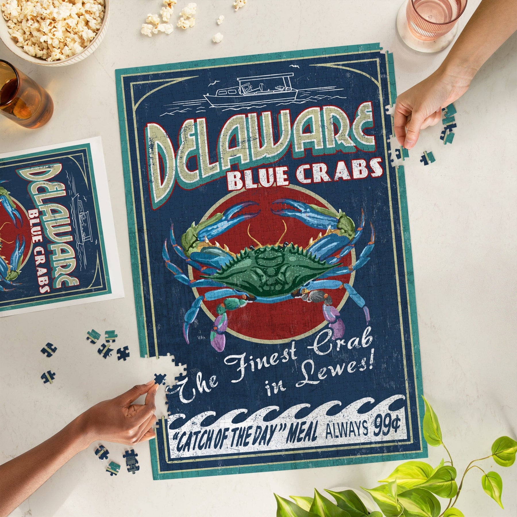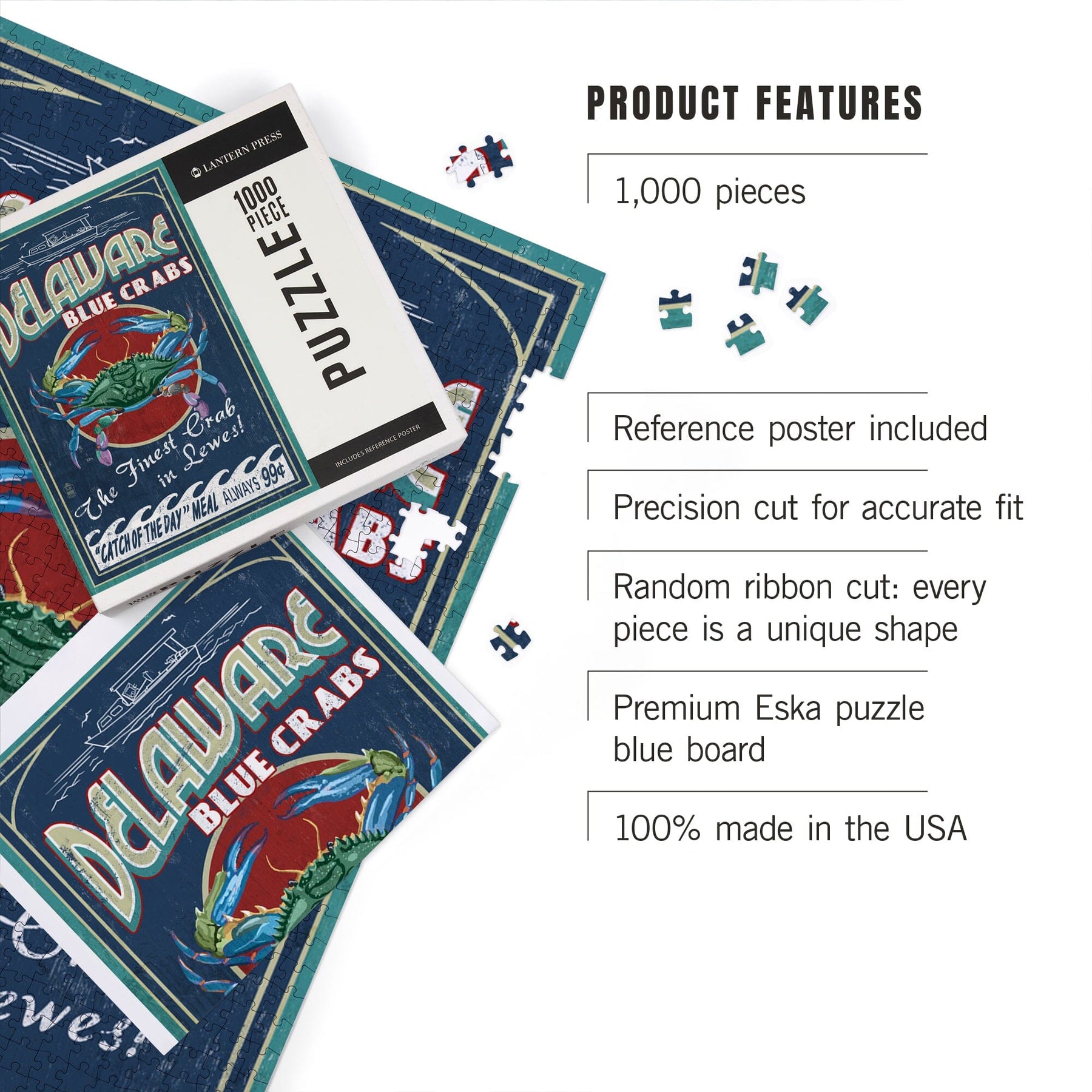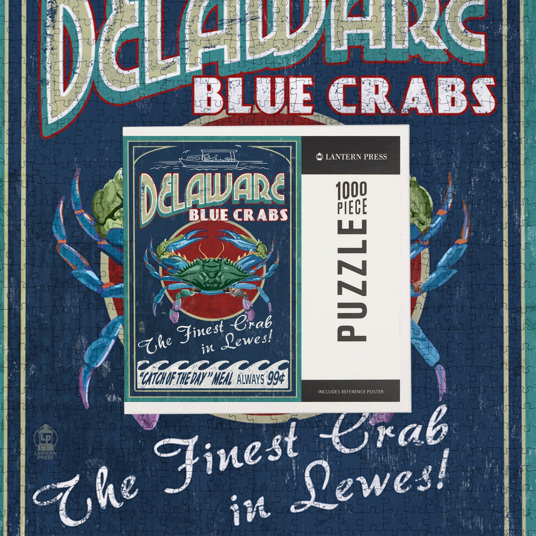 Lewes, Delaware, Blue Crabs Vintage Sign, Jigsaw Puzzle Puzzle Lantern Press
