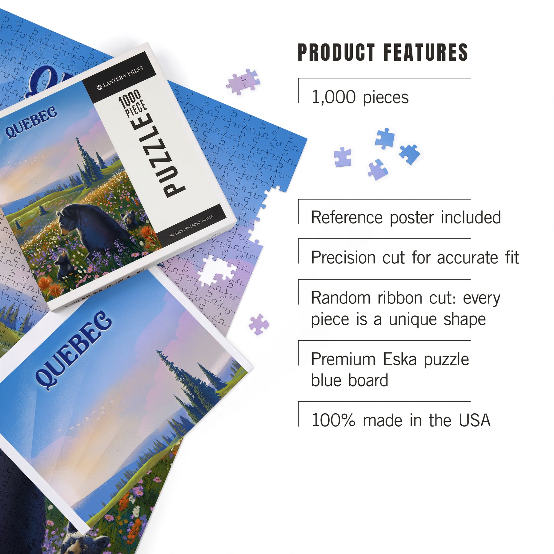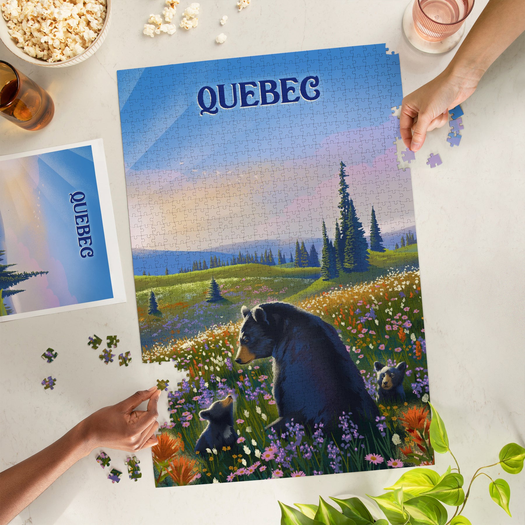 Quebec, Lithograph, Bear Family in Field, Jigsaw Puzzle Puzzle Lantern Press