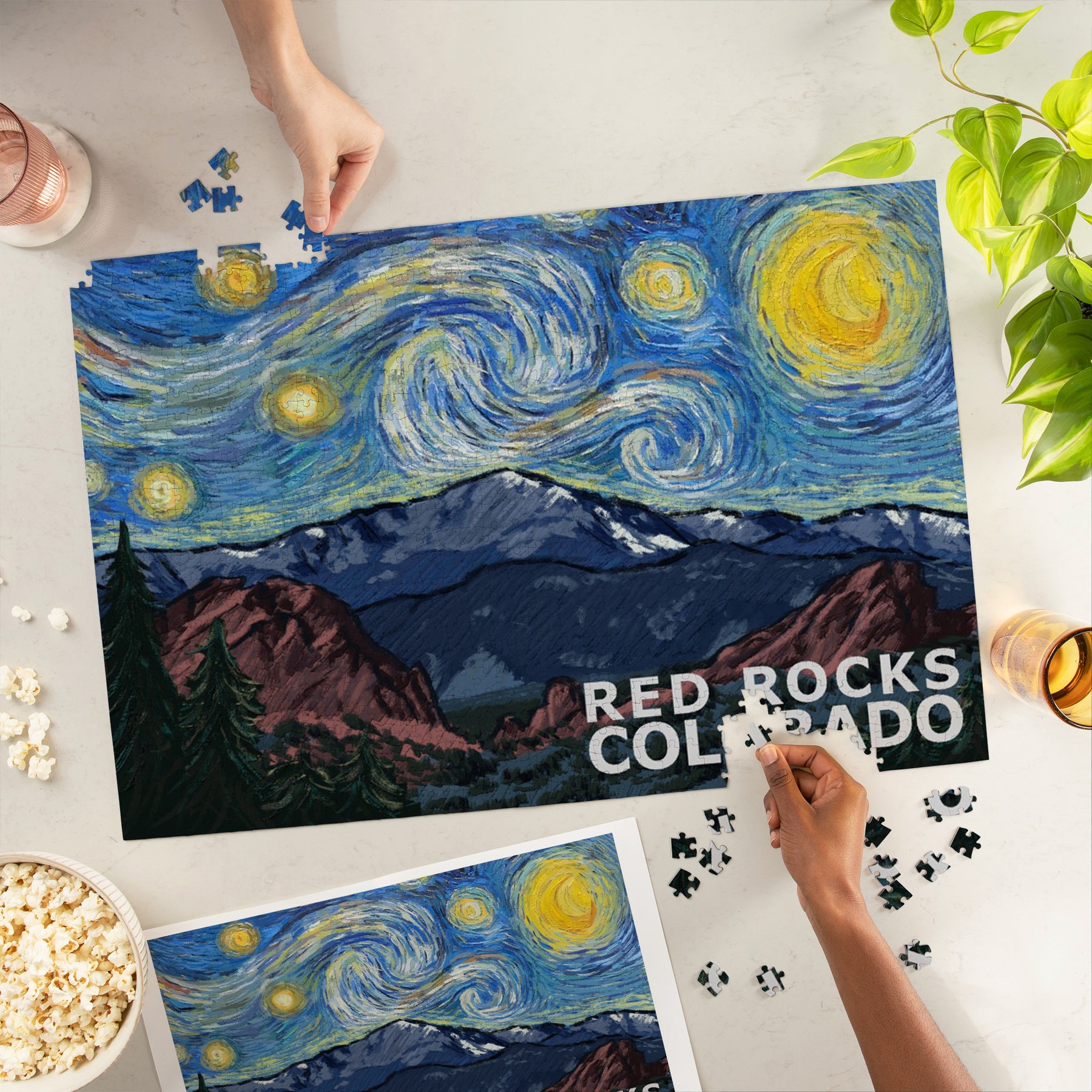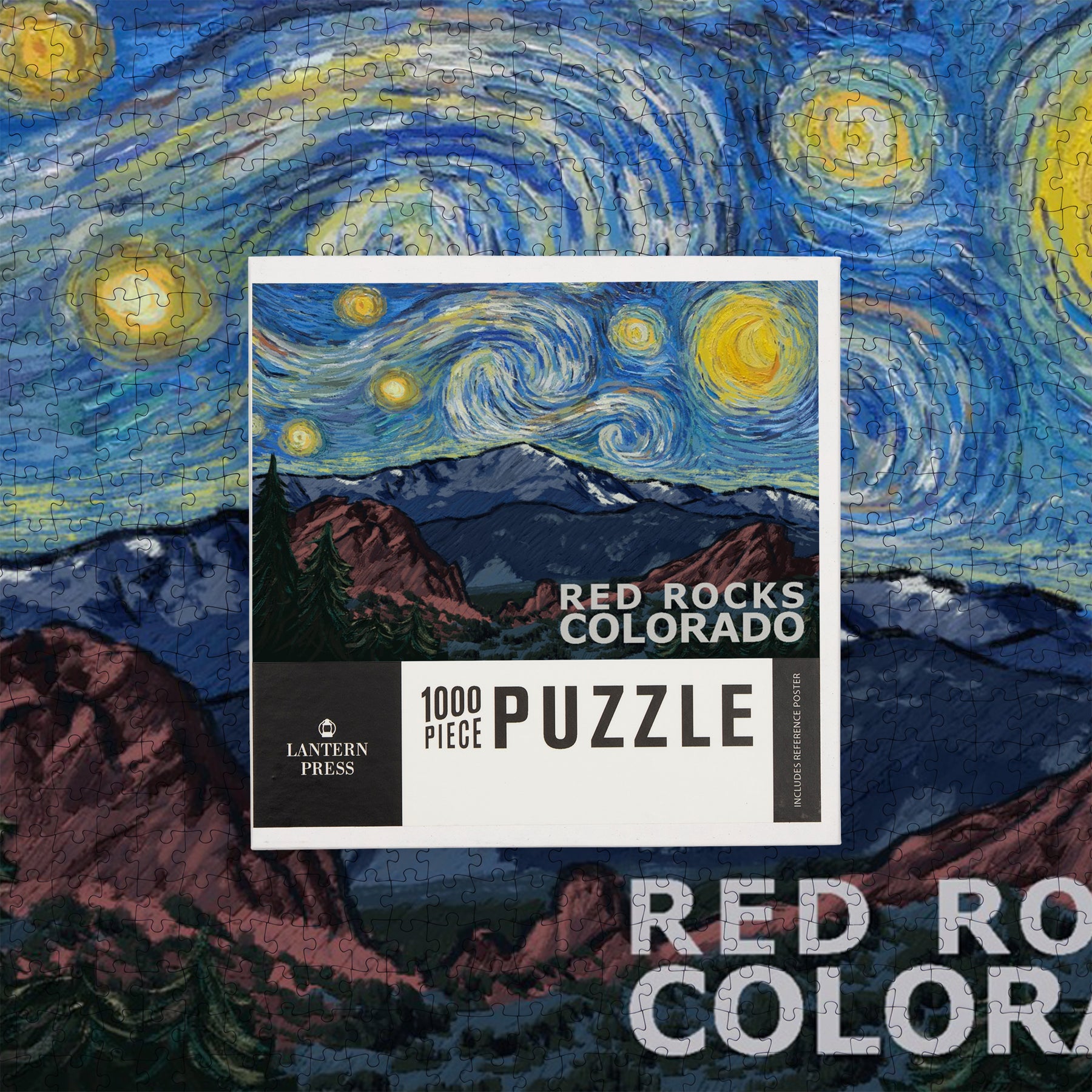 Red Rocks, Colorado, Starry Night, Pikes Peak, Jigsaw Puzzle Puzzle Lantern Press