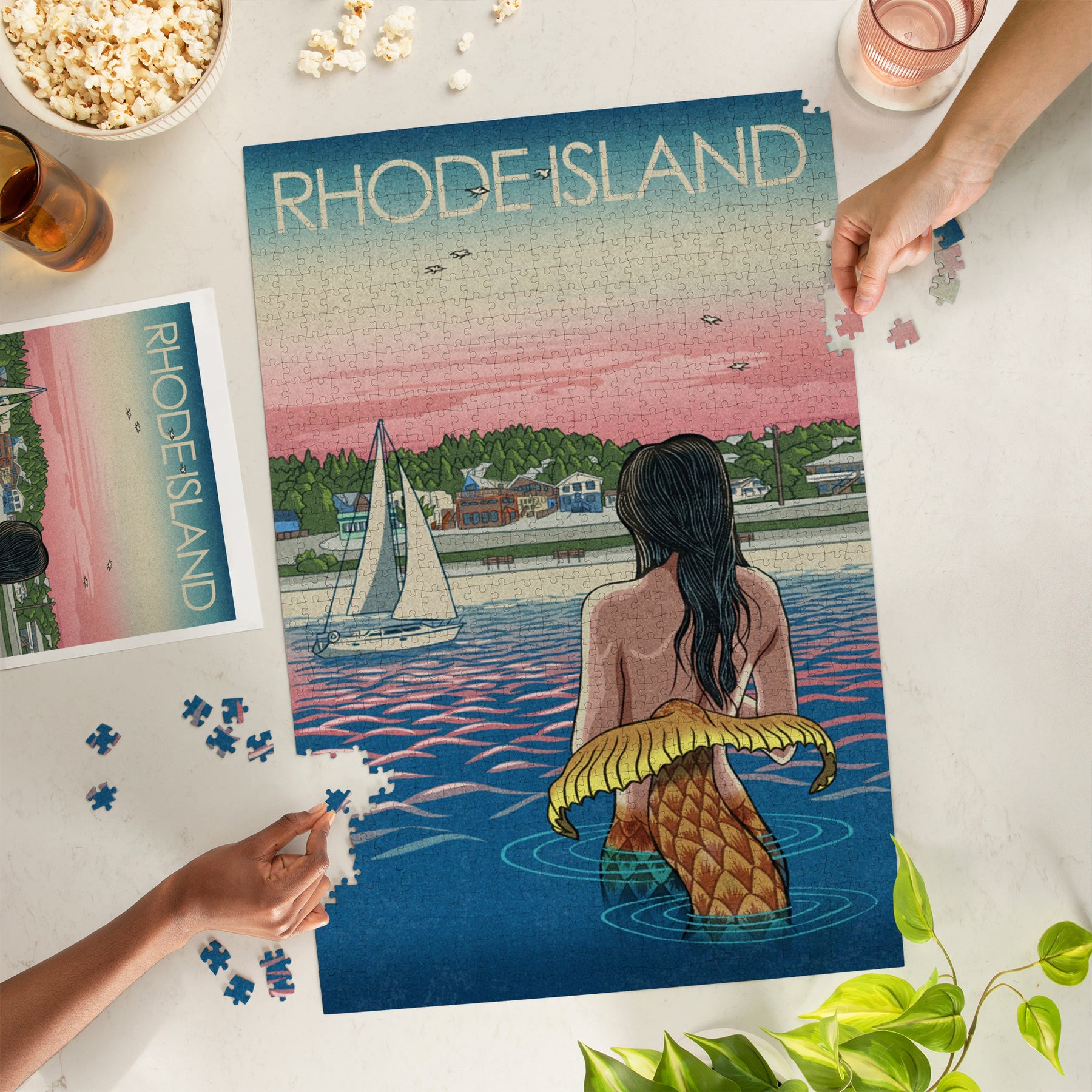 Rhode Island, Mermaid and Beach, Jigsaw Puzzle Puzzle Lantern Press