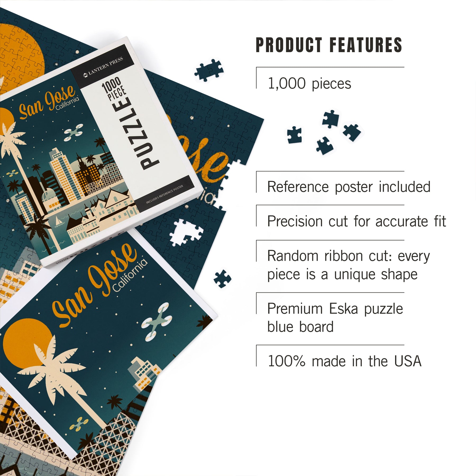 San Jose, California, Retro Skyline Series, Jigsaw Puzzle Puzzle Lantern Press