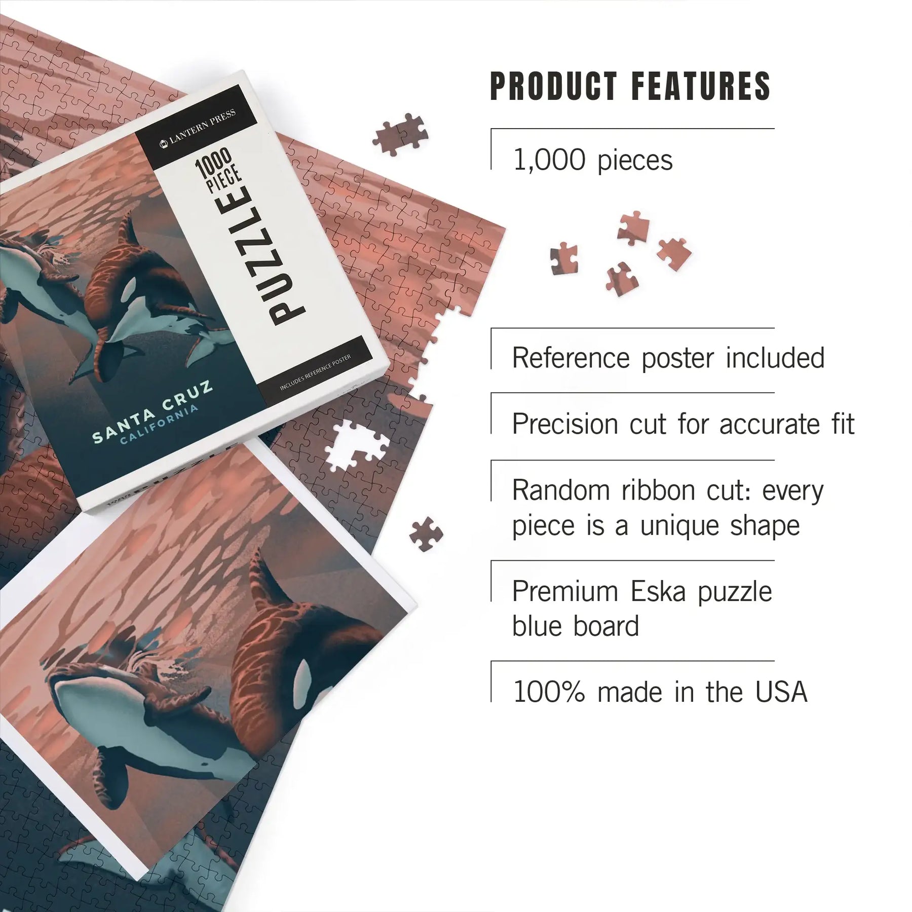 Santa Cruz, California, Orca, Lithograph, Jigsaw Puzzle