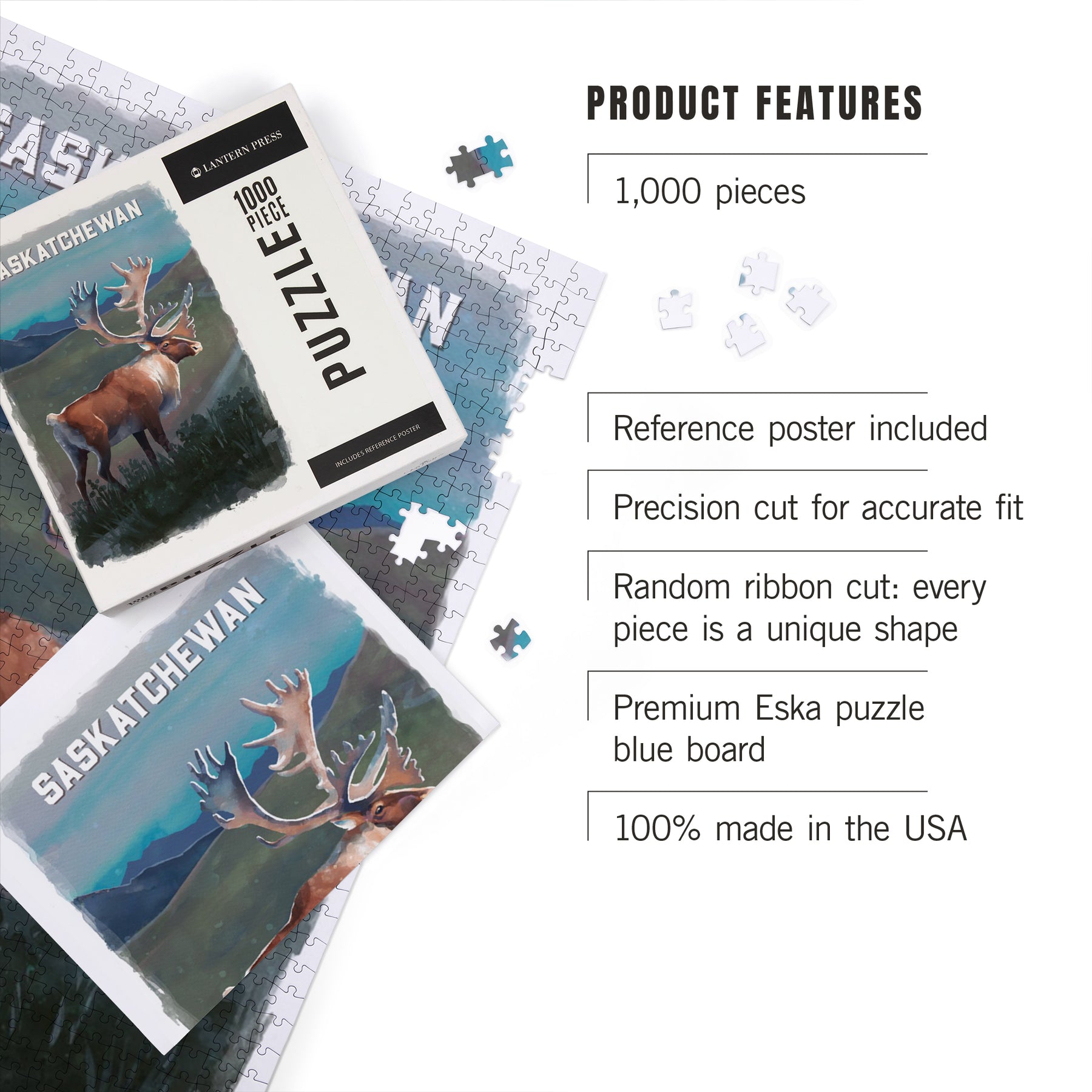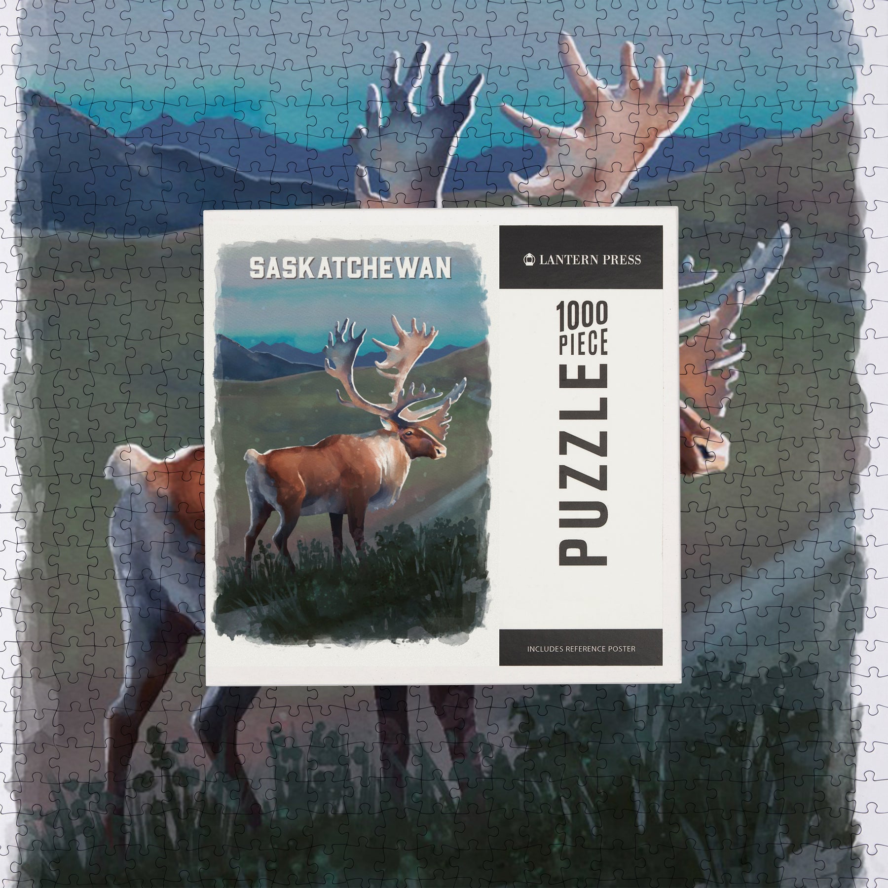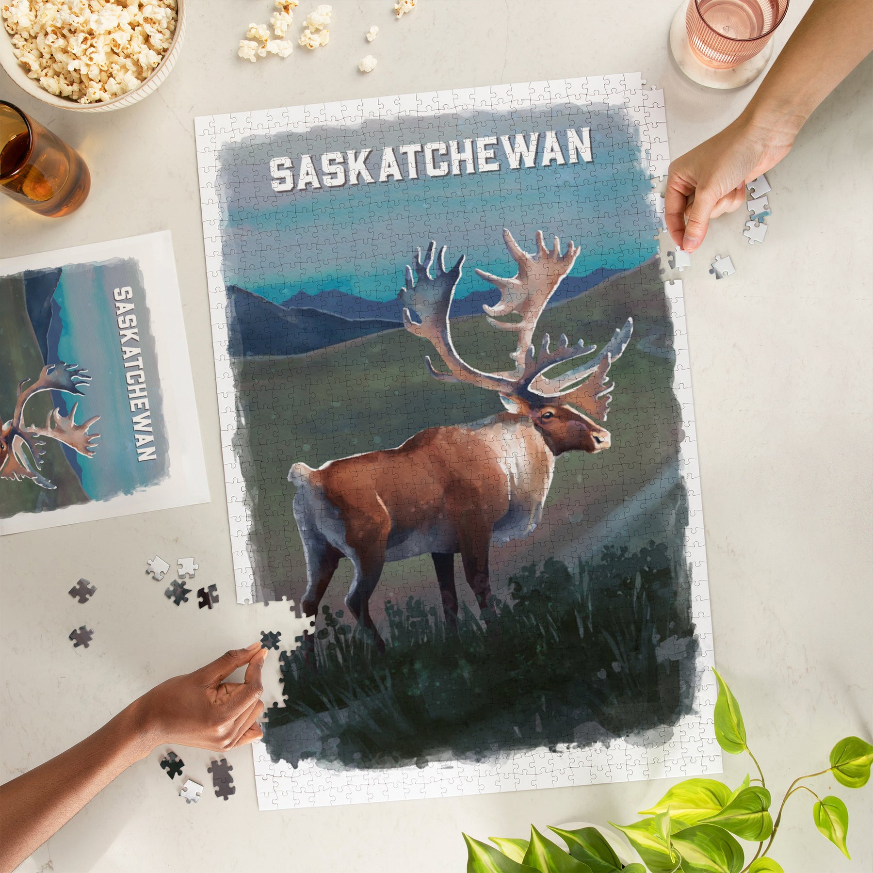 Saskatchewan, Watercolor Study, Caribou, Jigsaw Puzzle Puzzle Lantern Press