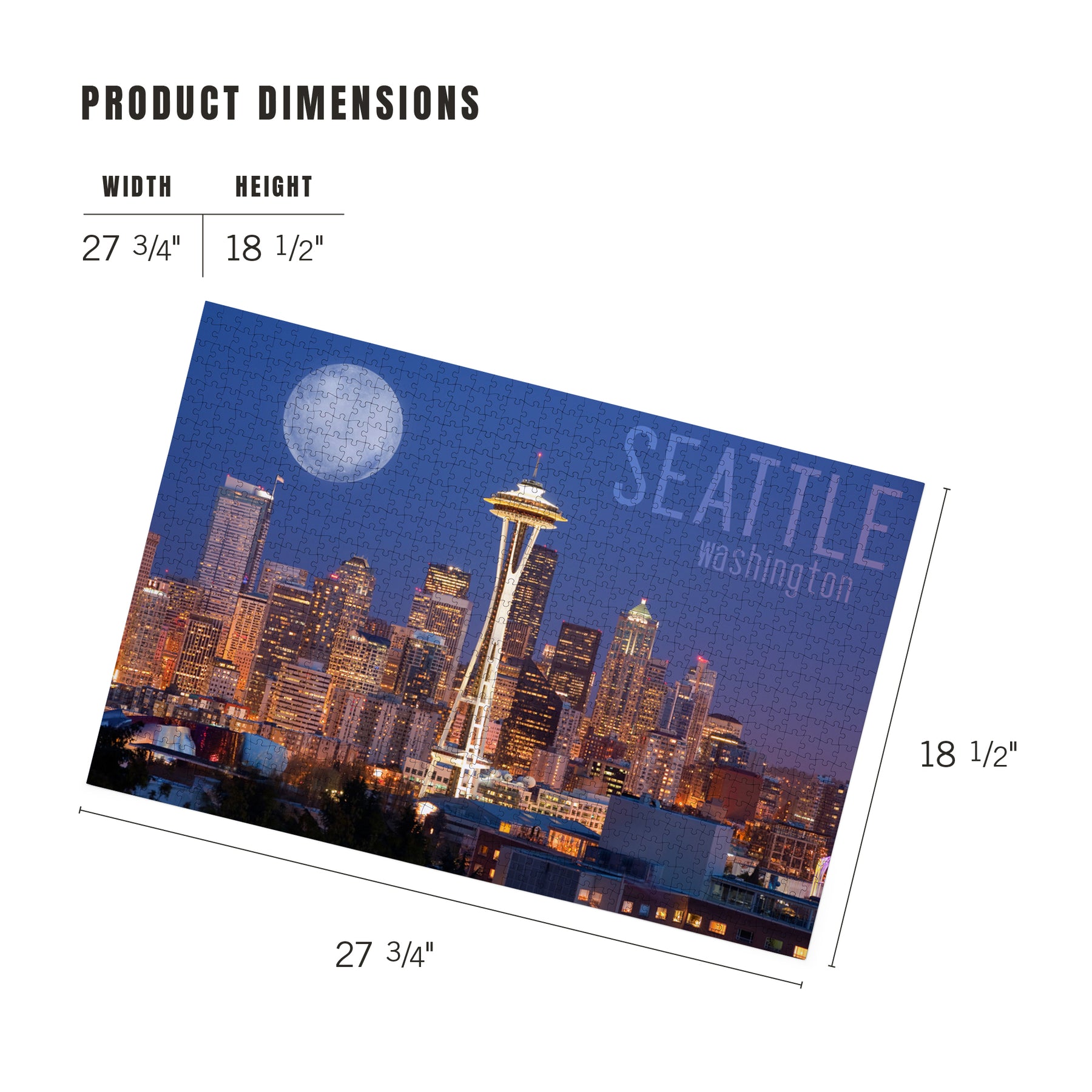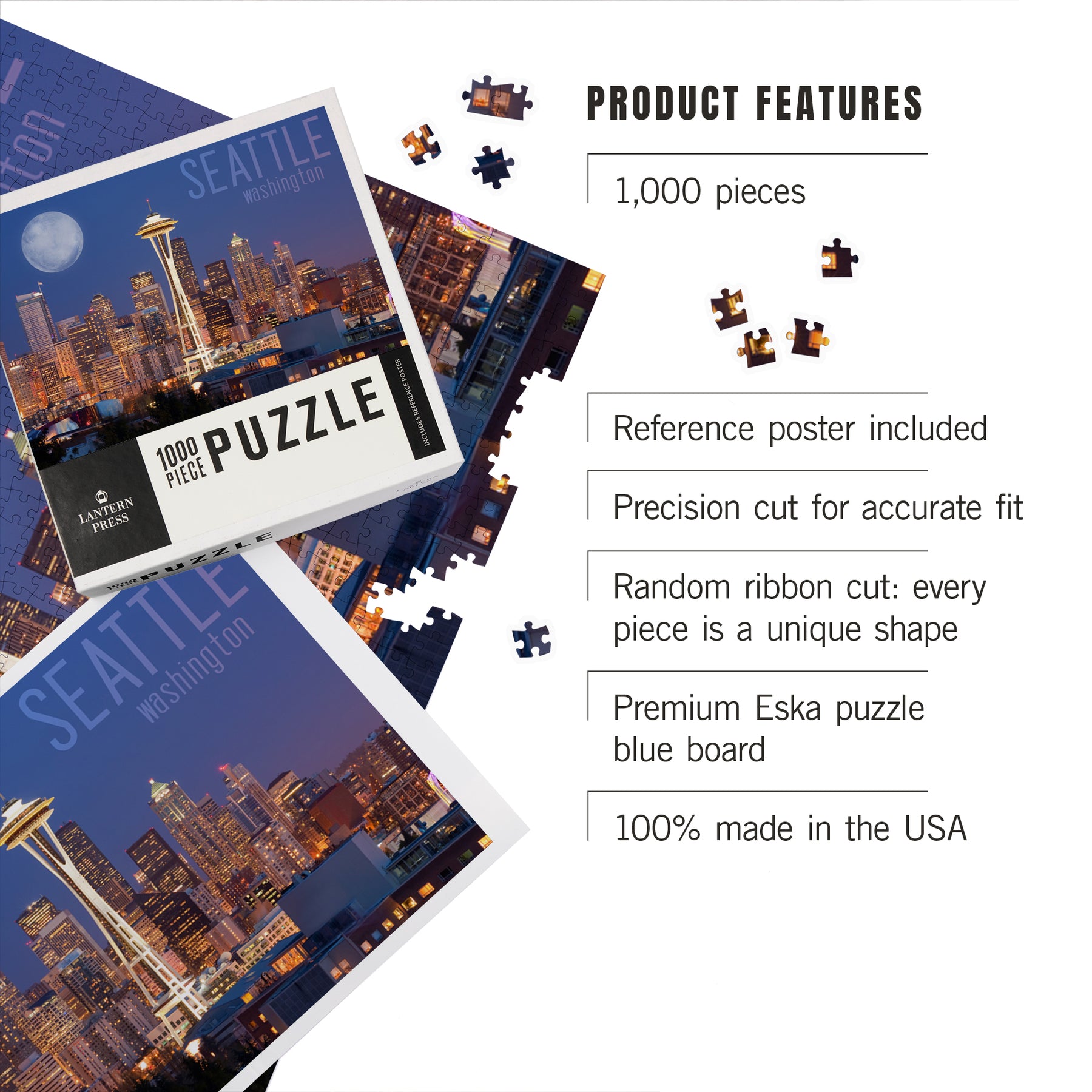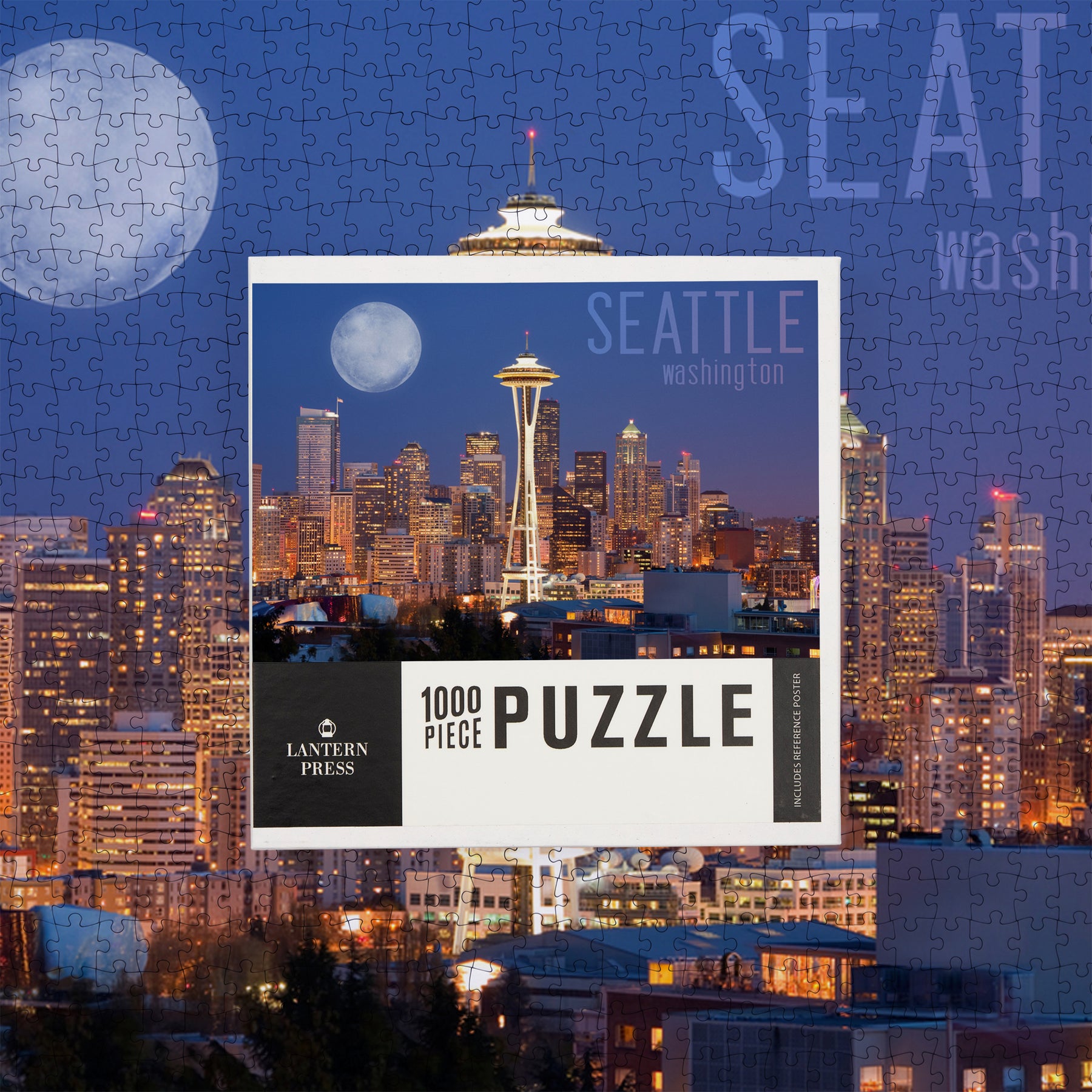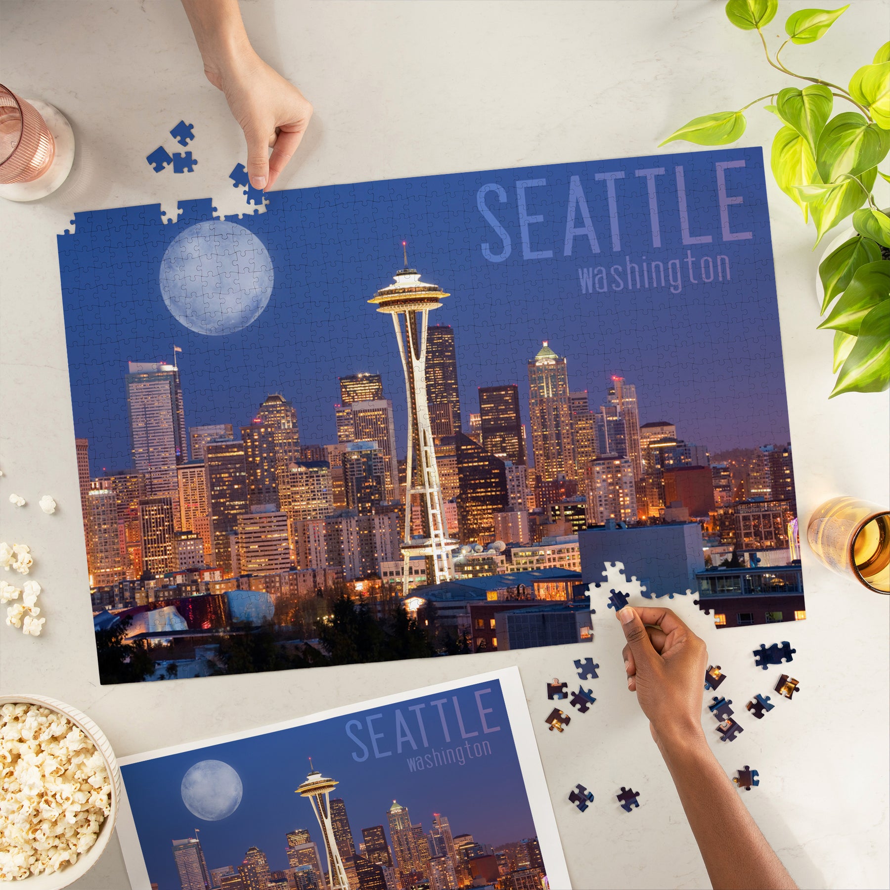 Seattle, Washington, Skyline and Full Moon, Jigsaw Puzzle Puzzle Lantern Press