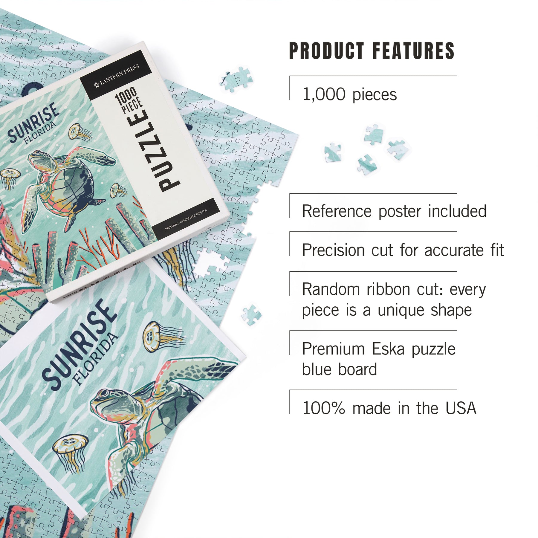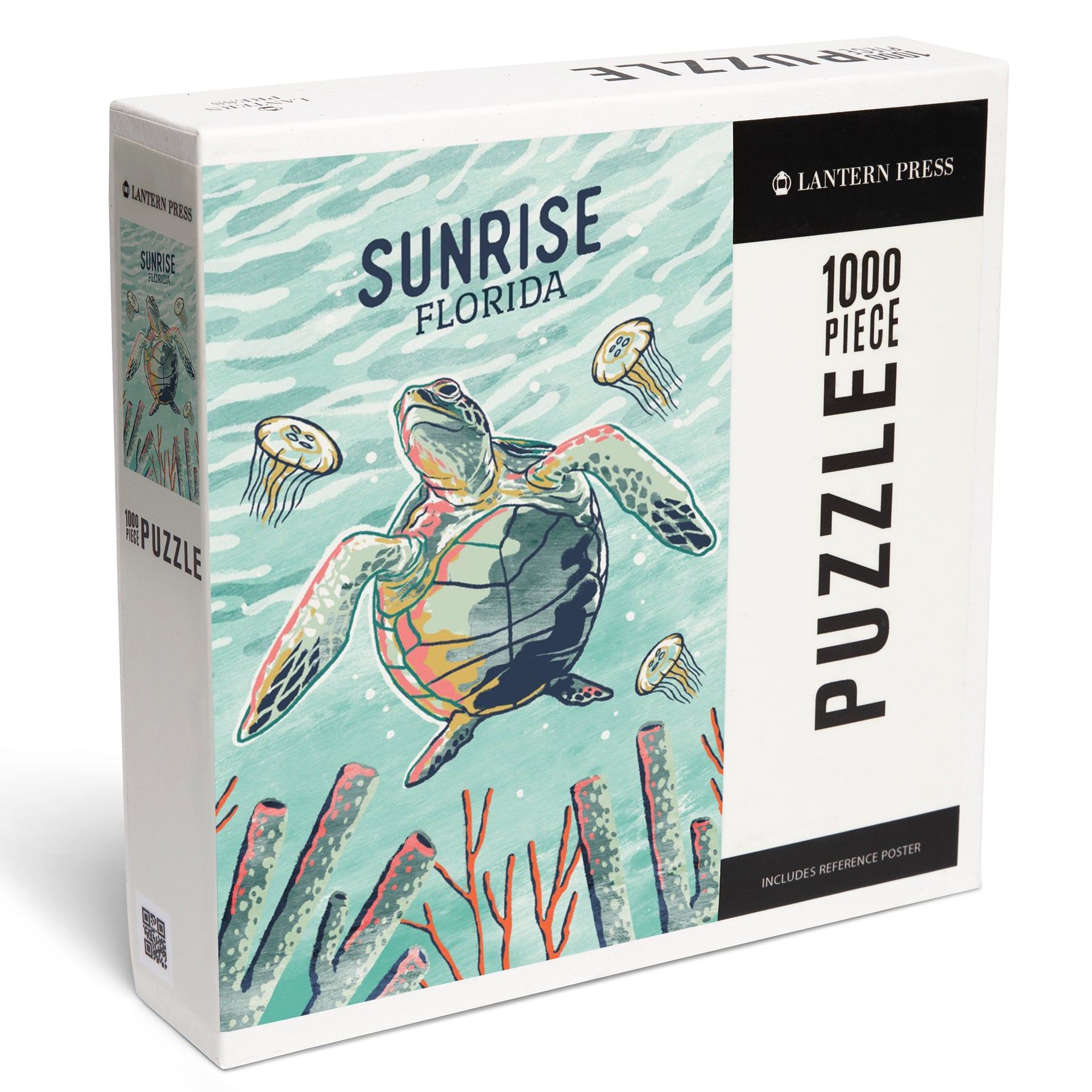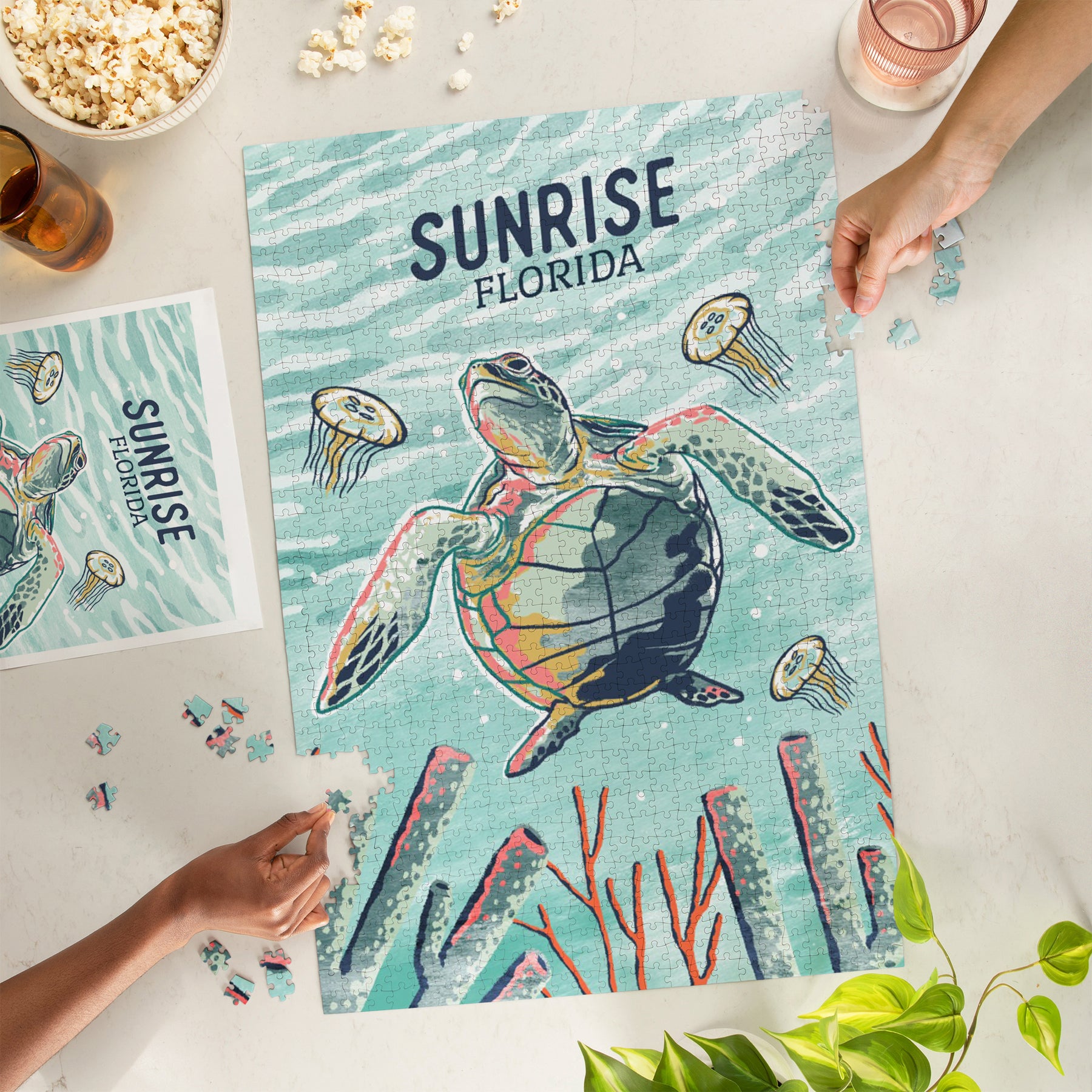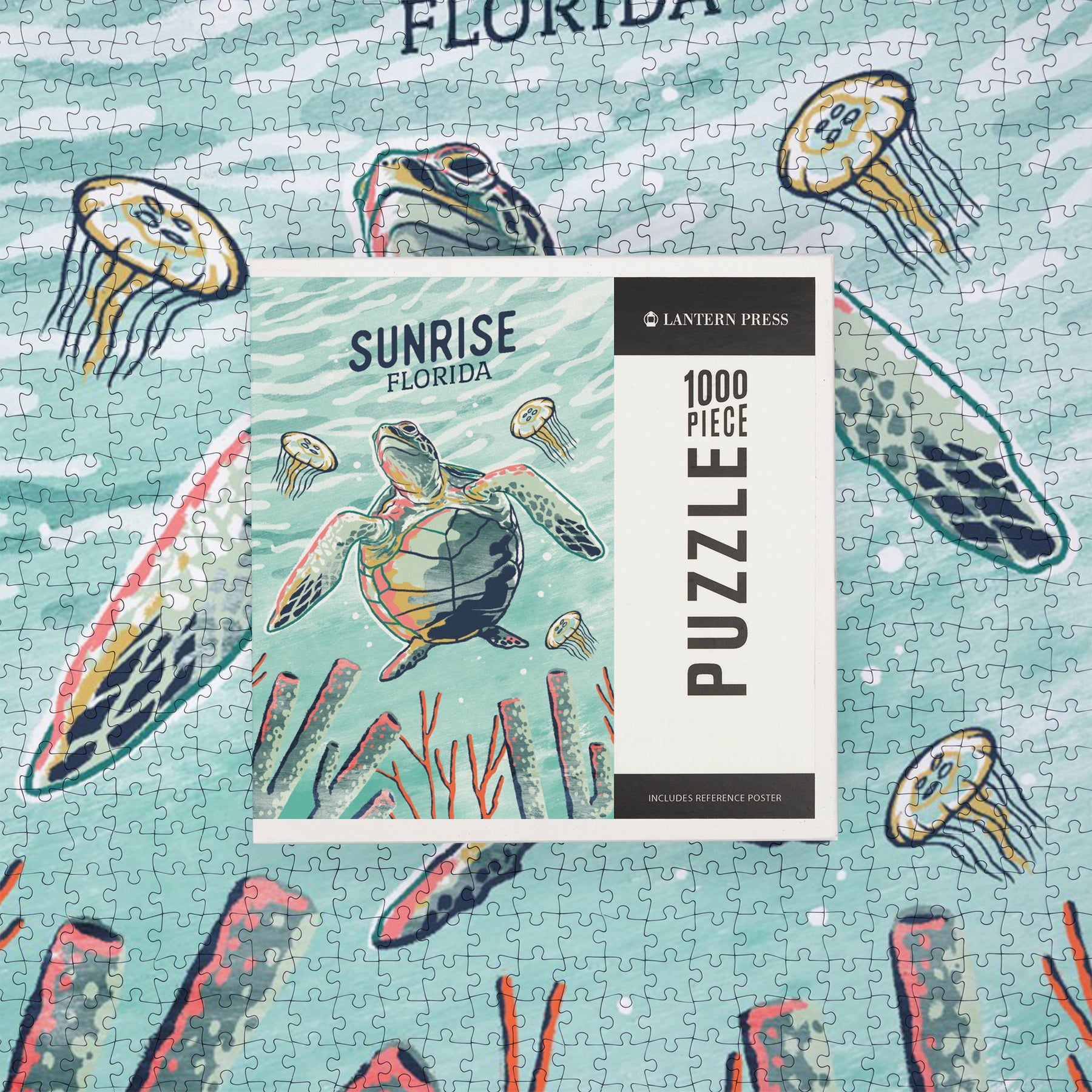 Sunrise, Florida, Graphic Pastel, Sea Turtle, Jigsaw Puzzle Puzzle Lantern Press