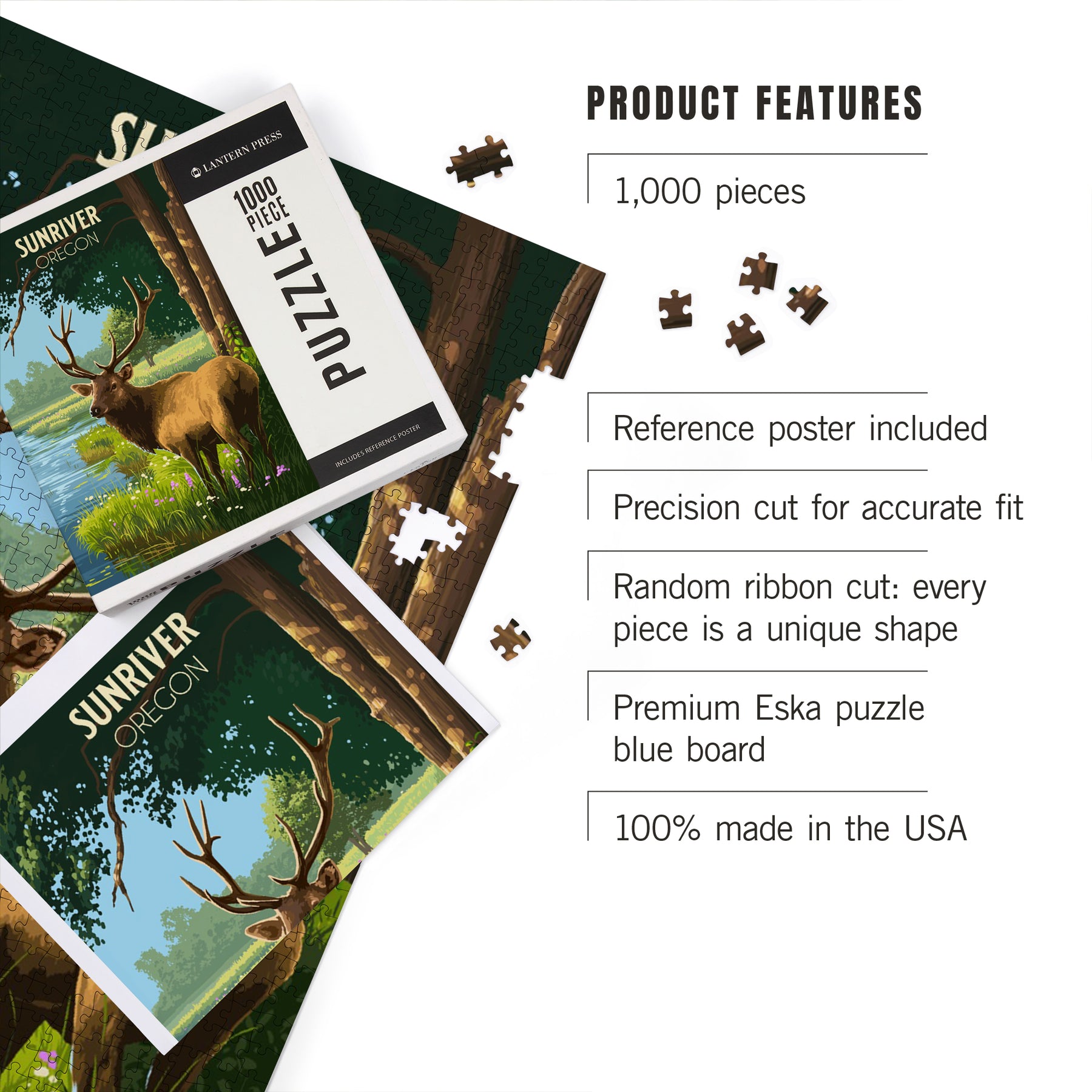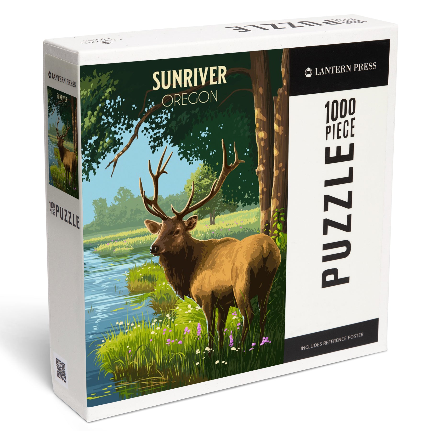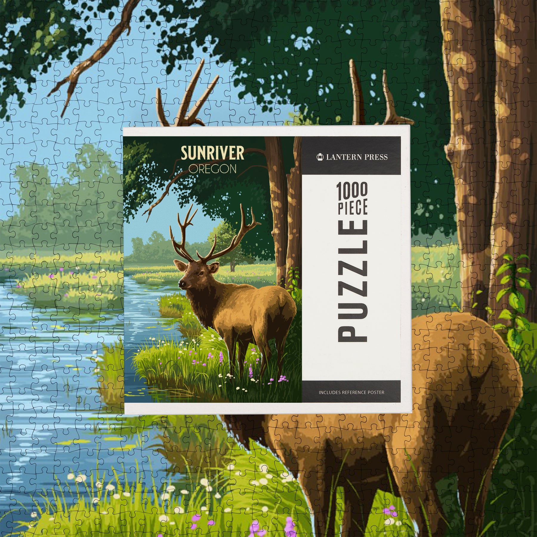 Sunriver, Oregon, Painterly, Roosevelt Elk, Jigsaw Puzzle Puzzle Lantern Press