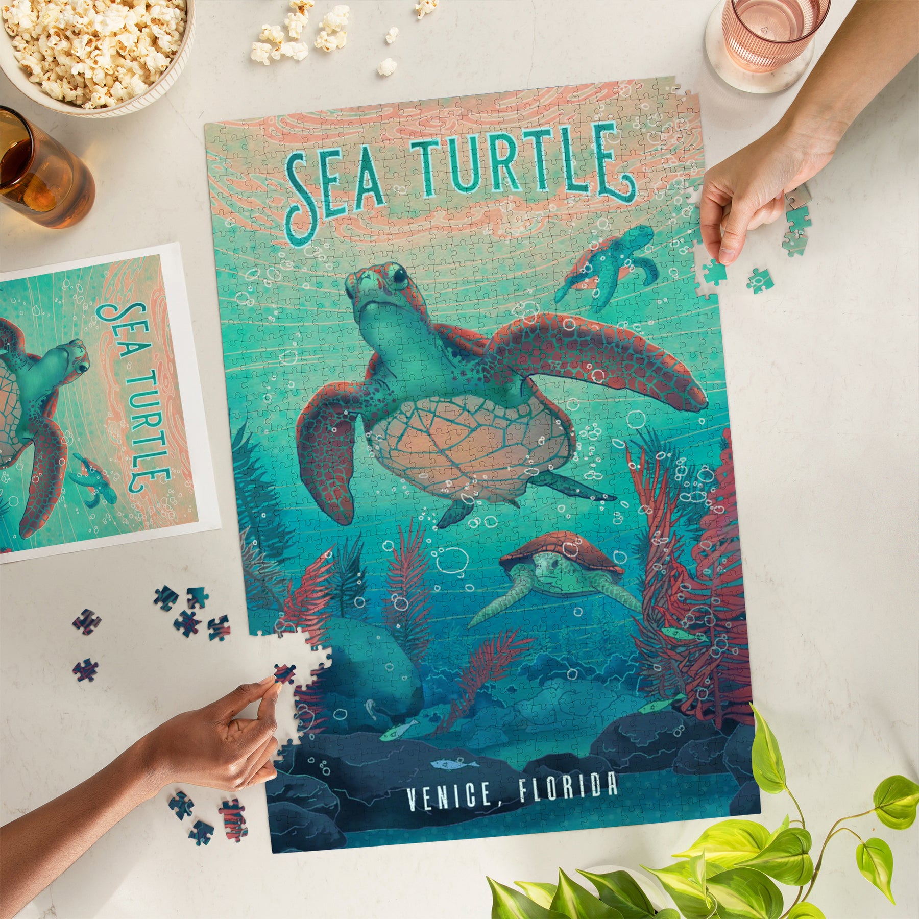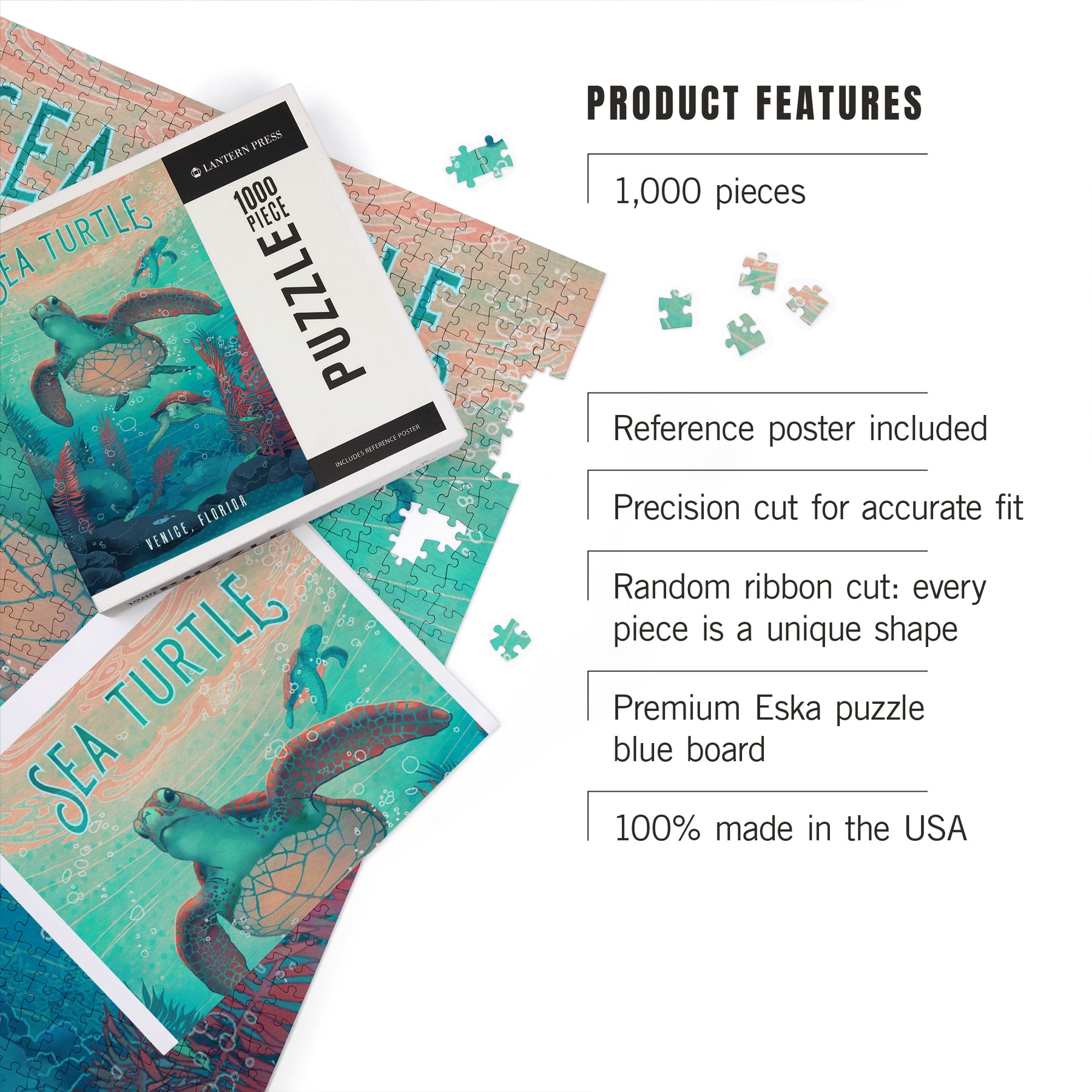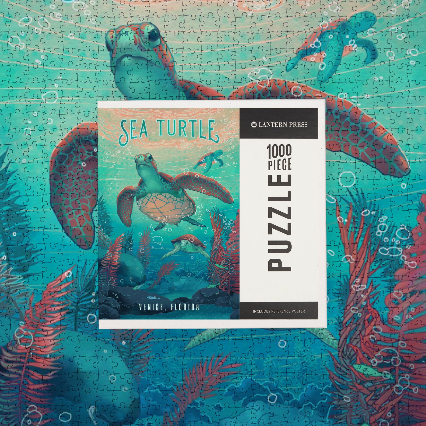 Venice, Florida, Fluid Linework, Sea Turtle, Jigsaw Puzzle
