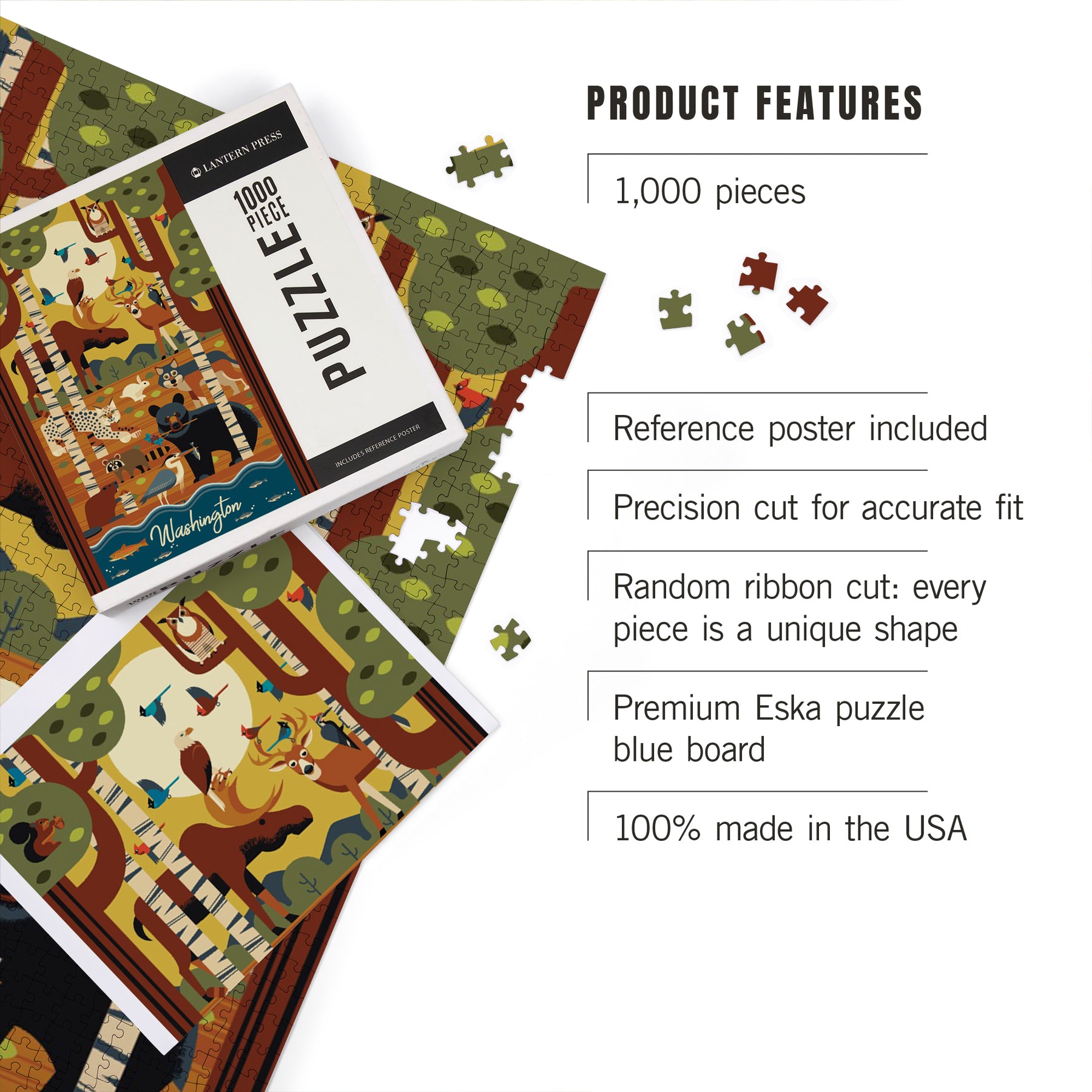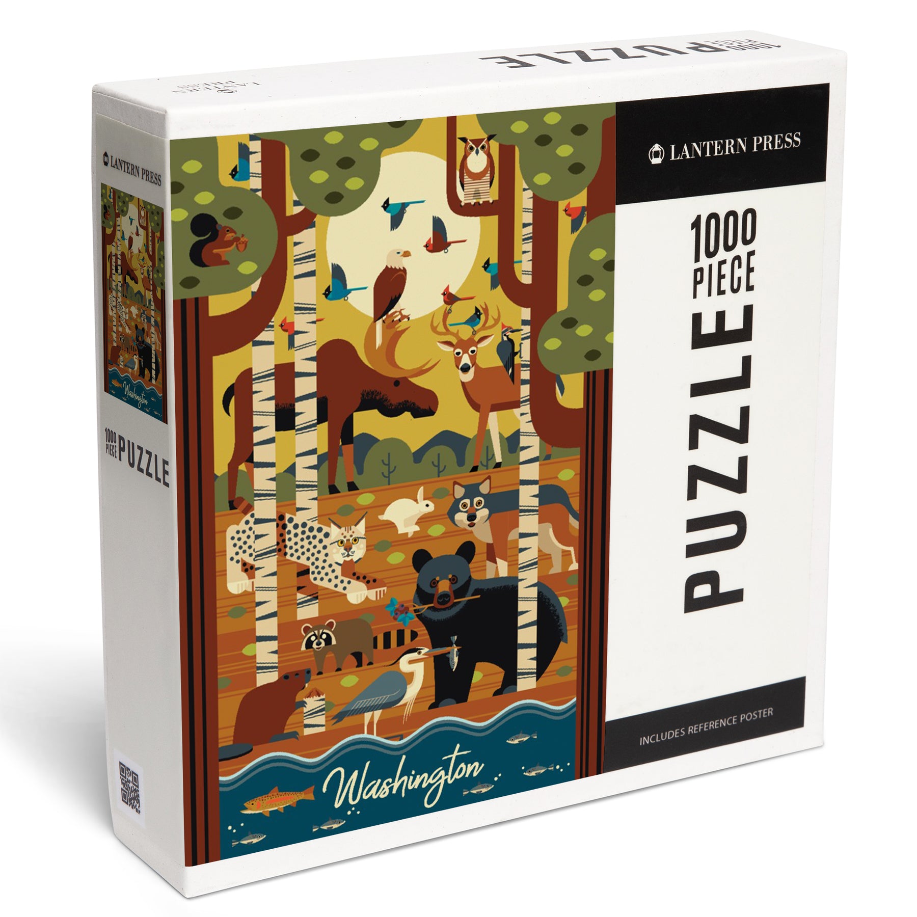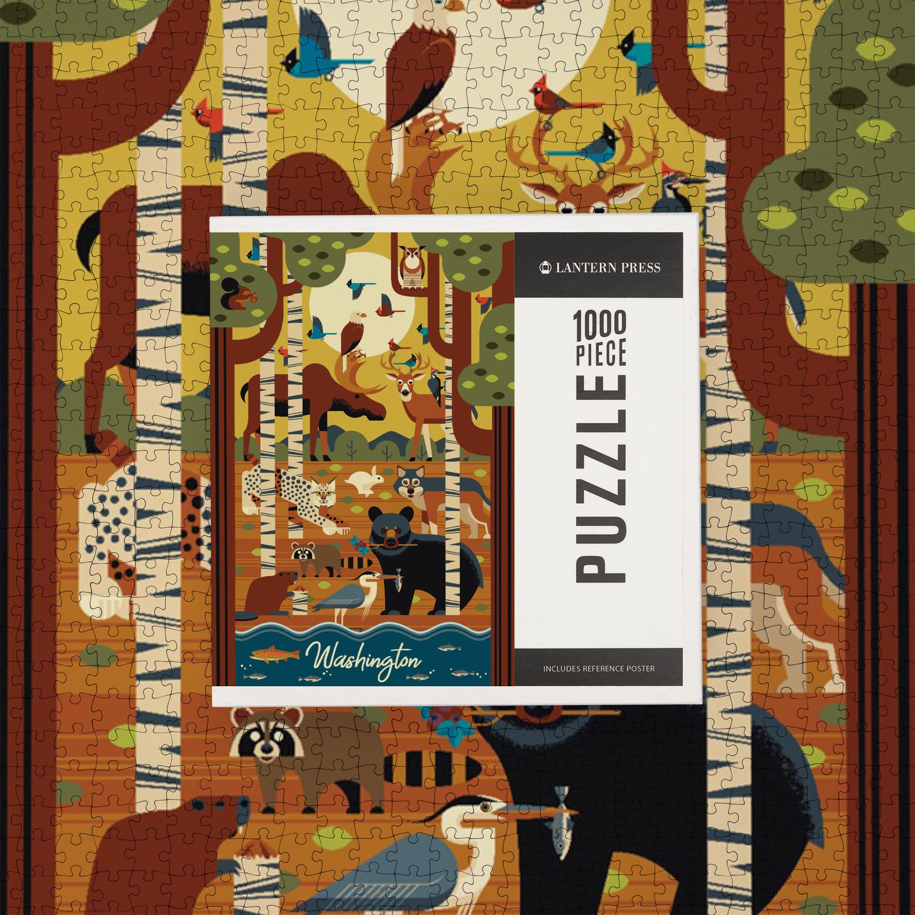Washington, Geometric, Forest Animals, Jigsaw Puzzle Puzzle Lantern Press