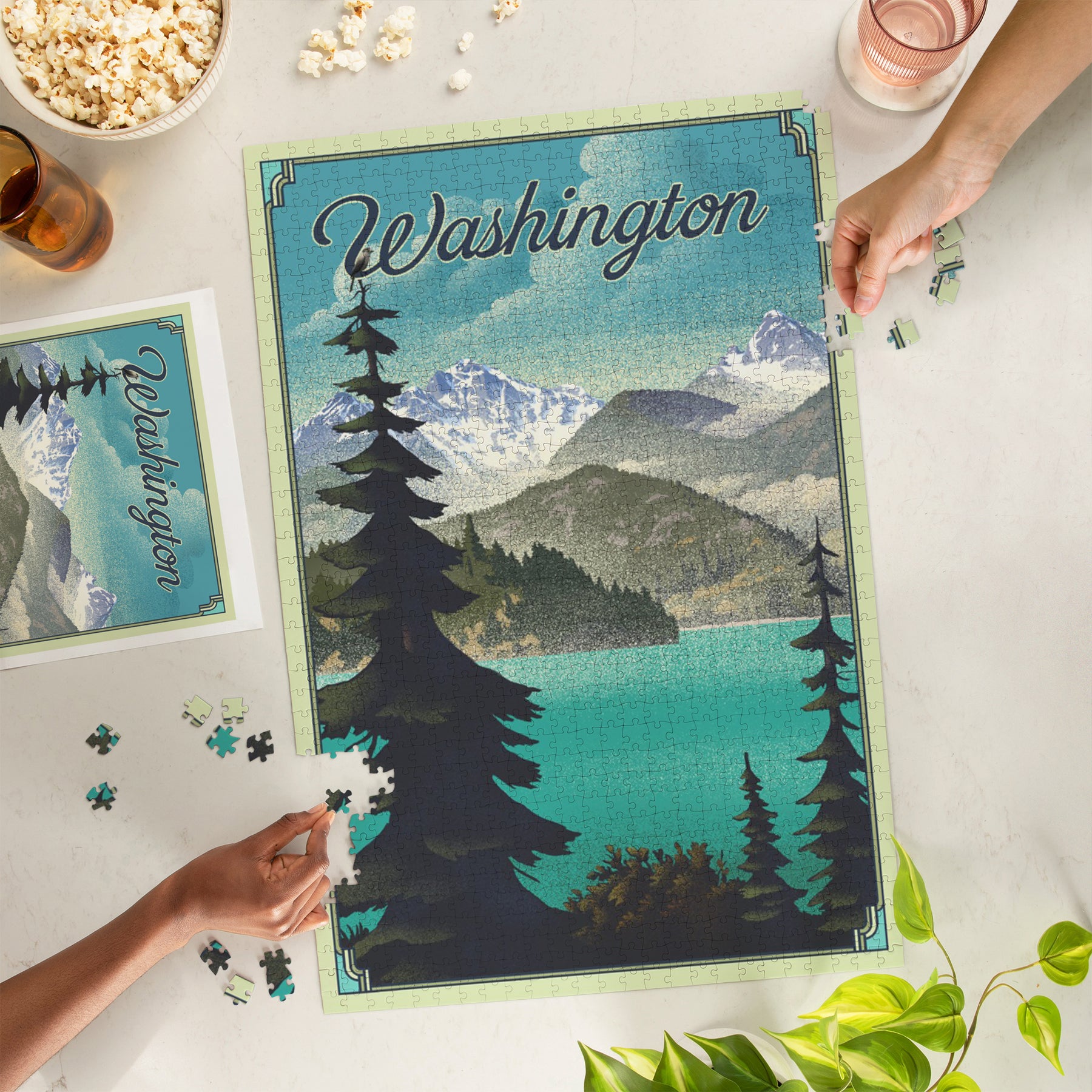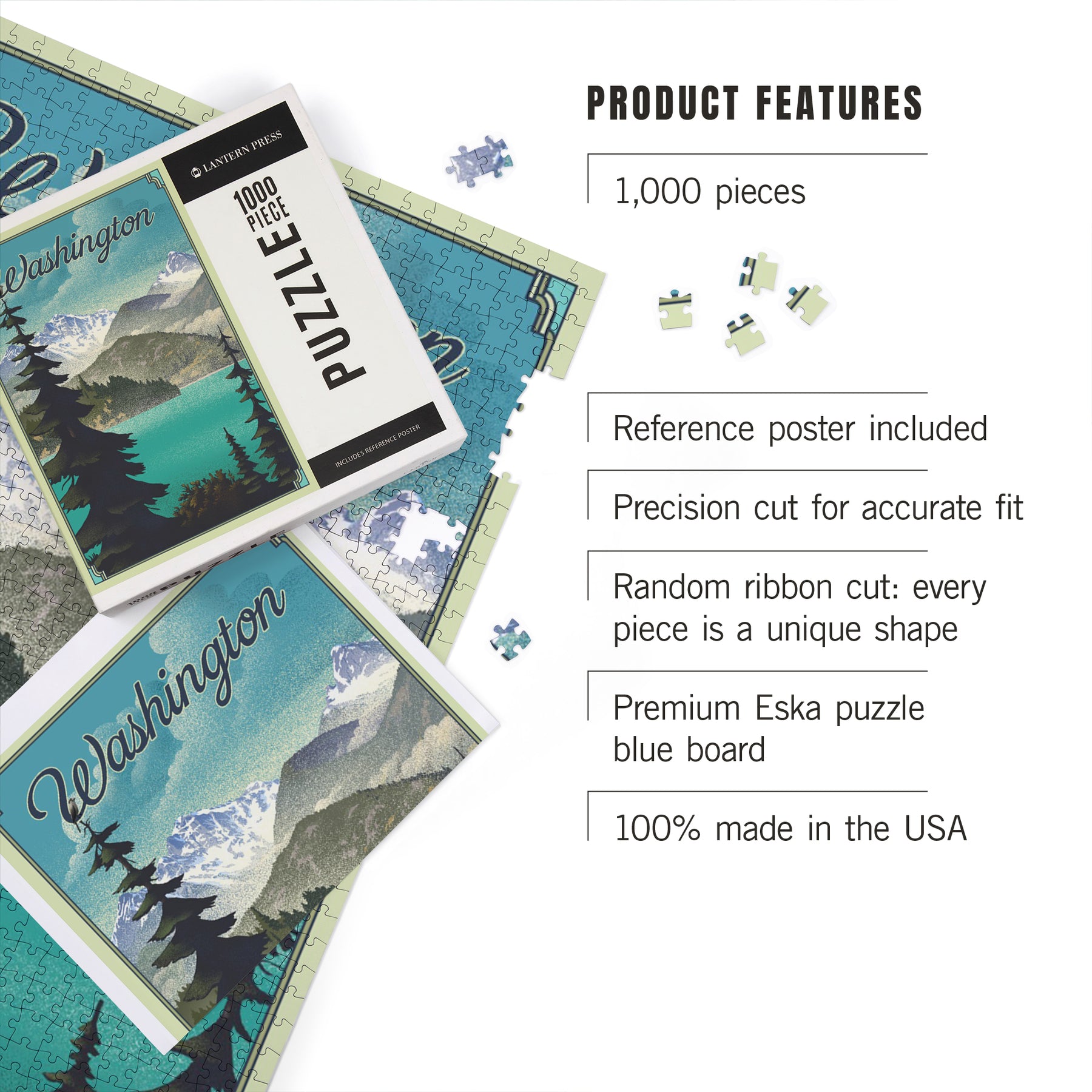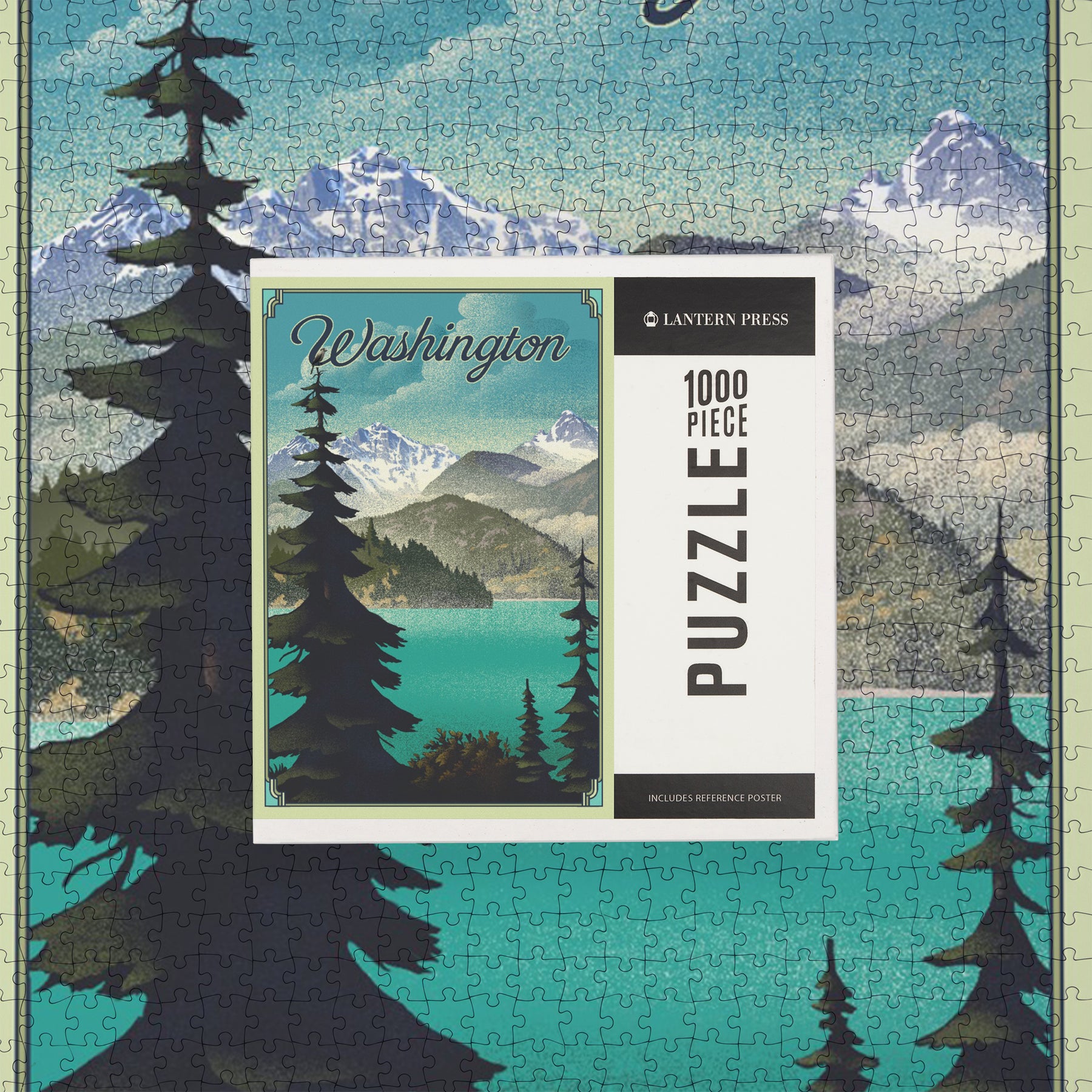 Washington Lake and Mountains, Lithograph, Jigsaw Puzzle Puzzle Lantern Press
