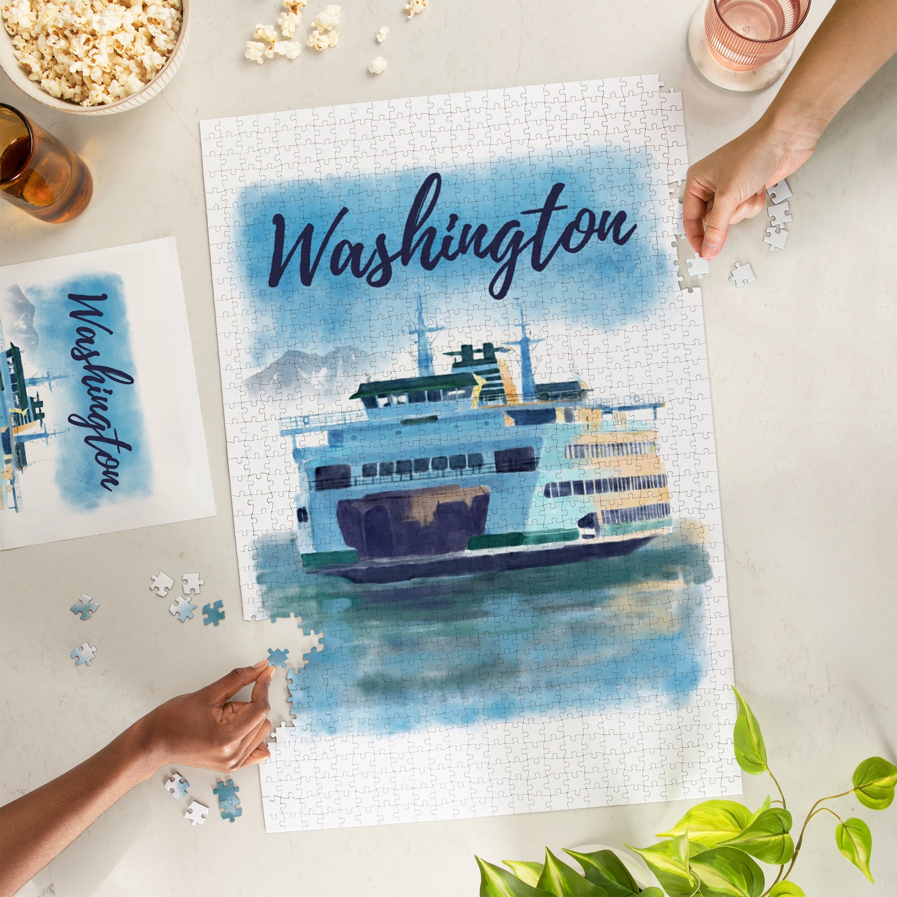 Washington, Watercolor, Ferry, Jigsaw Puzzle Puzzle Lantern Press