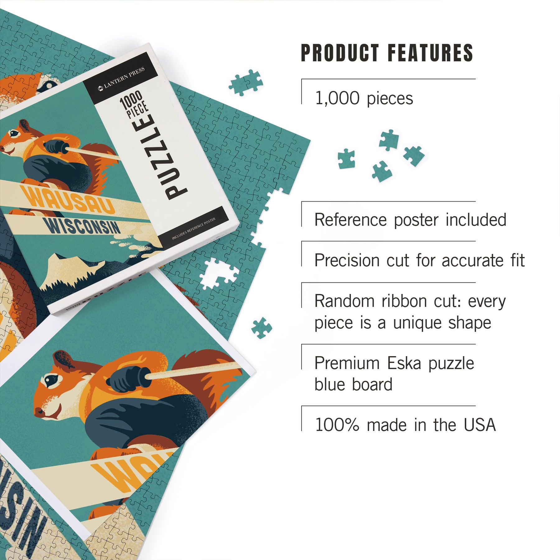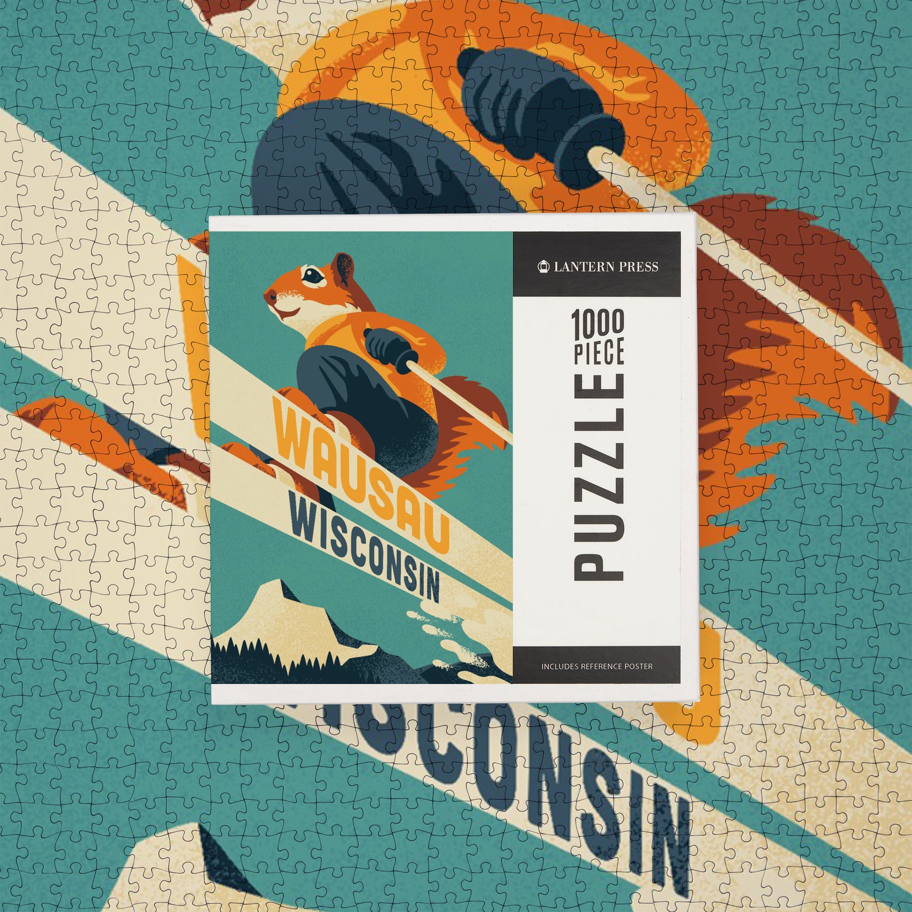 Wassau, Wisconsin, Ski Squirrel, Jigsaw Puzzle Puzzle Lantern Press