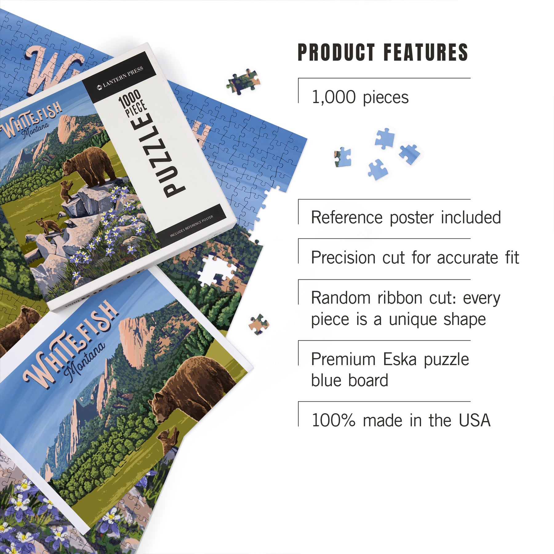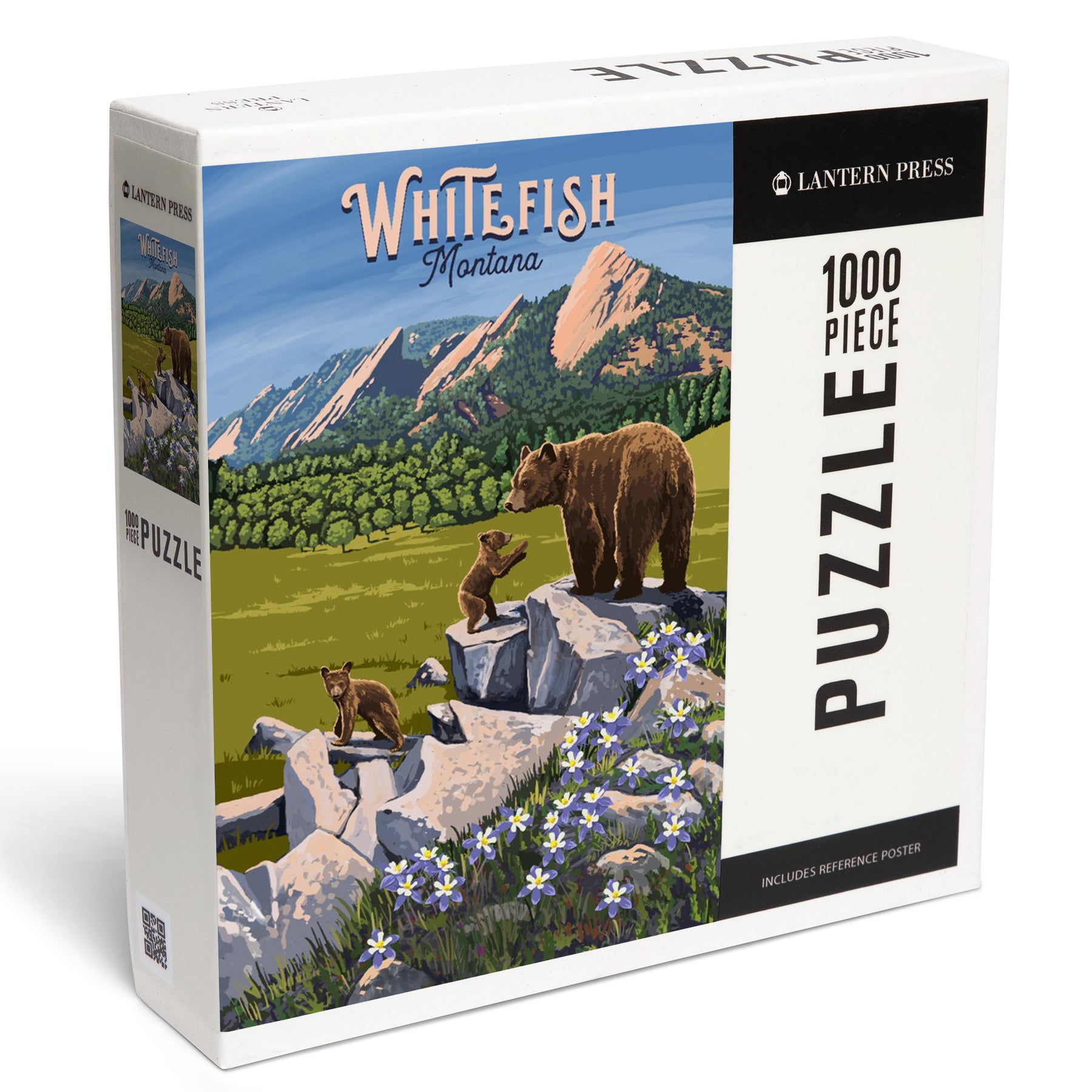 Whitefish, Montana, Painterly, Bear and Cubs, Jigsaw Puzzle Puzzle Lantern Press