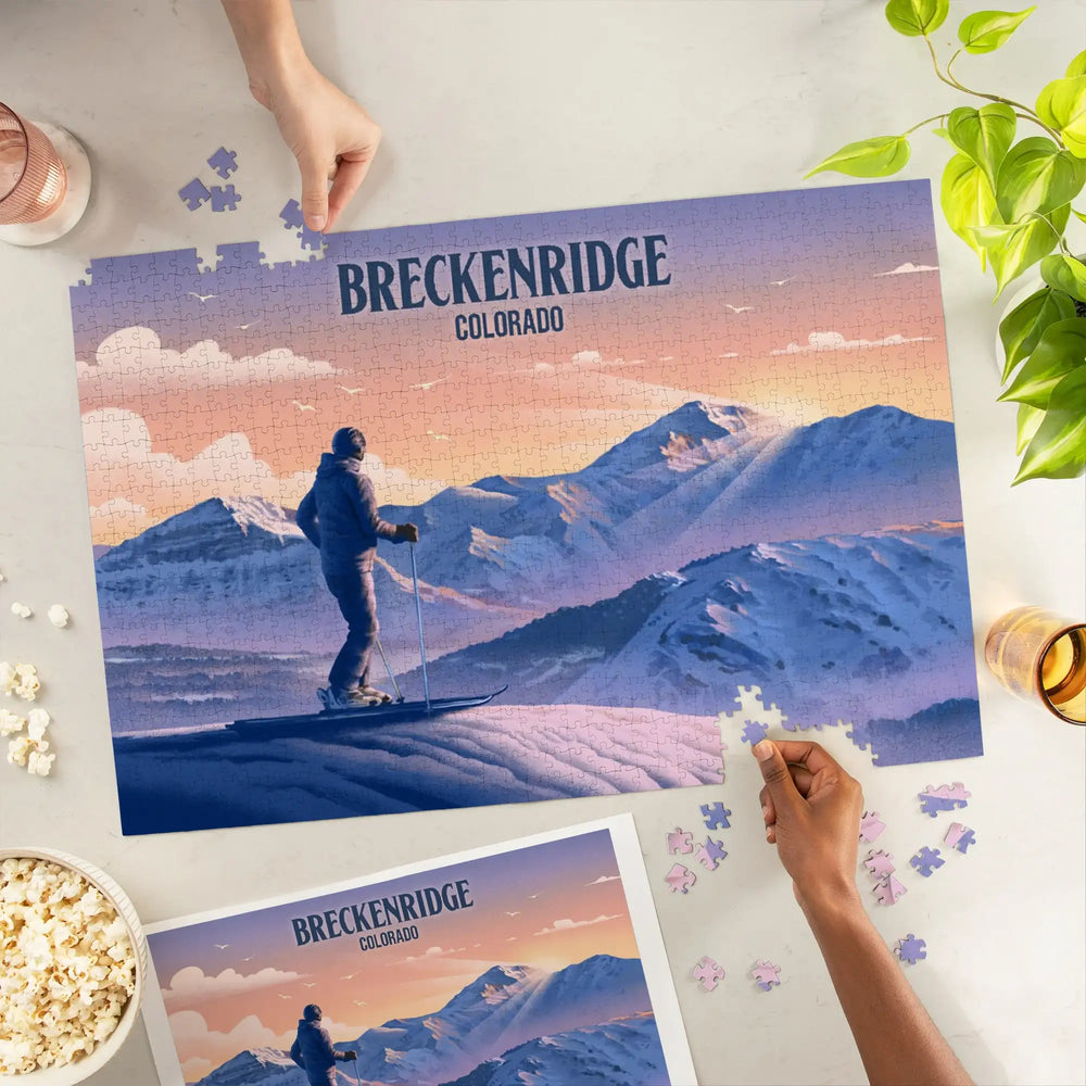 Breckenridge, Colorado, Skier at the Top, Lithograph, Jigsaw Puzzle