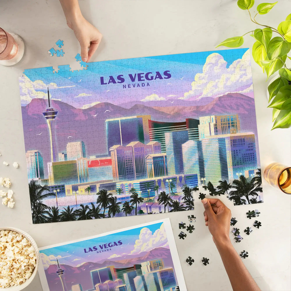 Las Vegas, Nevada, Lithograph, City Series, Jigsaw Puzzle