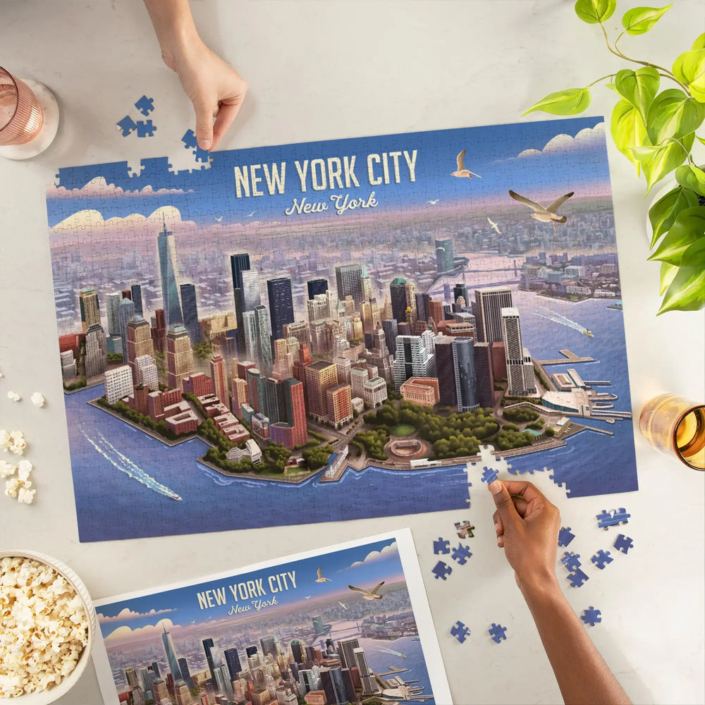 New York City, New York, Lithograph, Lower Manhattan, Jigsaw Puzzle