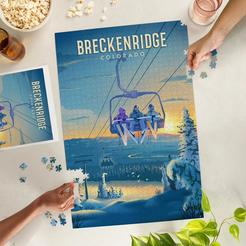 Breckenridge, Colorado, Chairlift, Lithograph, Jigsaw Puzzle