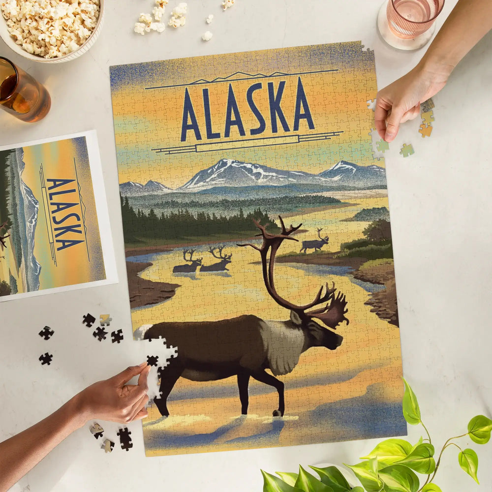 Alaska, Lithograph, Caribou, Jigsaw Puzzle