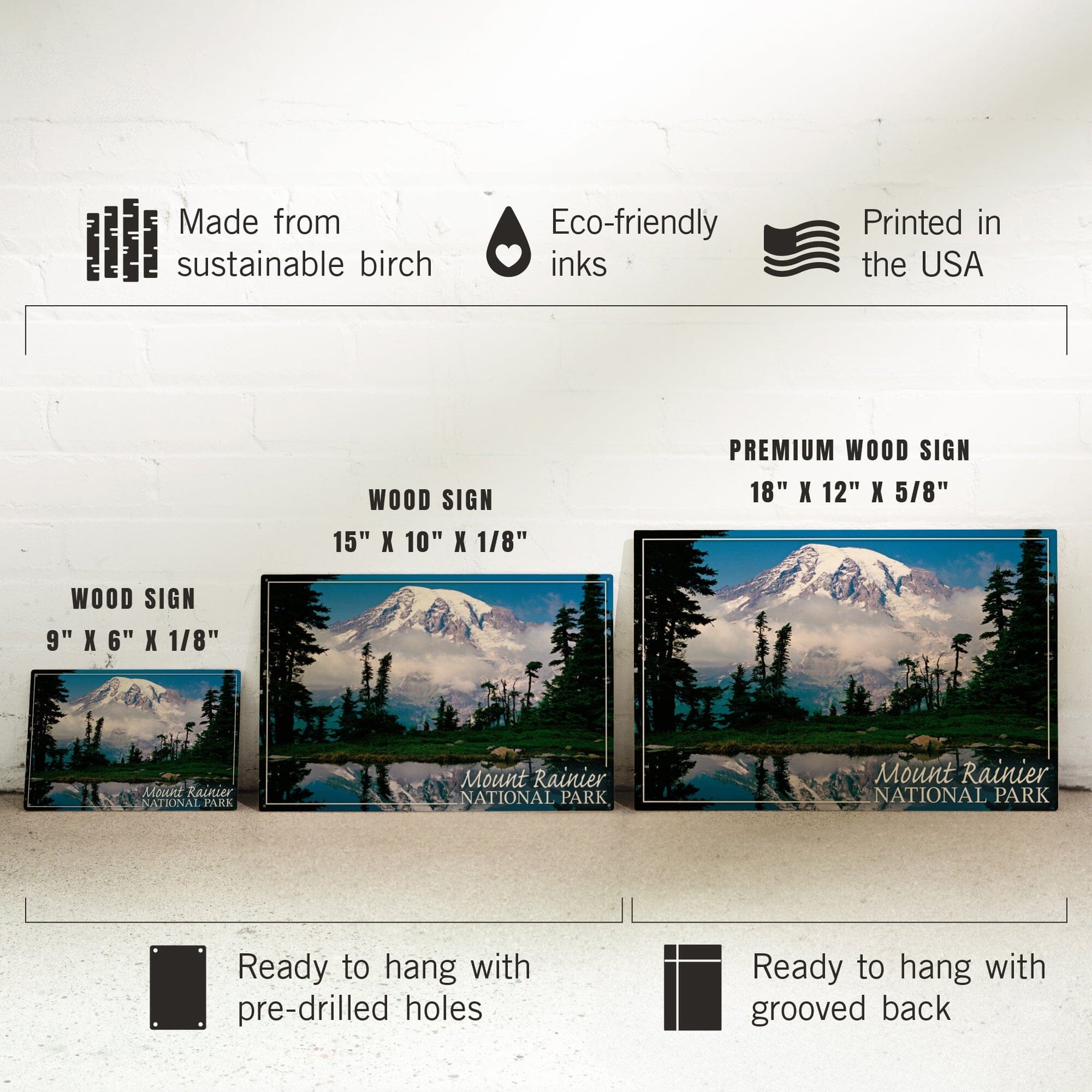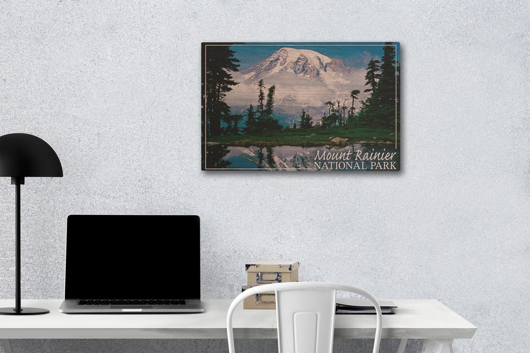 Mount Rainier National Park, Reflection Lake, Lantern Press Photography, Wood Signs and Postcards Wood Lantern Press