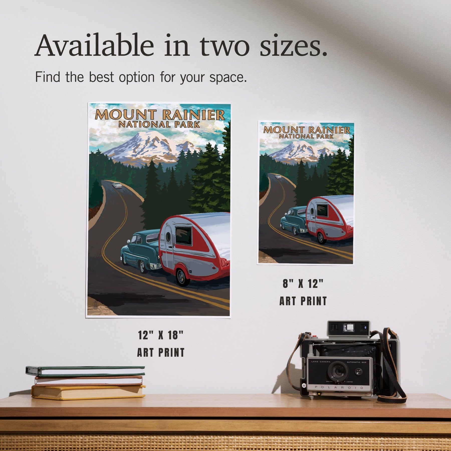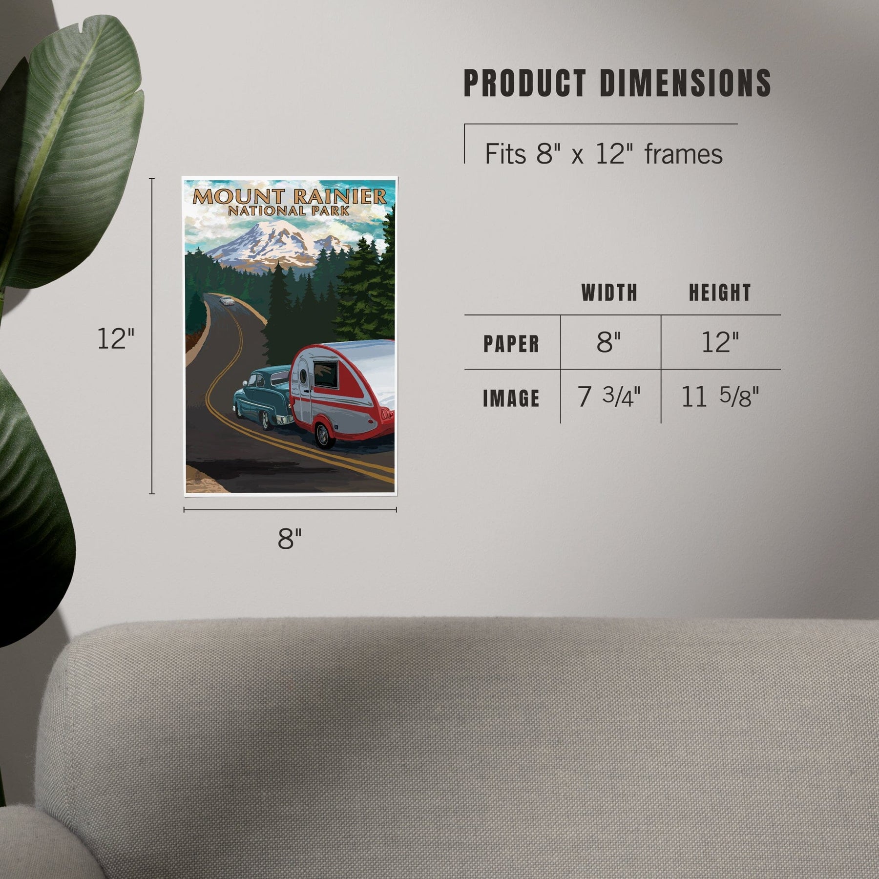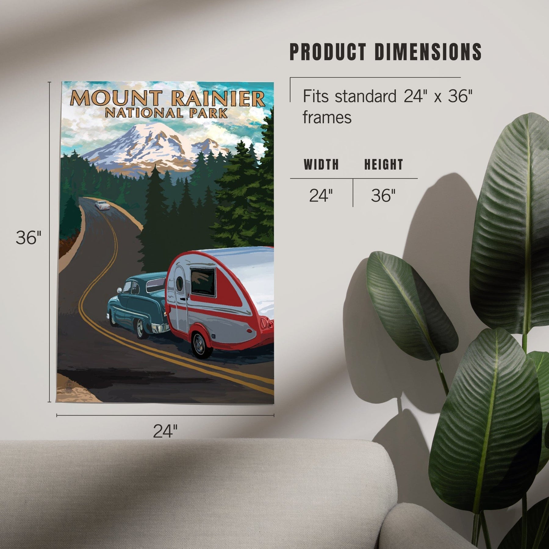 Mount Rainier National Park, Washington, Retro Camper on Road, Art & Giclee Prints Art Lantern Press