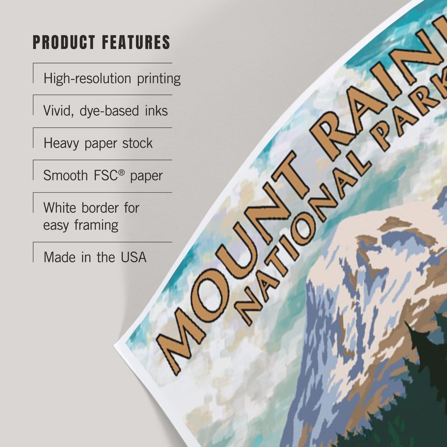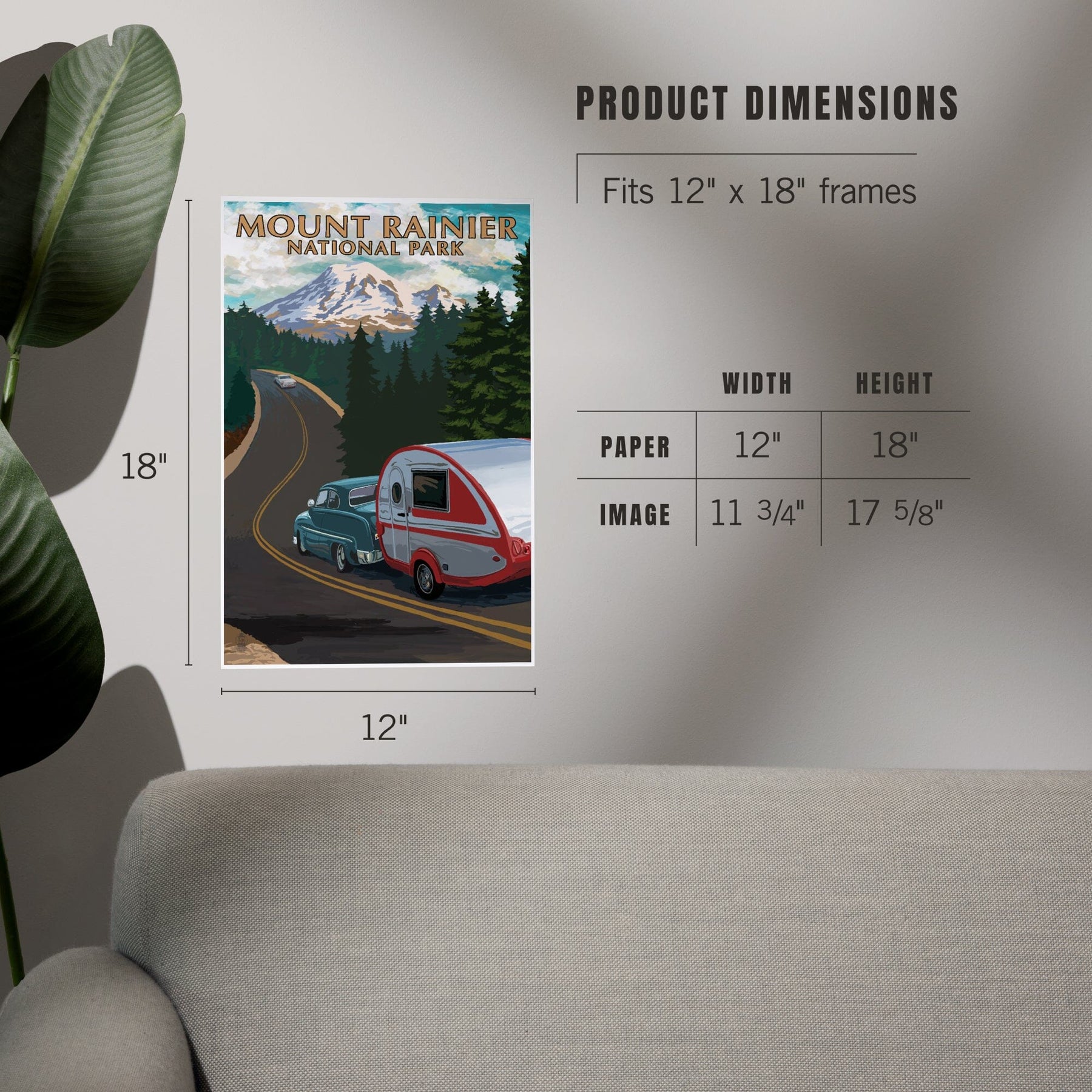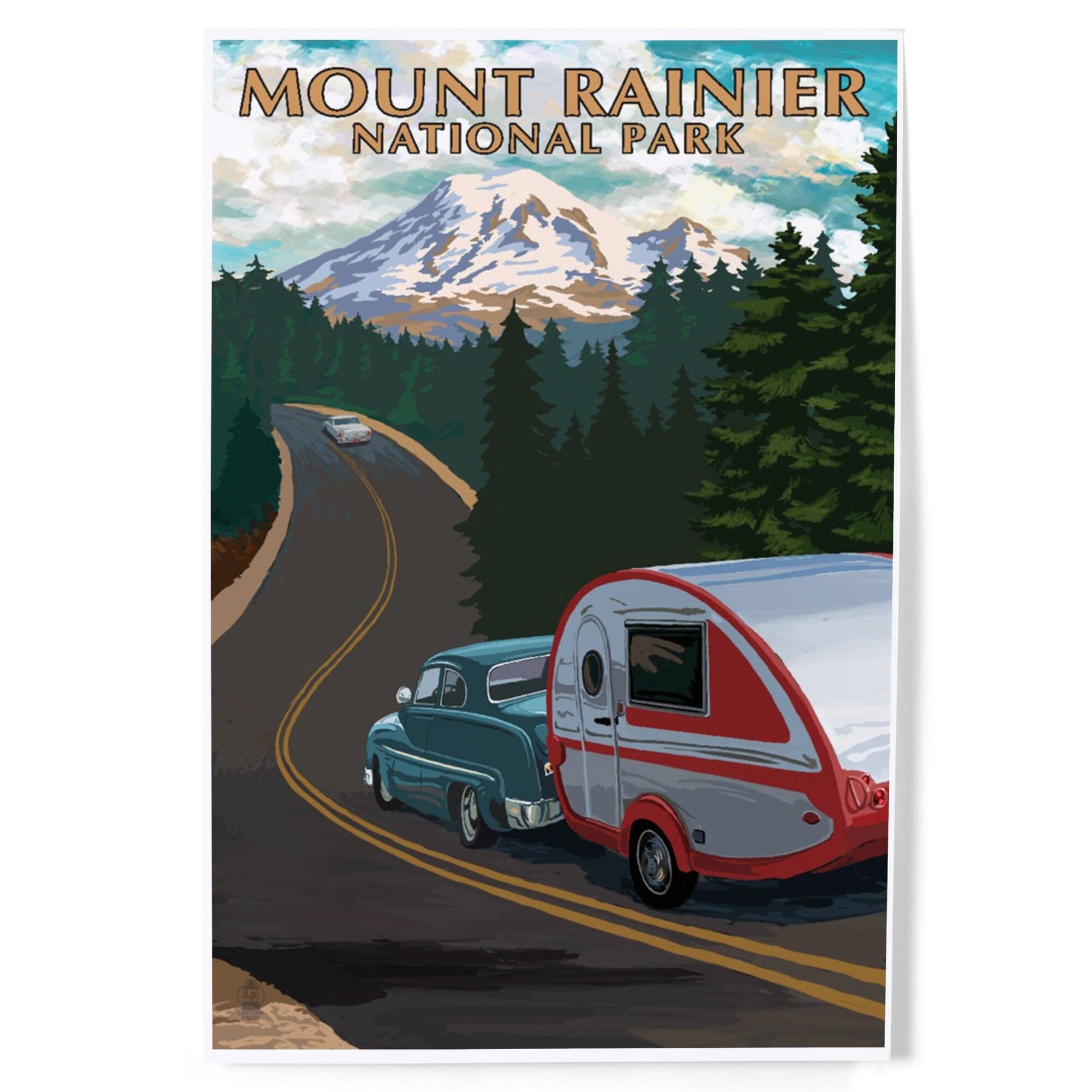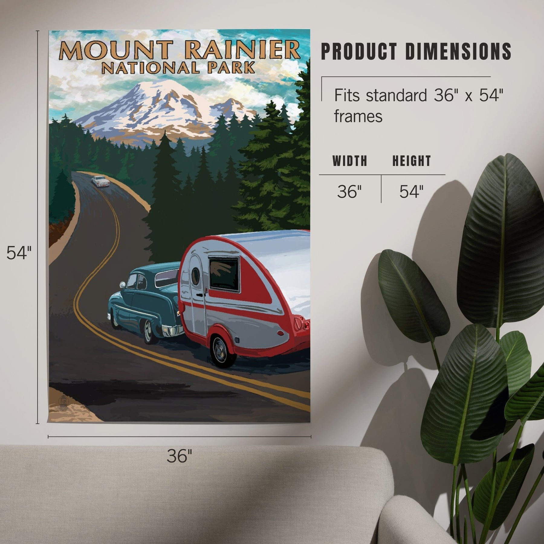 Mount Rainier National Park, Washington, Retro Camper on Road, Art & Giclee Prints Art Lantern Press